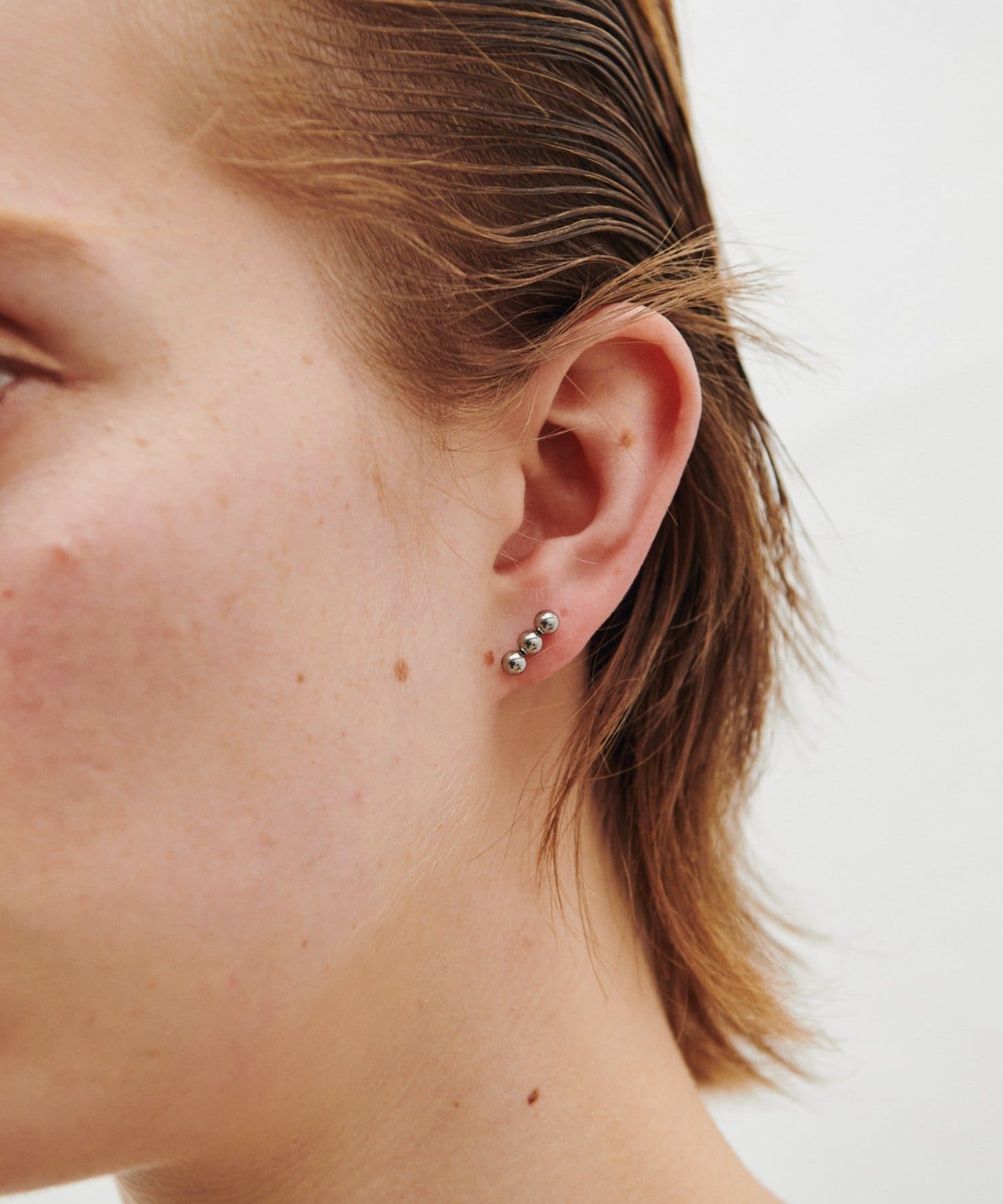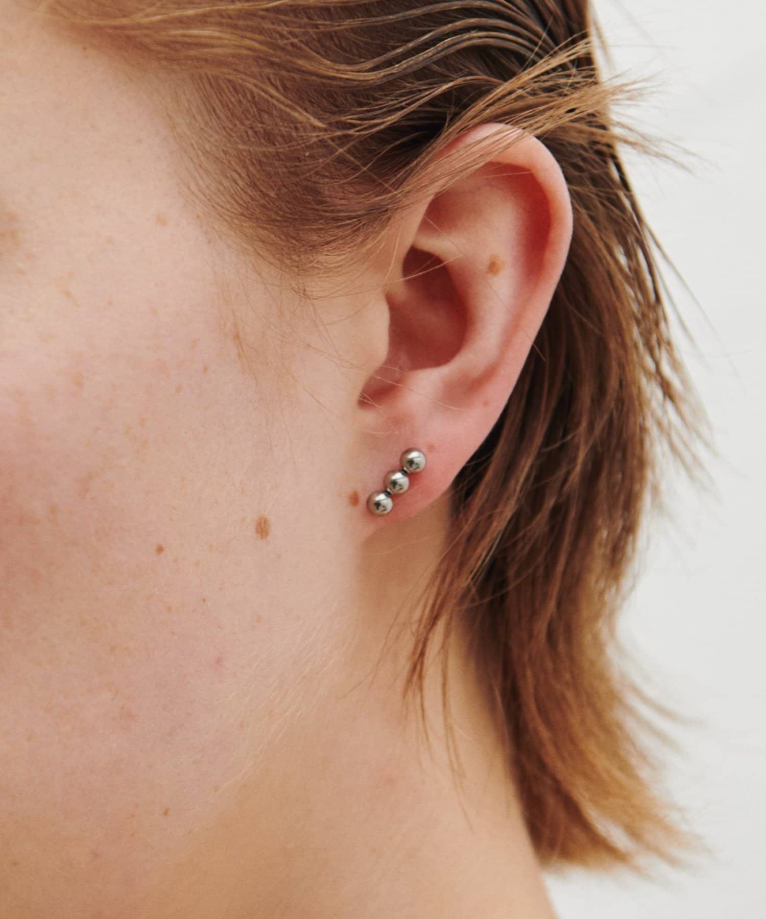 ・小ぶりな丸いモチーフが連なったドットのようなデザインのピアス。