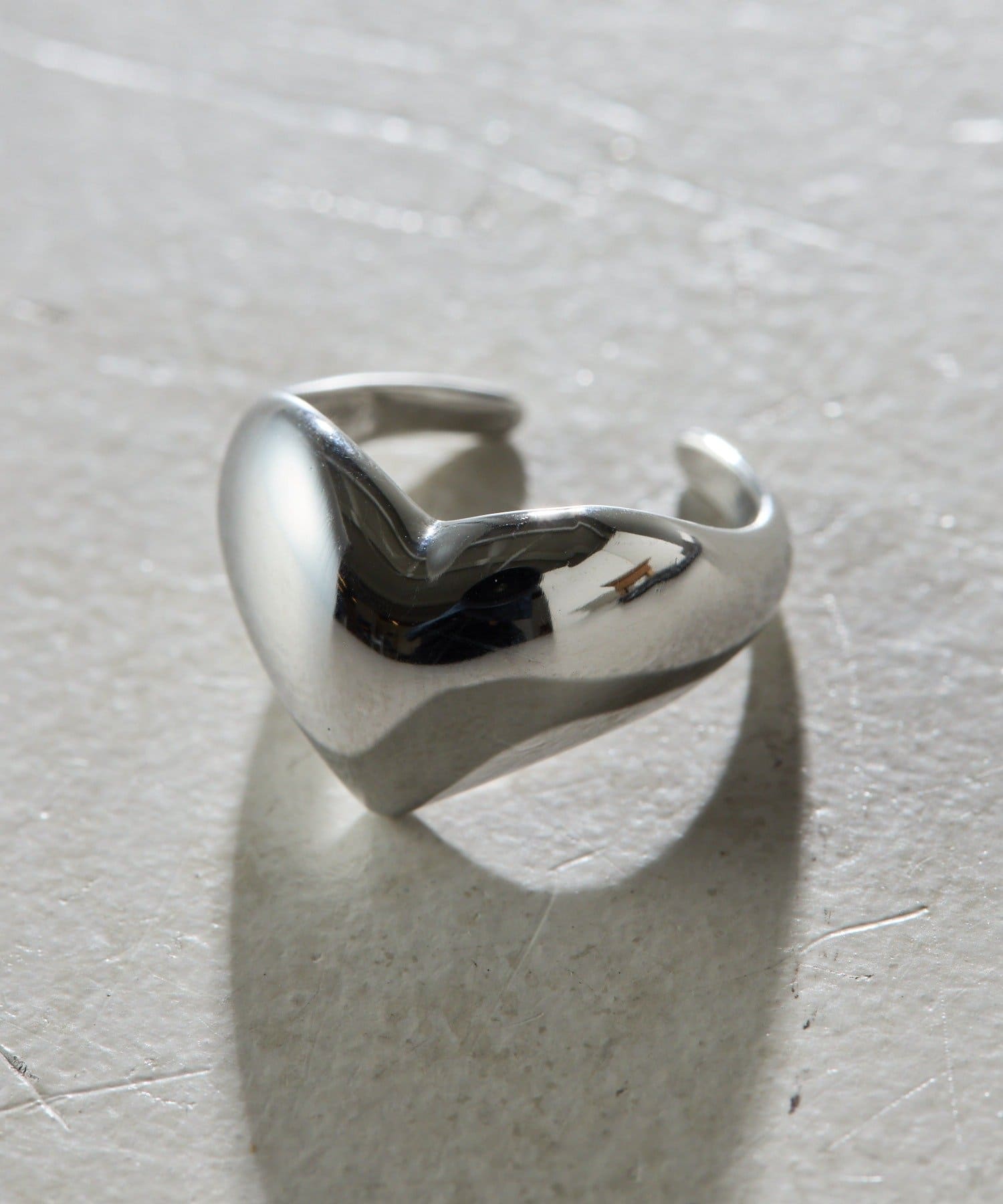 ・指に沿うように曲線を描くハートモチーフが特徴的なボリュームリング。