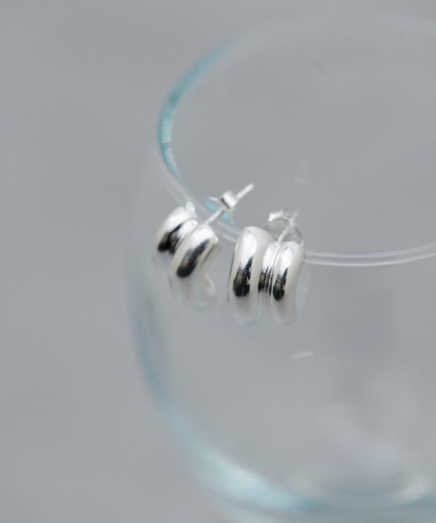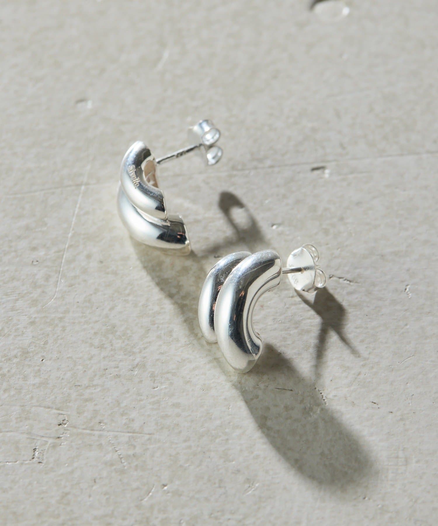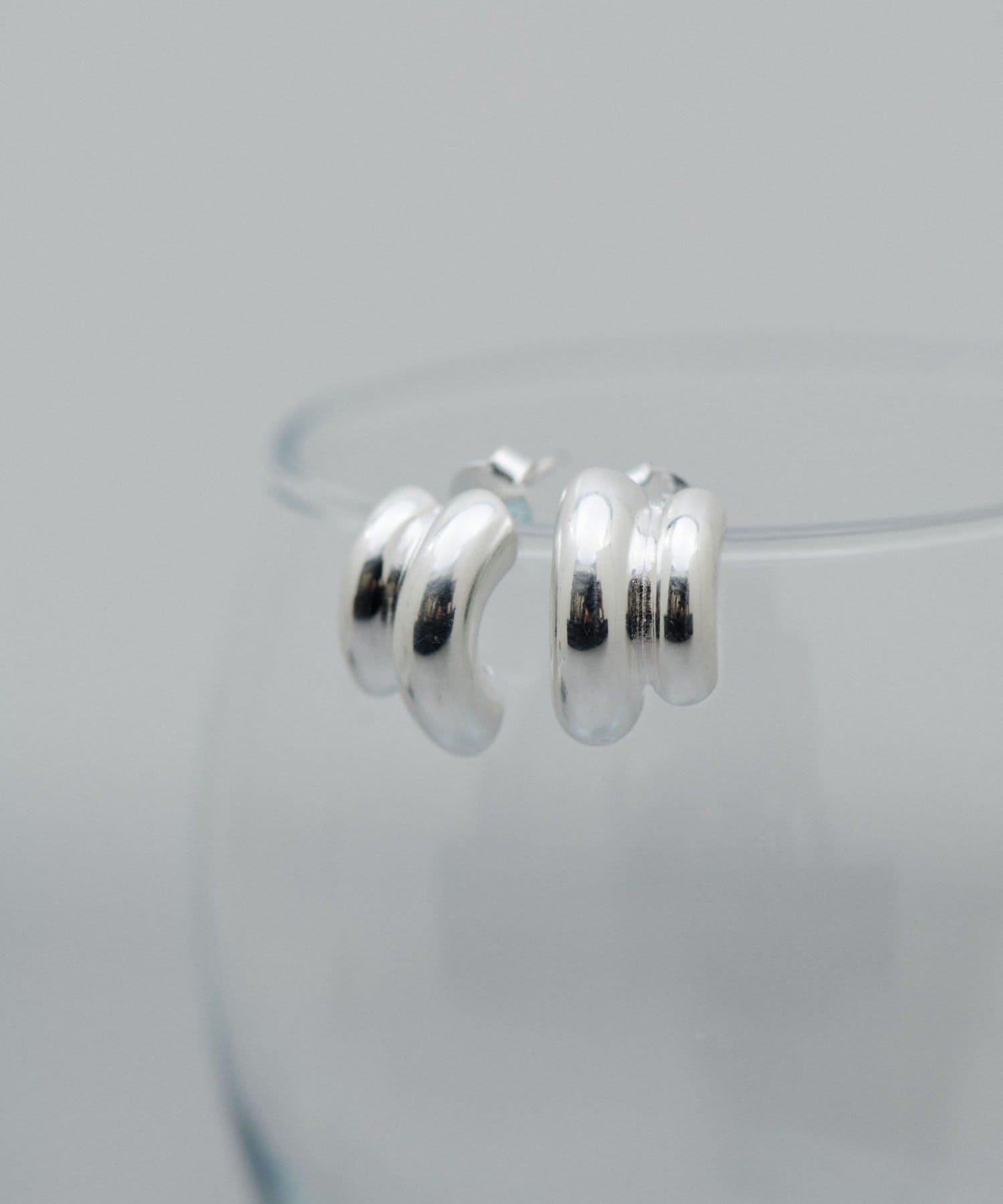 ・フープピアスを二つ重ね付けしているような見え感のボリュームピアス。