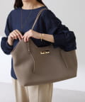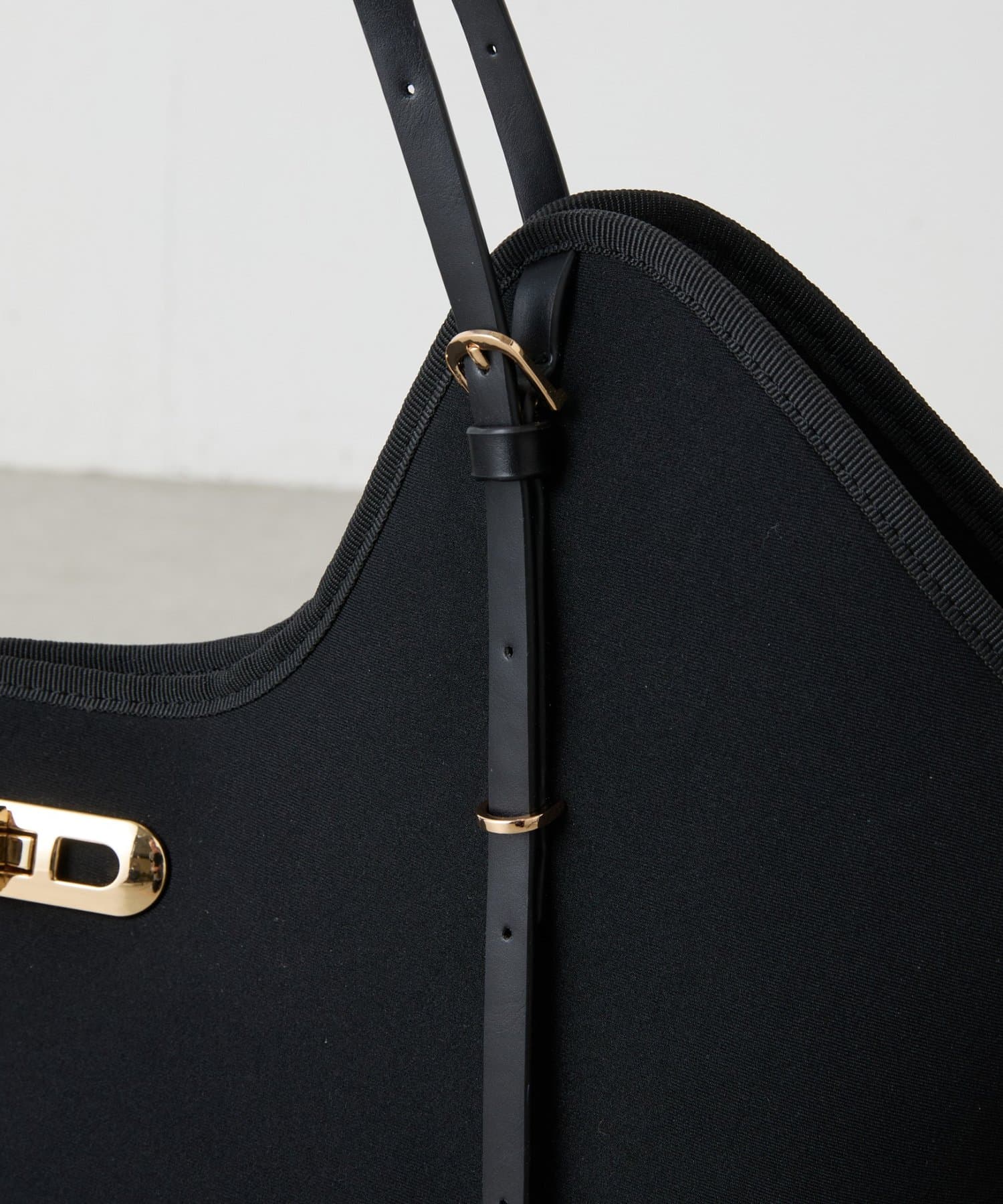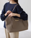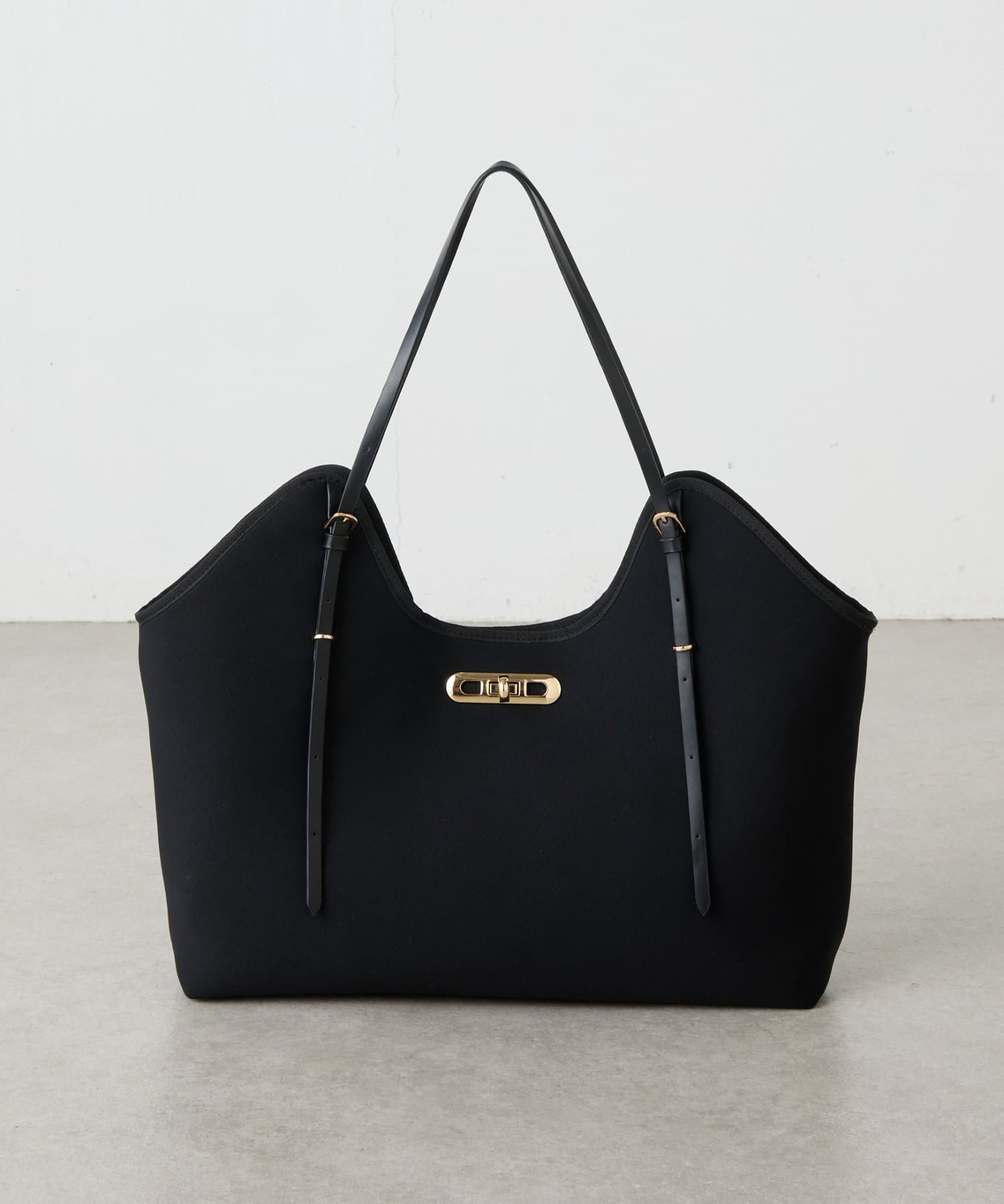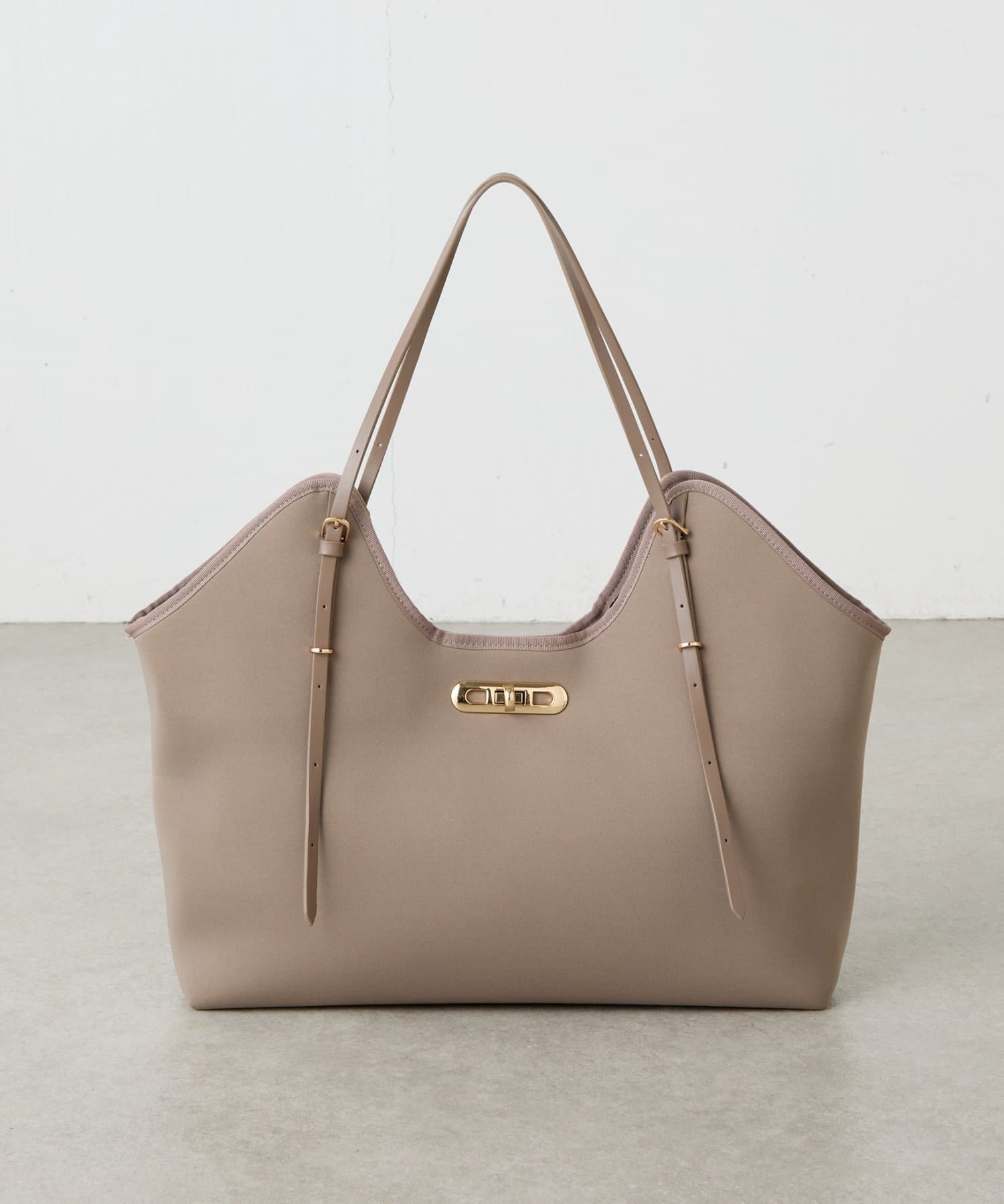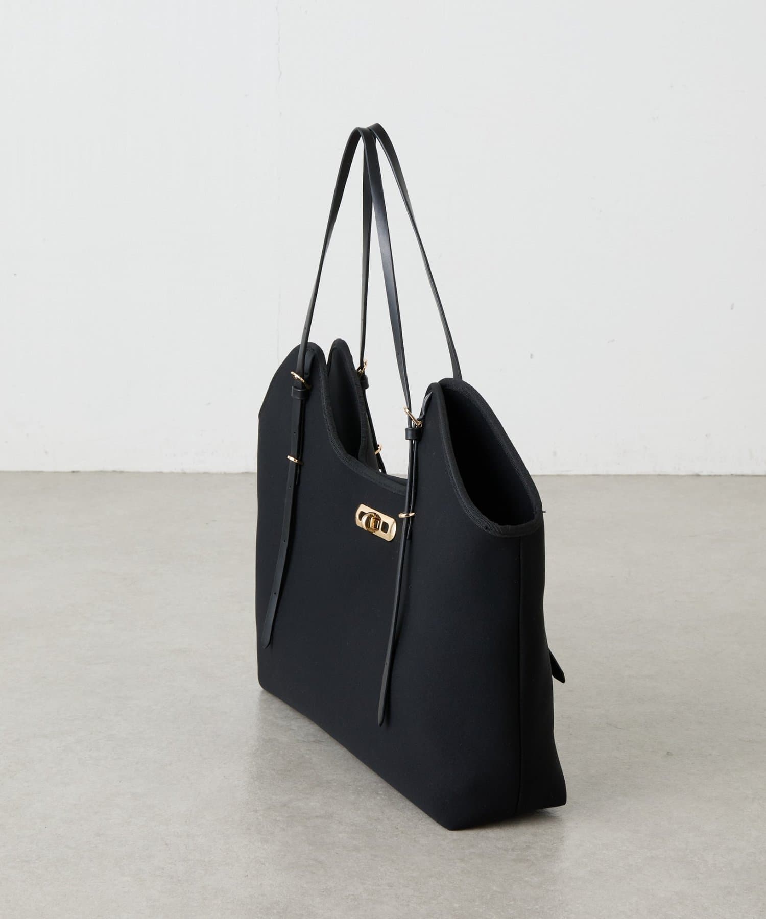 ・ウェット素材のトートバッグにパイピングを施したきれい見えバッグ。