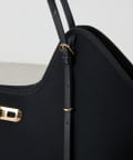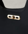 ・レザーライクな持ち手とベルト留めが上品さをプラス。
