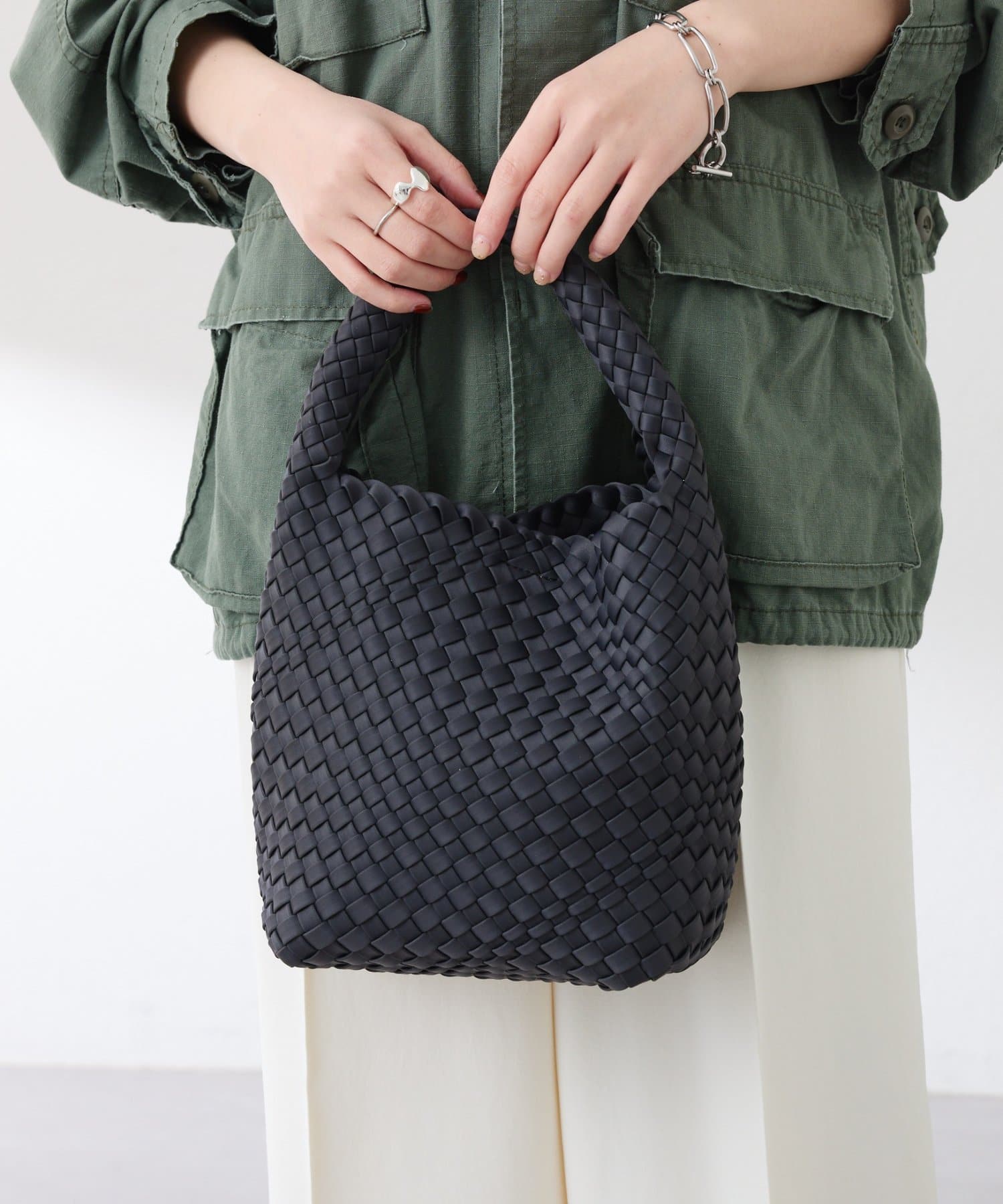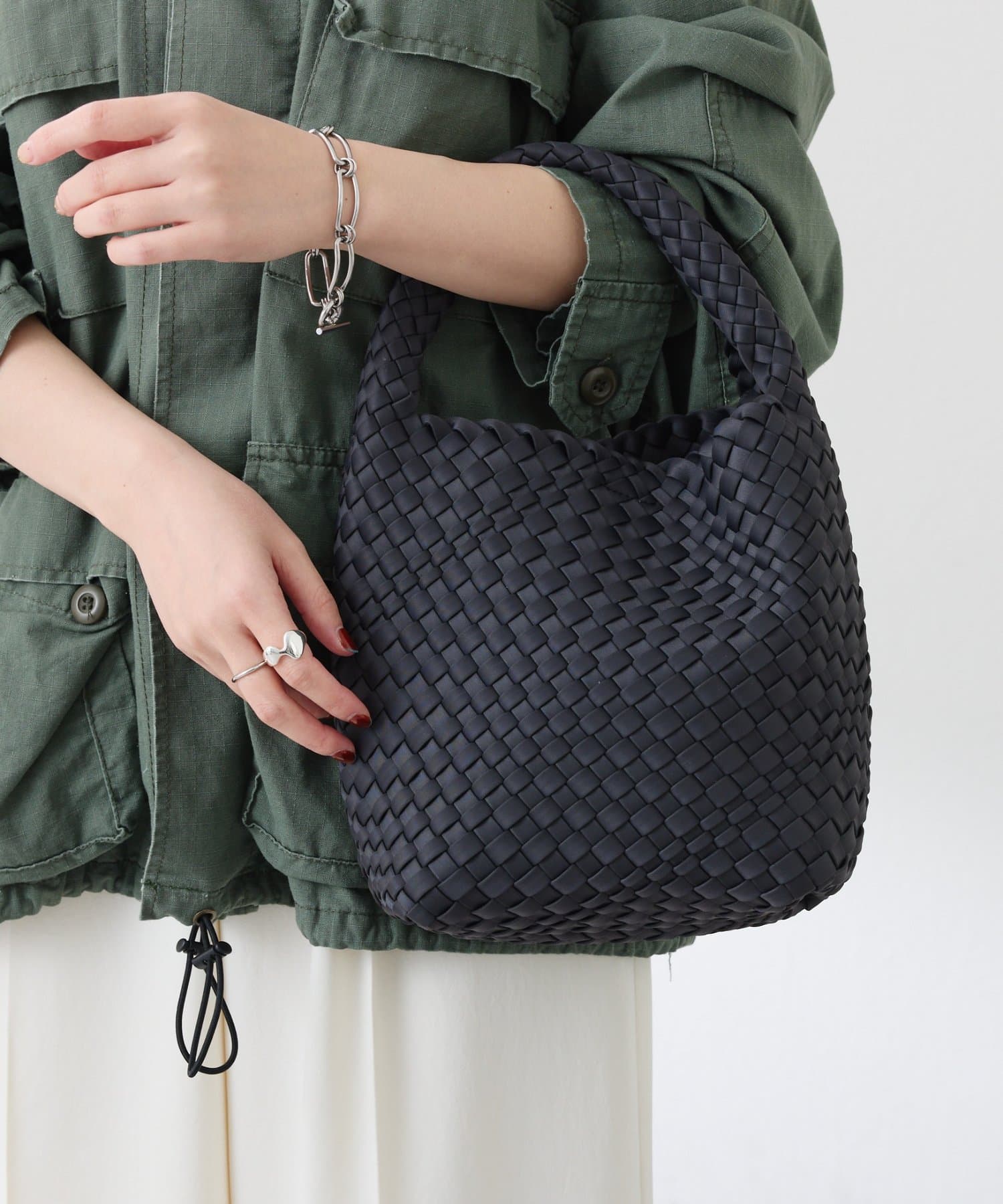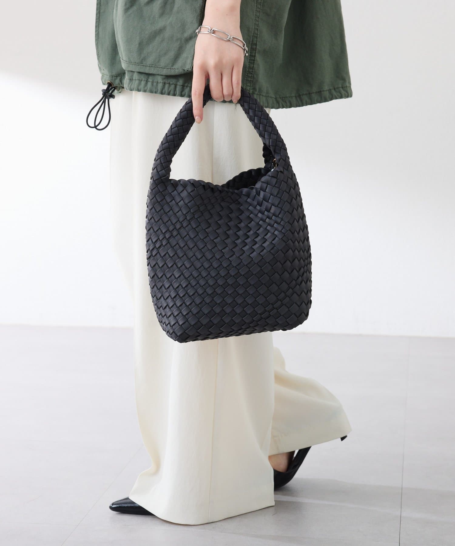 ・柔らかく軽い質感の素材を編み込んだ、高見えするバッグです。
