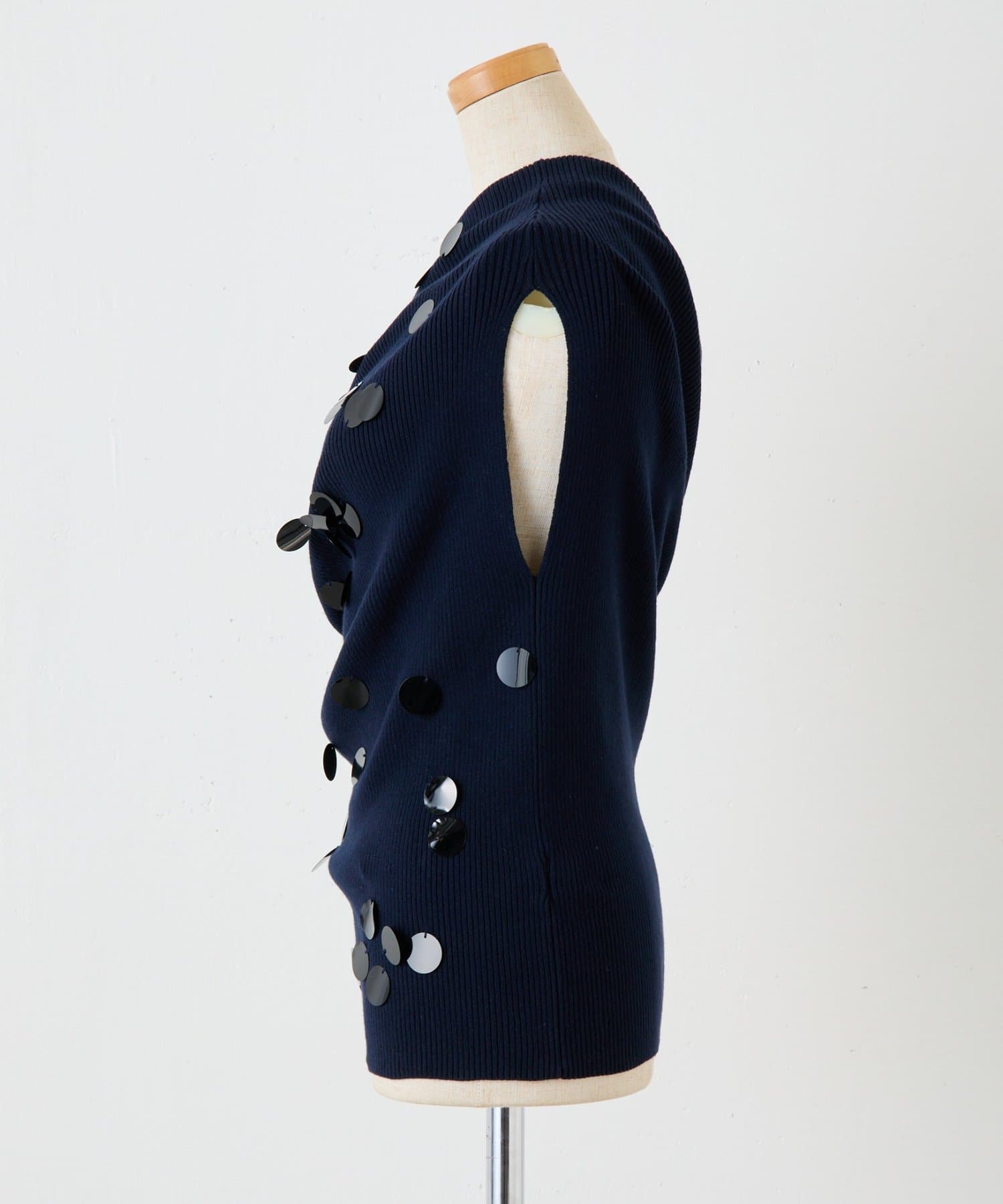 ・今季のトレンドのドットを、大きめのスパンコールとしてランダムにつけています。