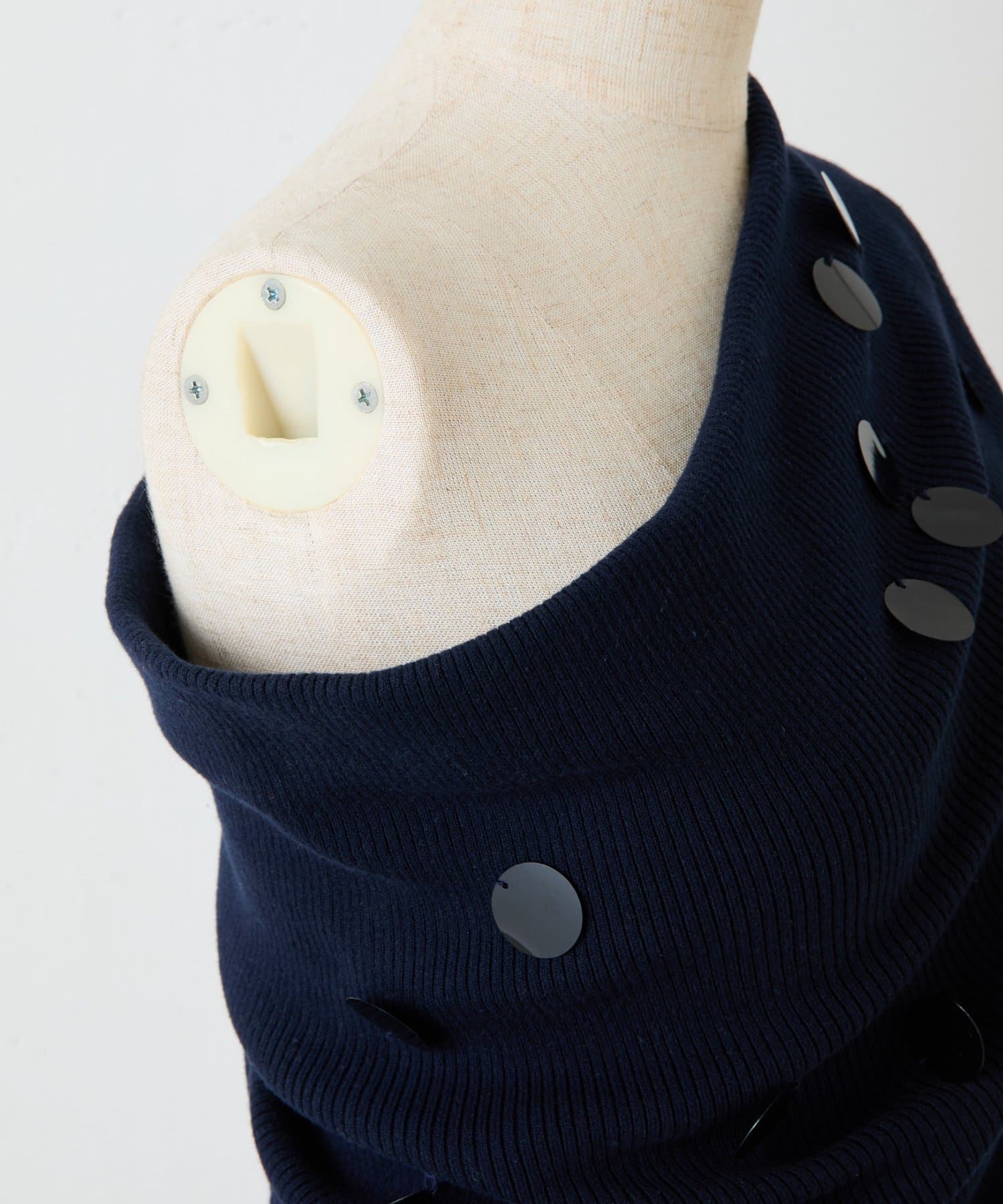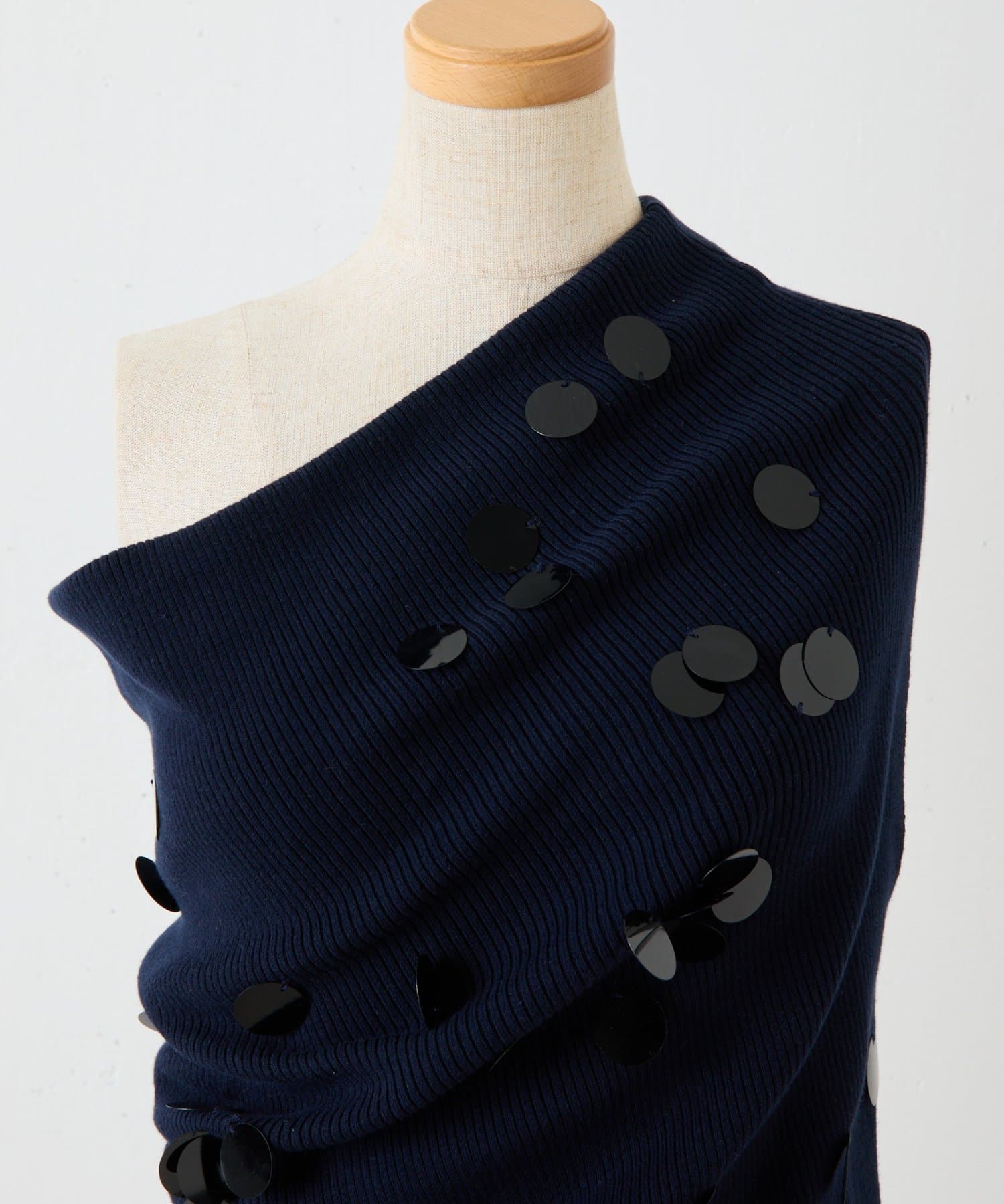 ・【スパンコールカーディガン CLZ5061305A0001】と同じ糸のワンショルニットベストです。