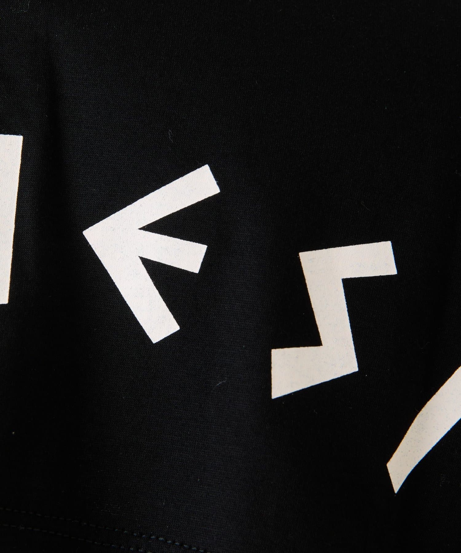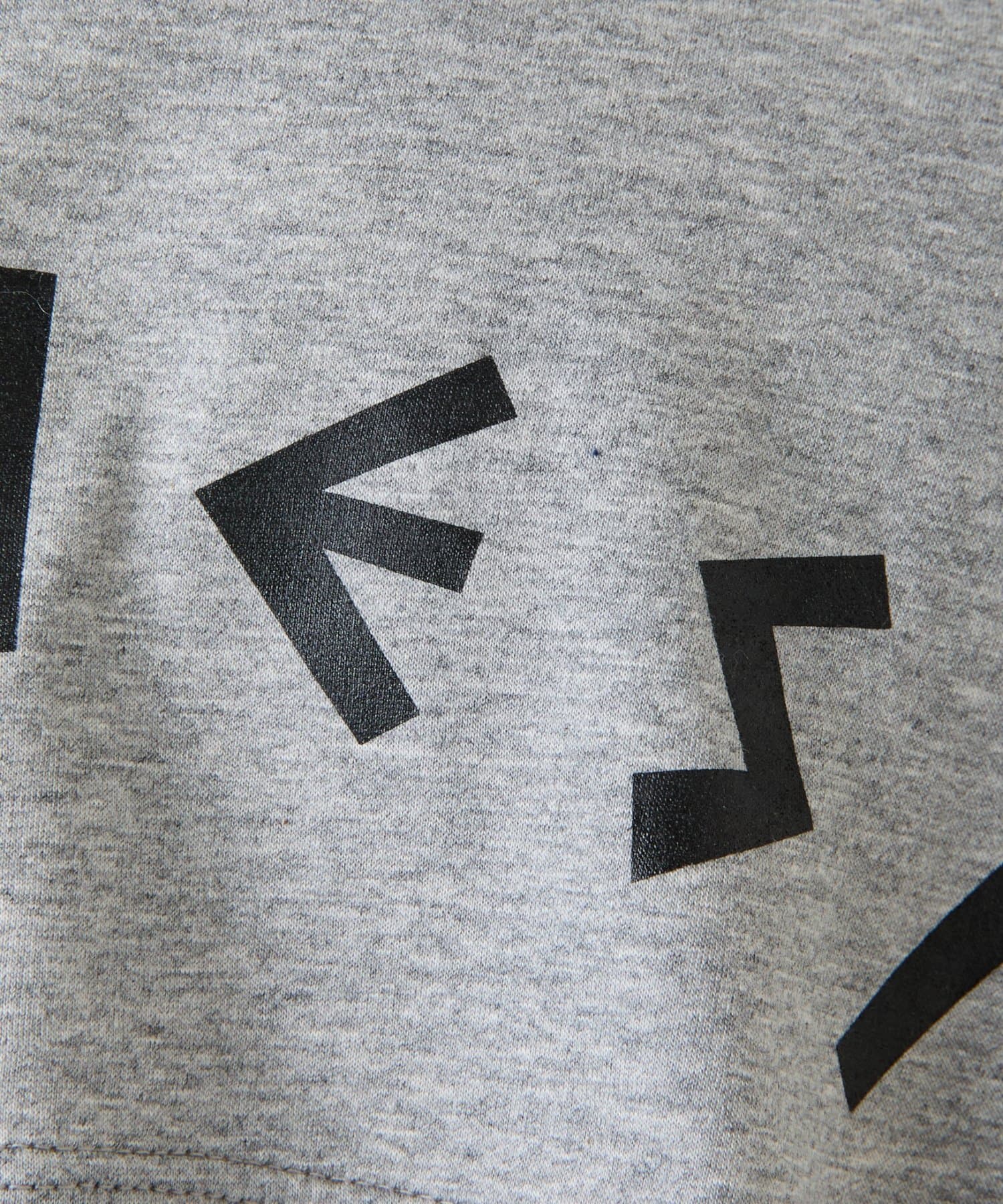 ・袖丈と着丈のバランスをポンチョっぽい雰囲気に仕上げました。バックプリントはフットボールTのようなロゴデザインですが、フォントをカジュアルにならないようにデザイン。