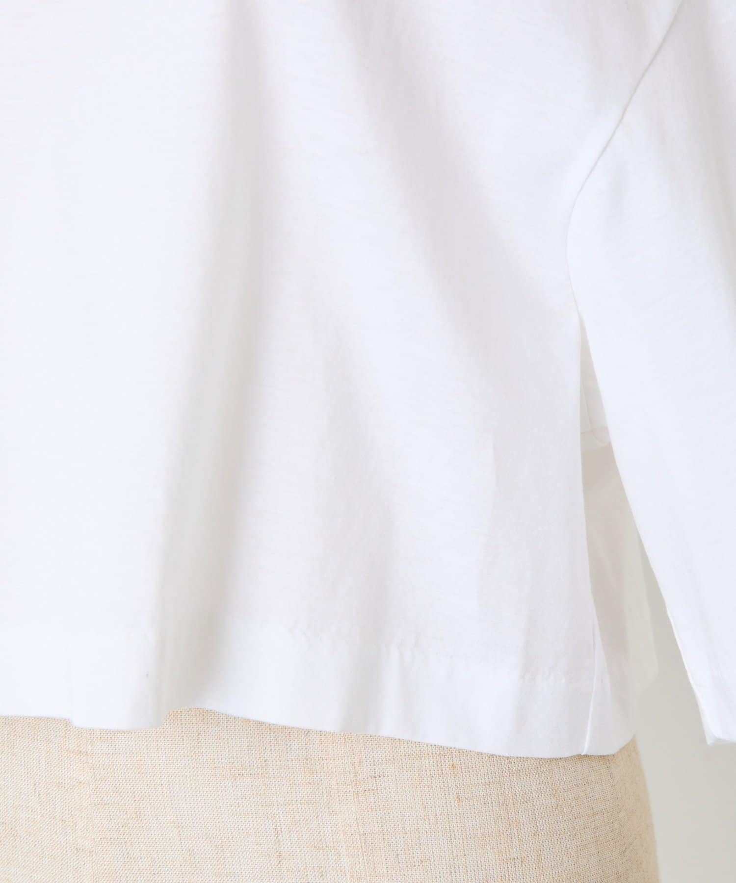 ・シルクのような光沢感のある、高級綿である超長綿のコンパクトヤーンを使用。毛羽の少ない70/2の天竺カットソーです。