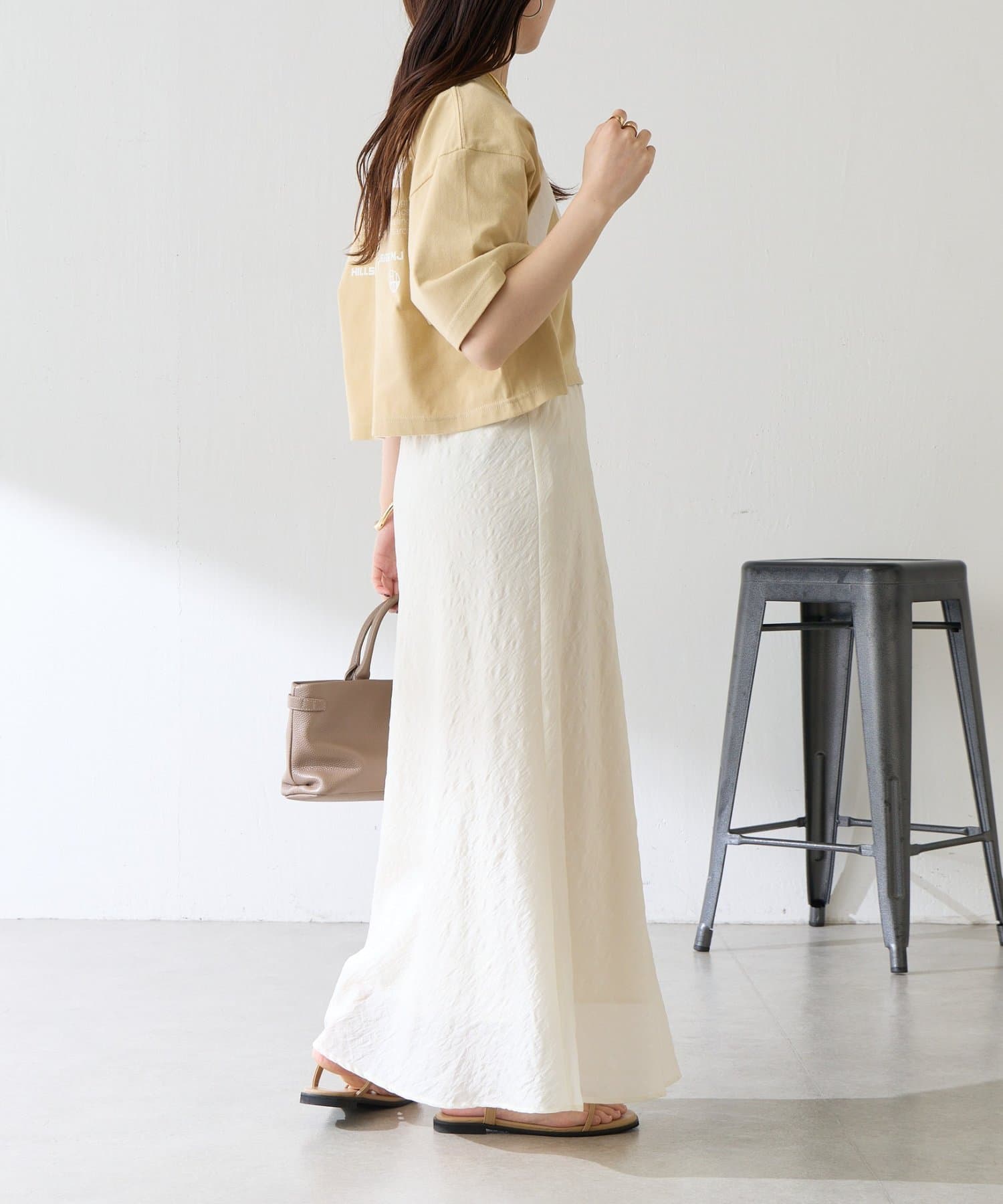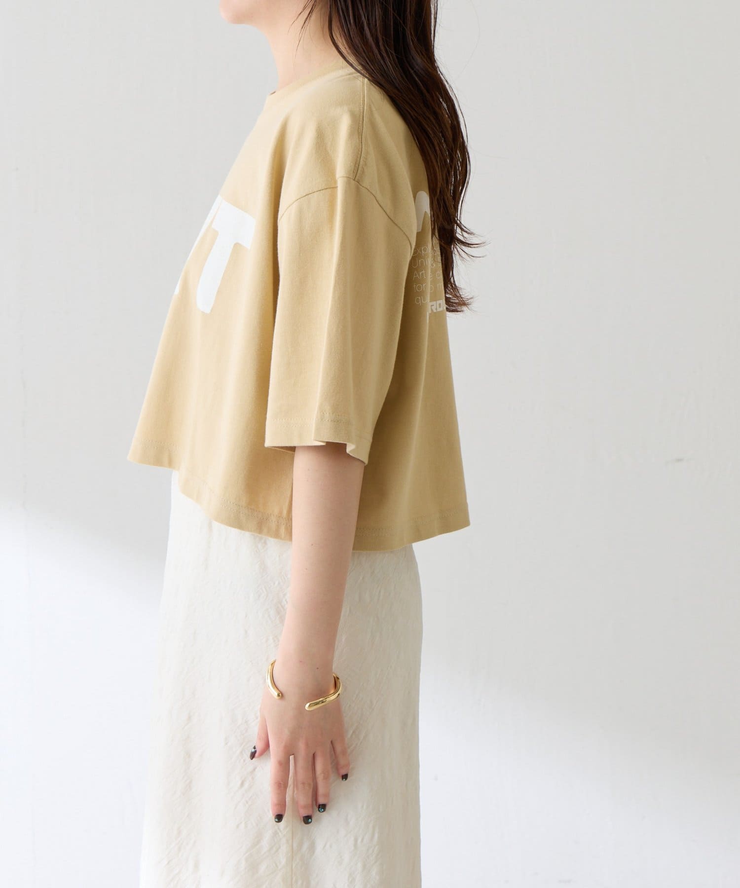 ・コンパクトな着丈なのでワイドパンツやフレアスカートともバランス良く決まります。
