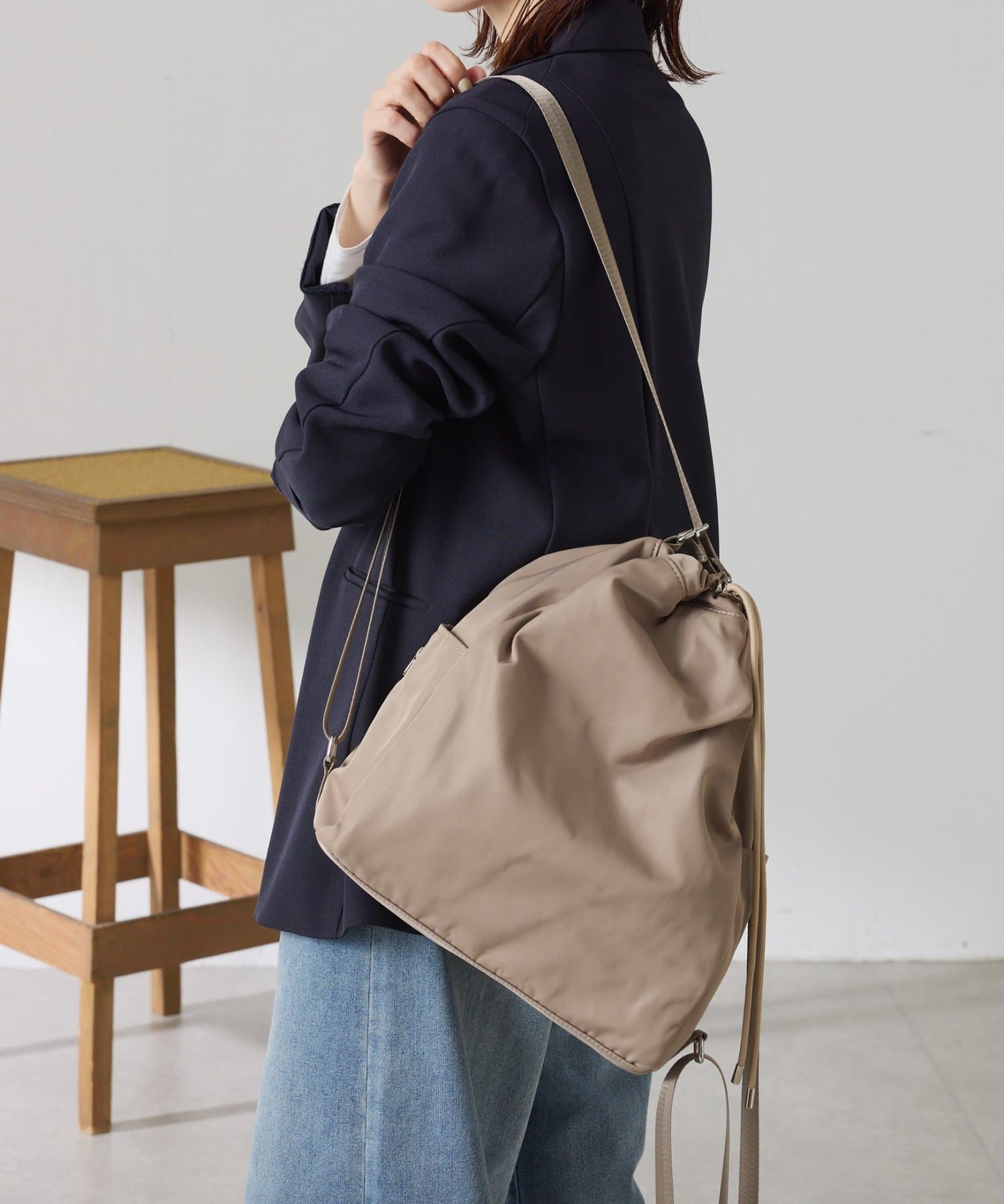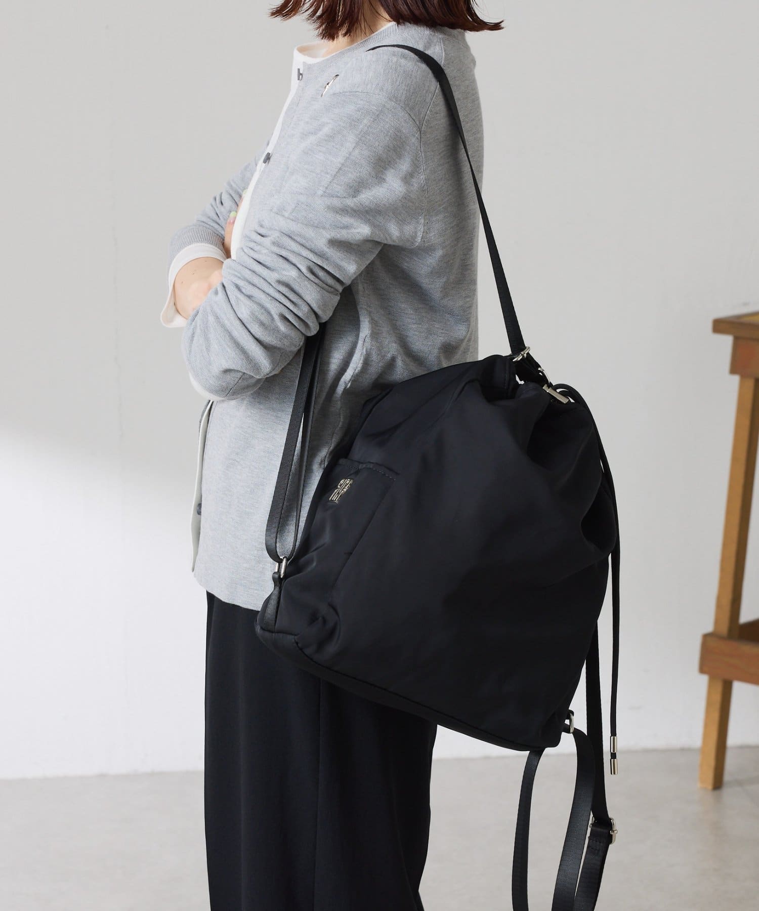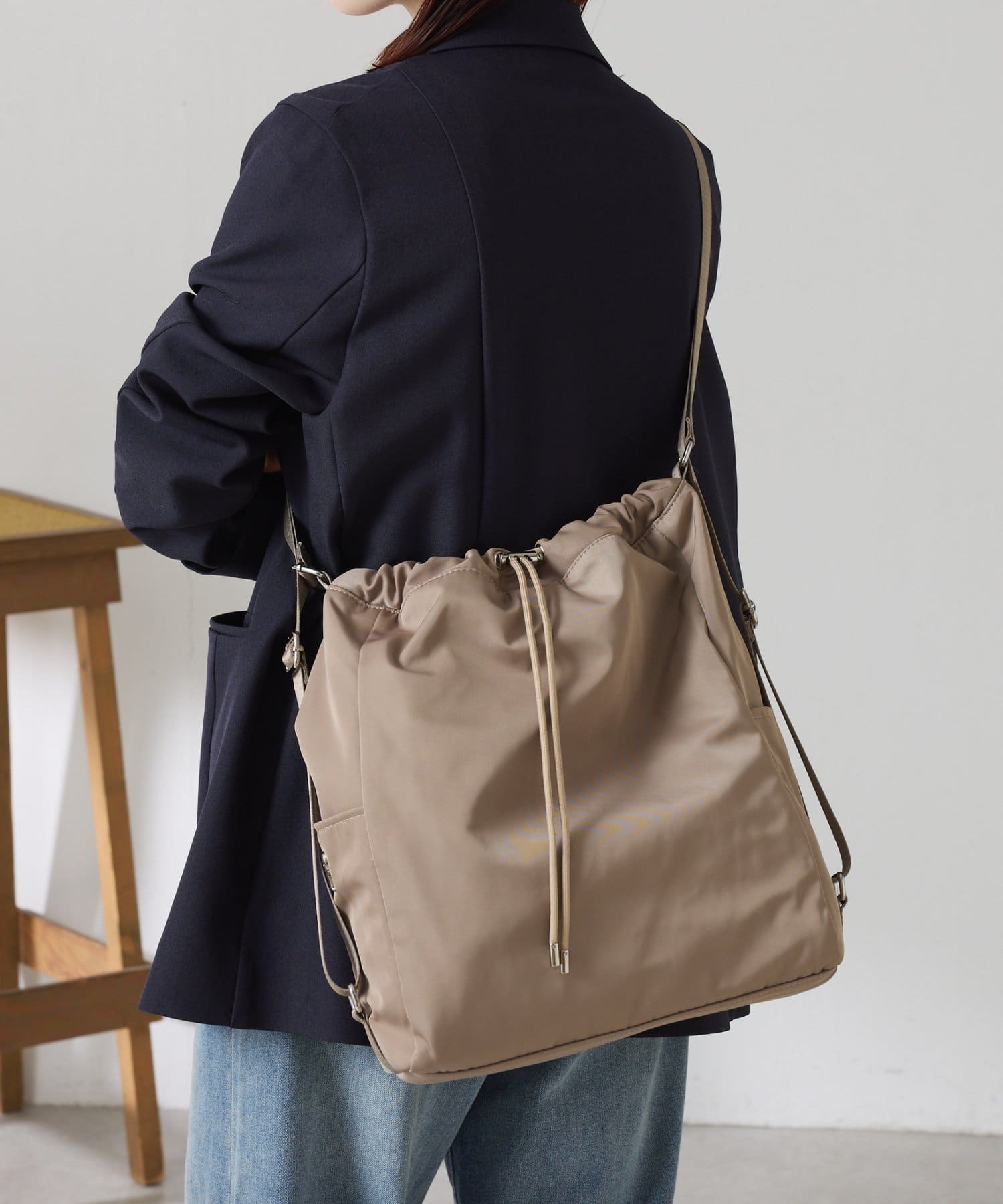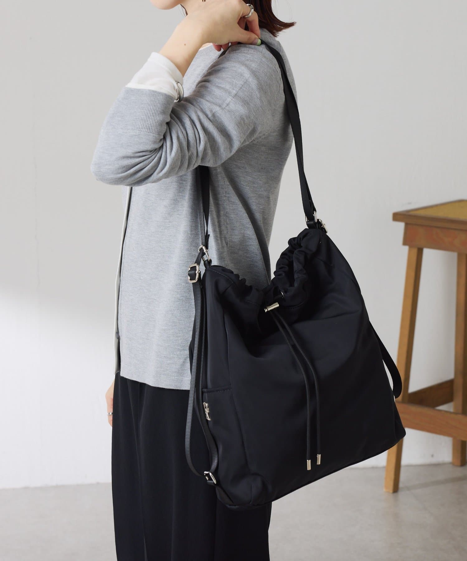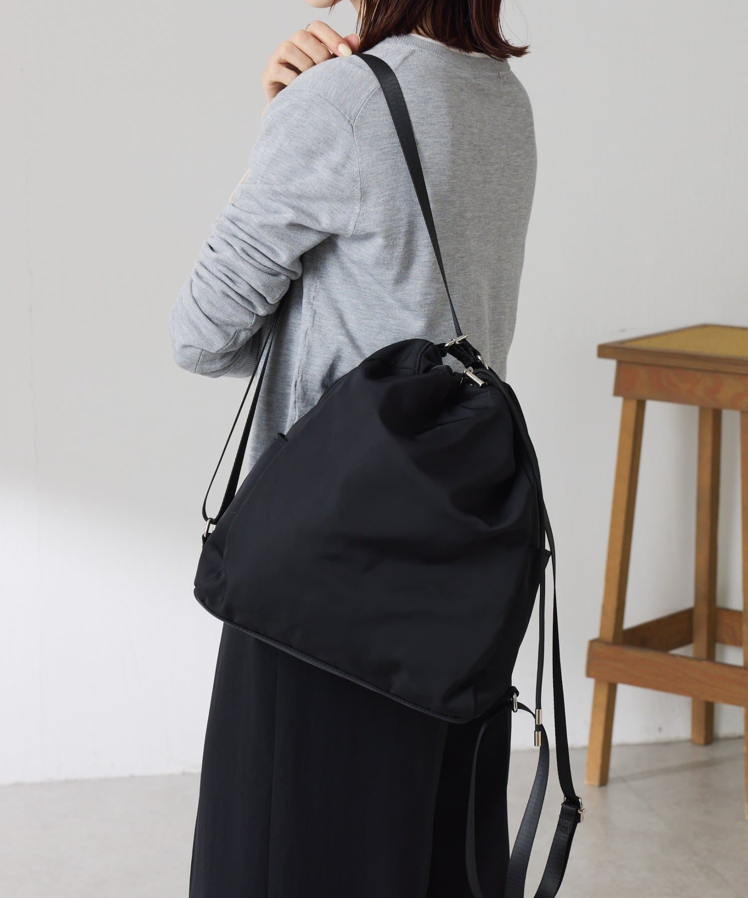 ・トートバッグから斜め掛け、更にナップサックにも変身可能な3WAYバッグ。