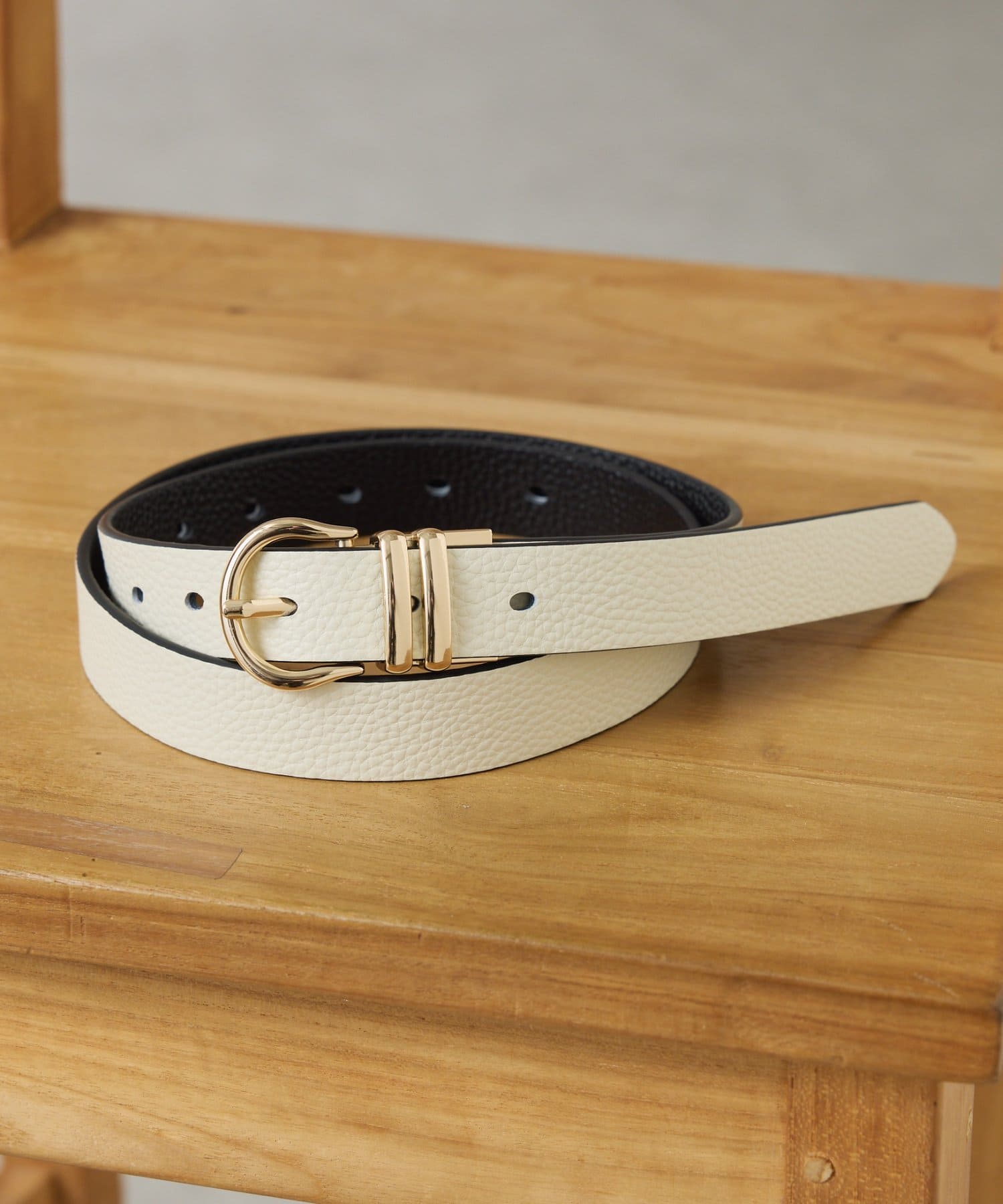 ・その日の気分やスタイリングに合わせて、バックルをひっくり返して色を変えられる2度おいしいアイテム。