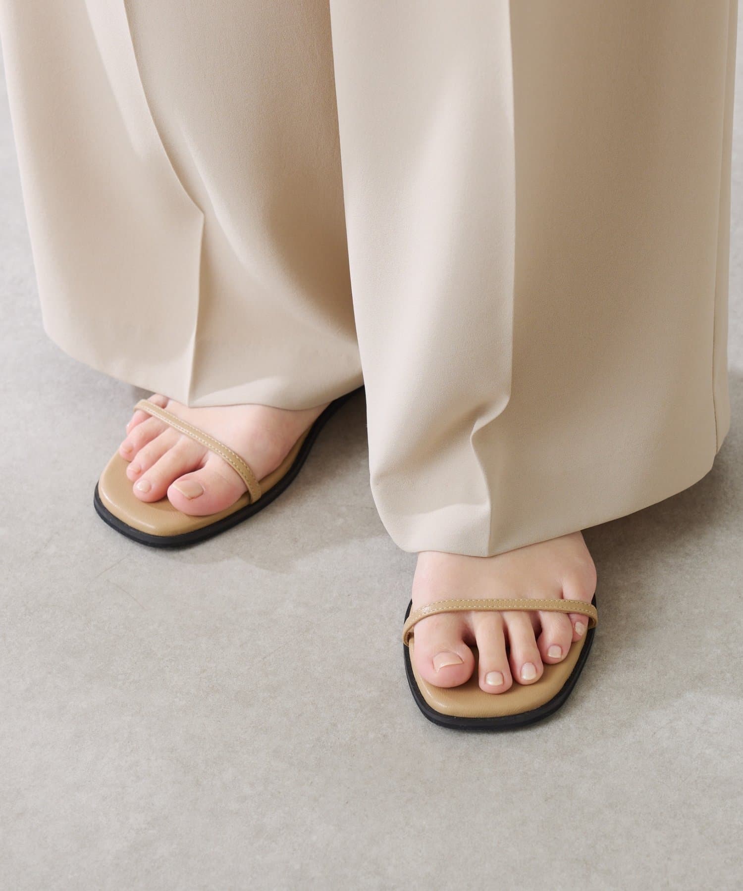 ・女性らしい華奢なストラップが足元をきれいに魅せてくれるフラットサンダル。