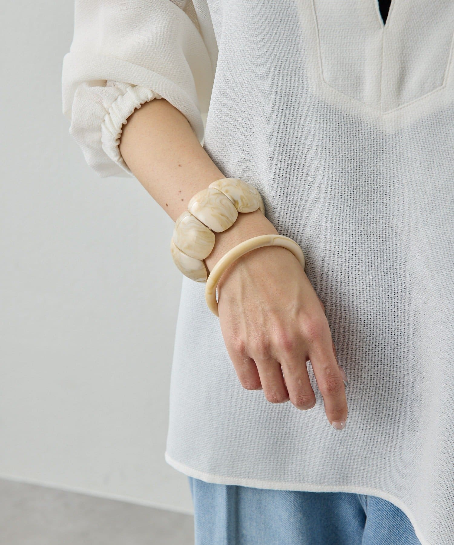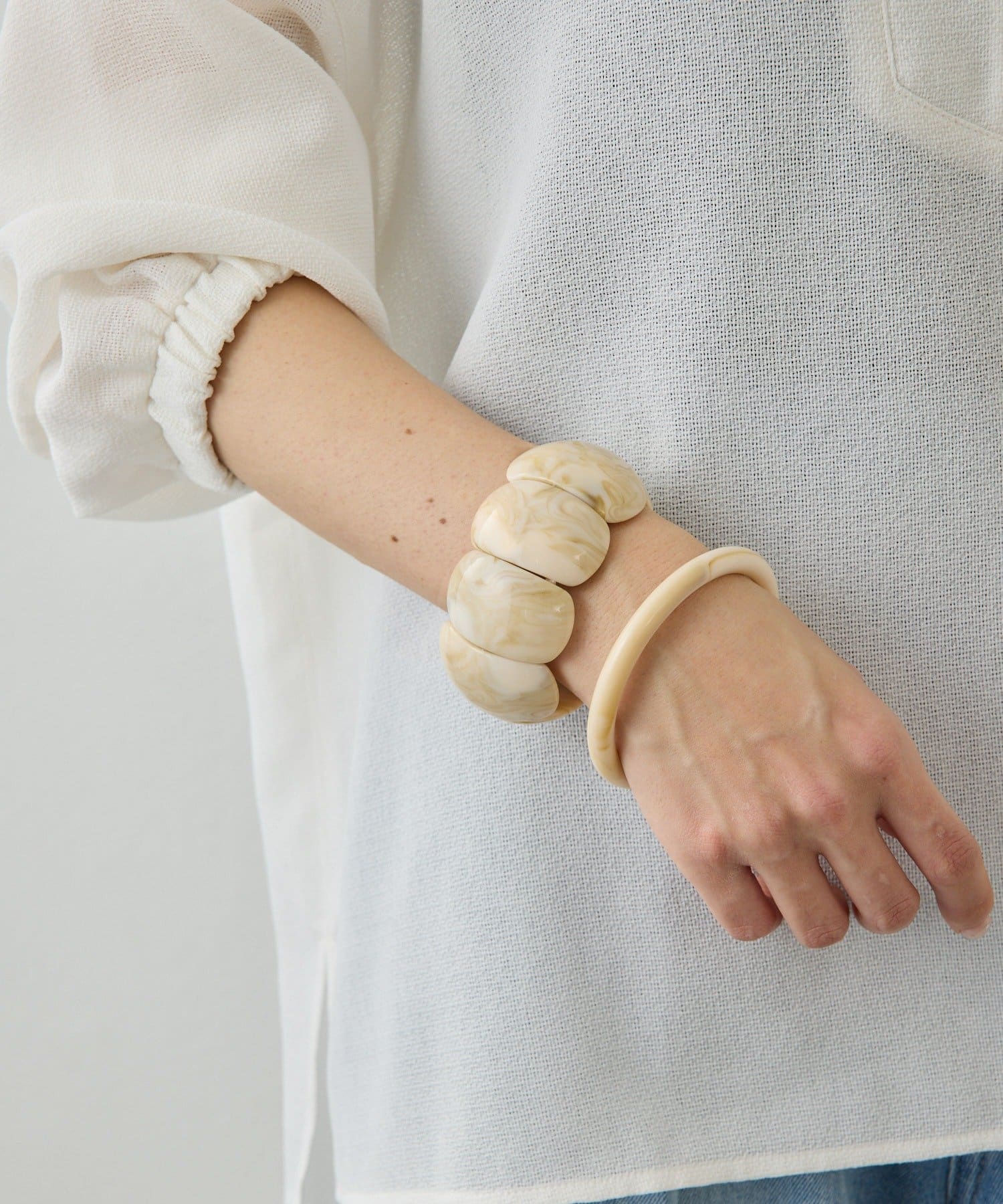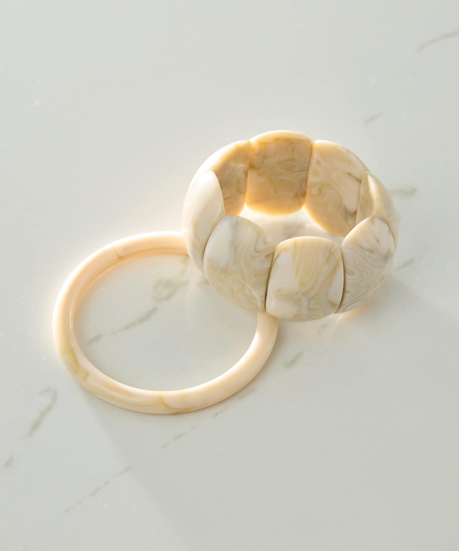 ・ビーズが連なったようなデザインとバングルのセットアイテム。