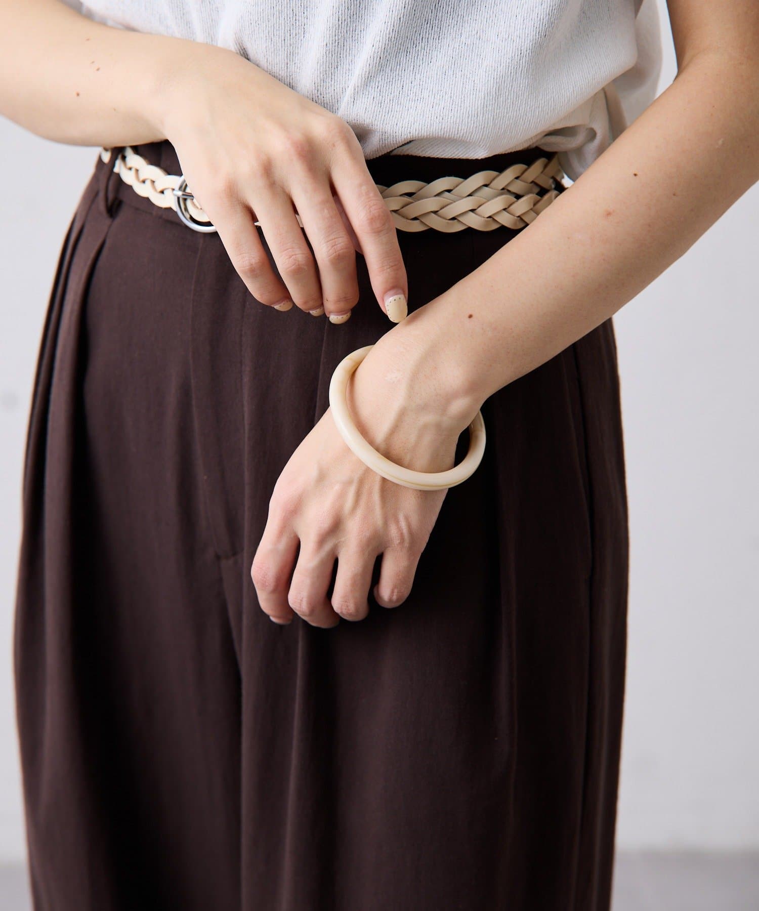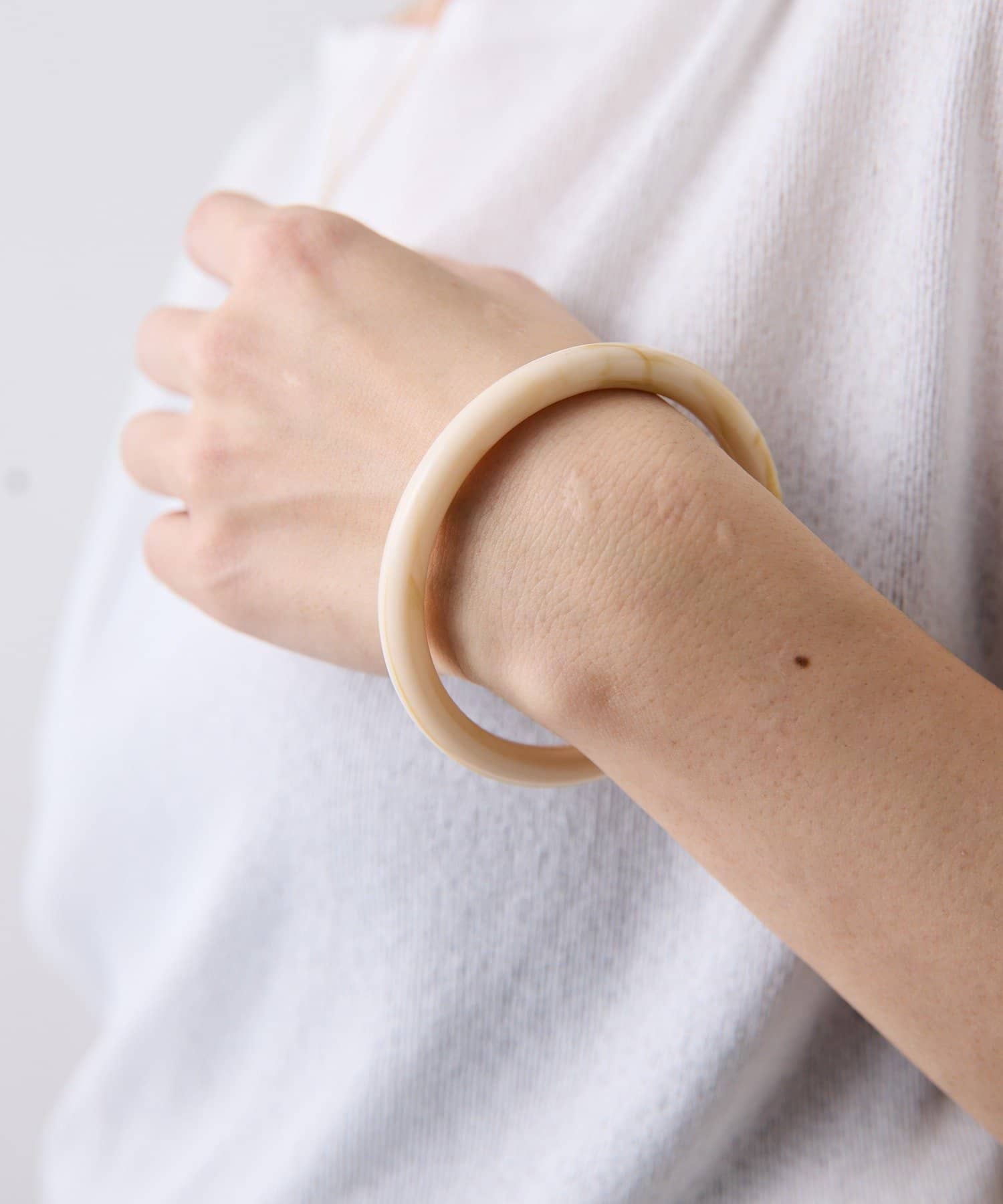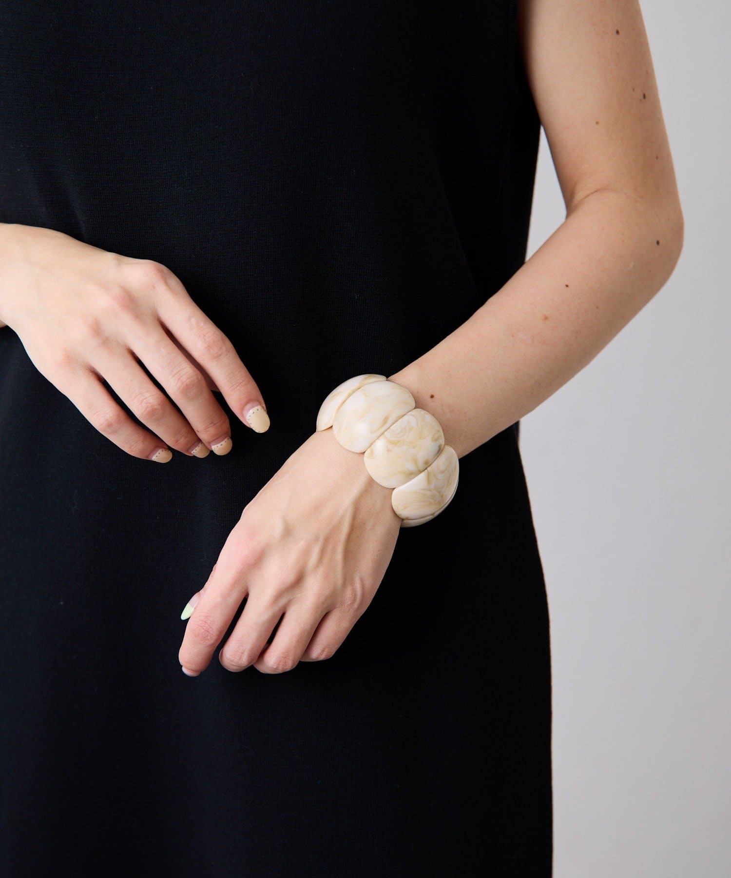 ・ビーズが連なったようなデザインとバングルのセットアイテム。