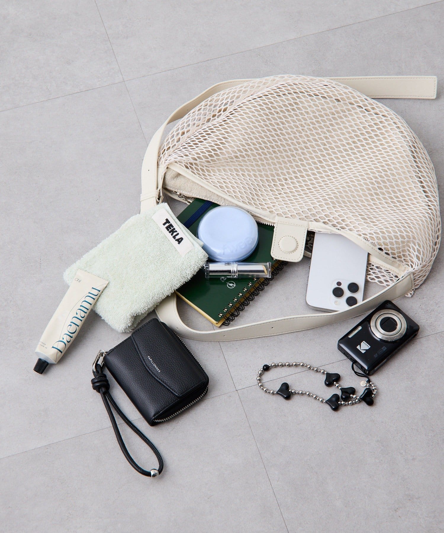 シーンによって持ち方を変えられるメッシュバッグ