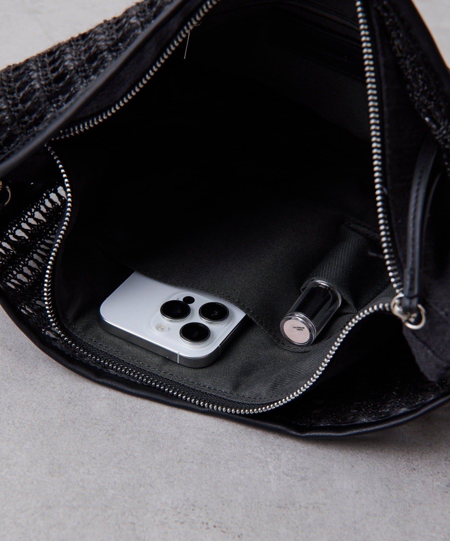 ・取り外しできるインバッグつき。インバッグには取り外しできるチェーンが付いています。