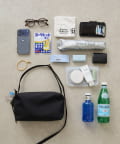 500mlペットボトル×2本、折り畳み傘、B6ノート、化粧ポーチ、お財布、パスケース