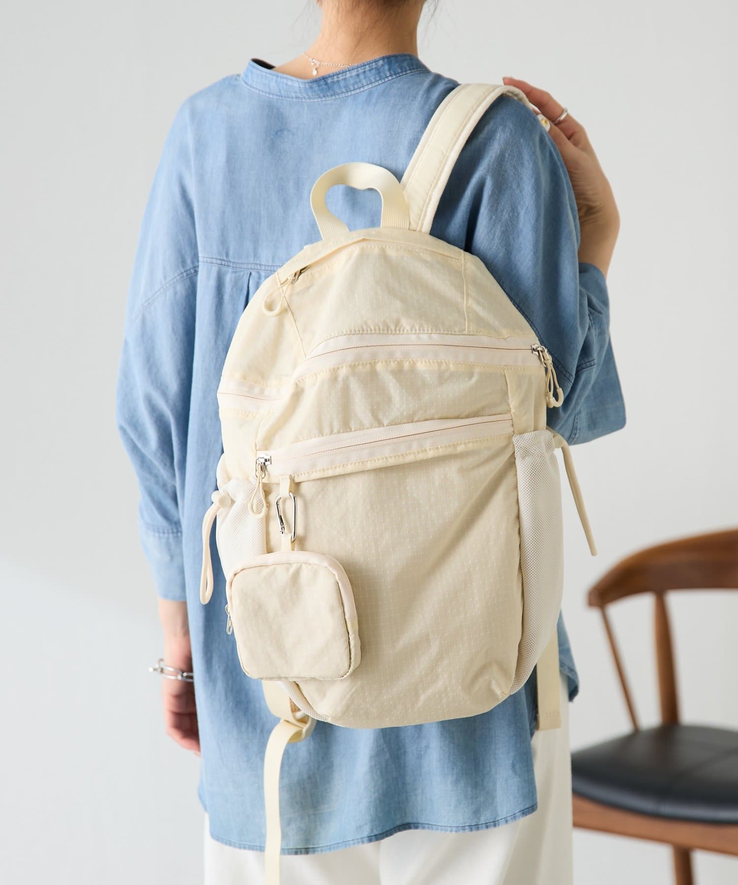 ・サイドのメッシュポケットは、飲み物や折り畳み傘など、すぐ取り出したいものを収納するのに便利です。