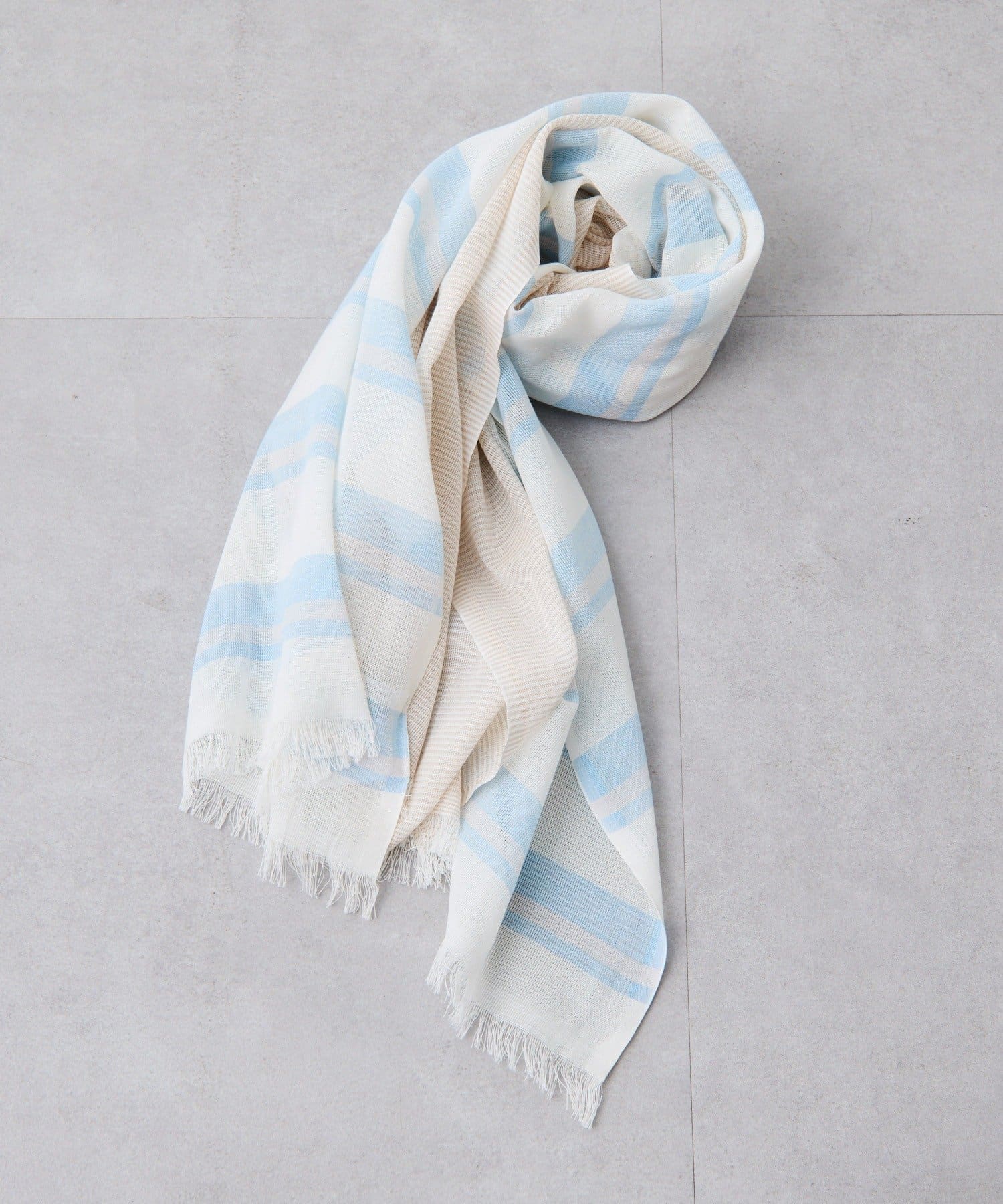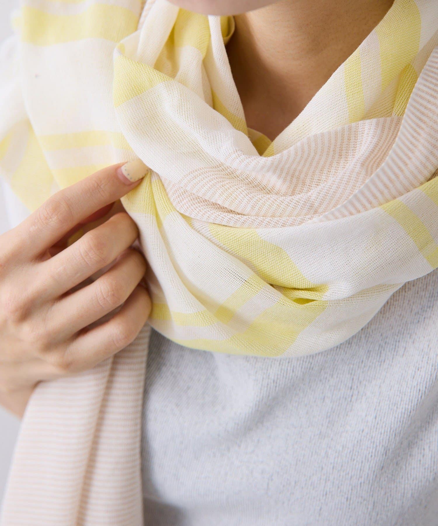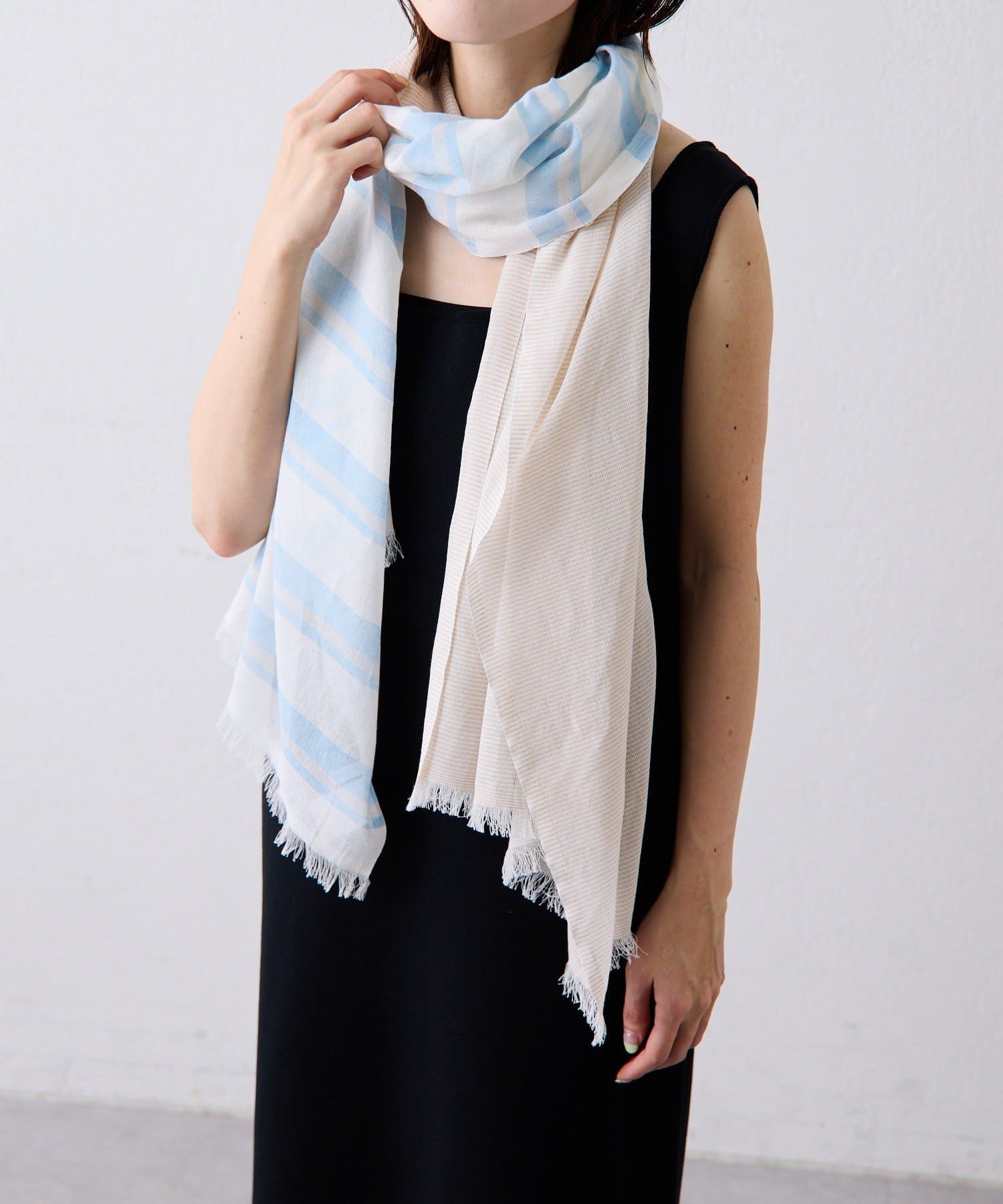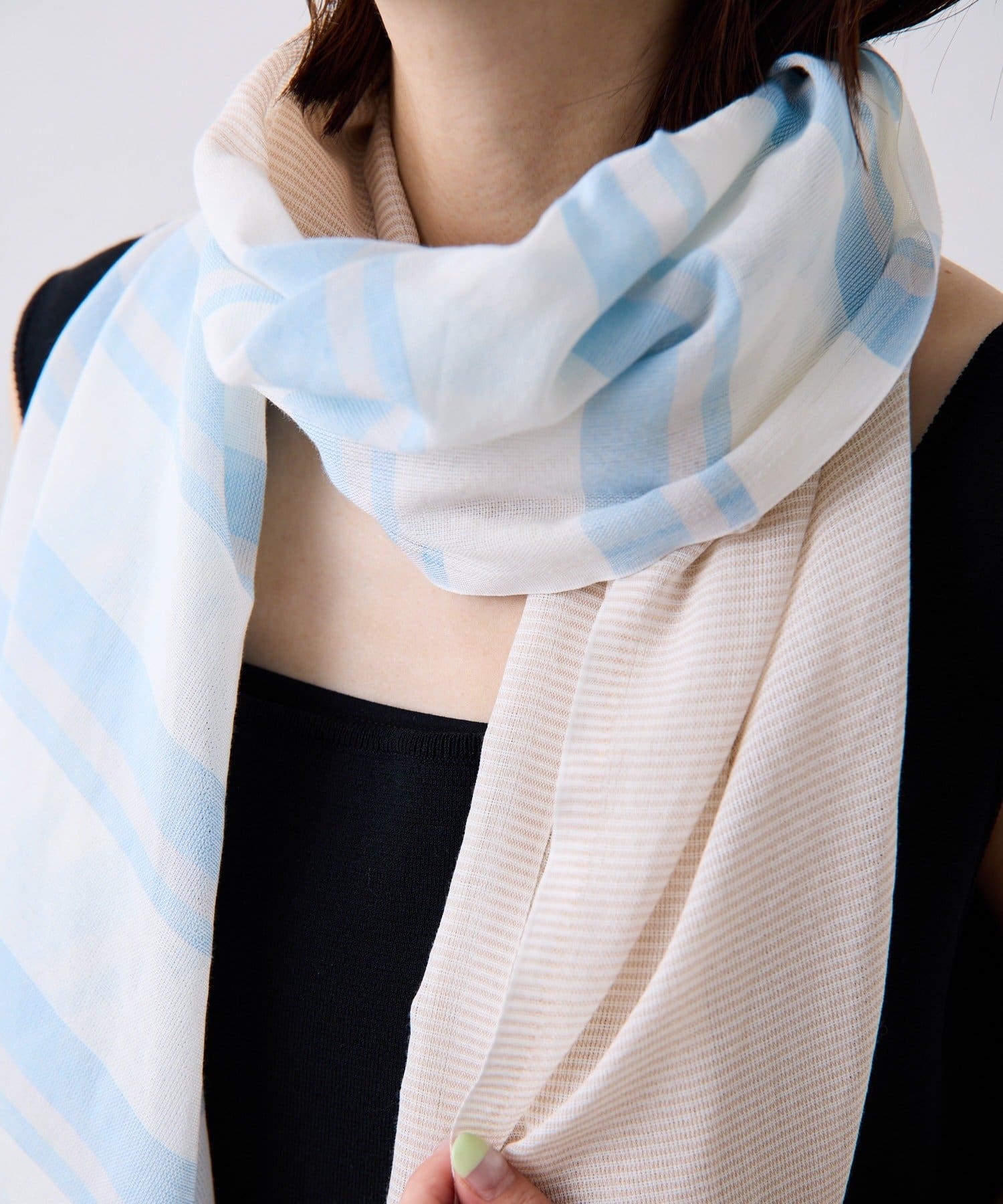 ・細いボーダーと太いボーダーが半分ずつ混ざっており、巻くと2つの面が重なり合って表情のある雰囲気に。