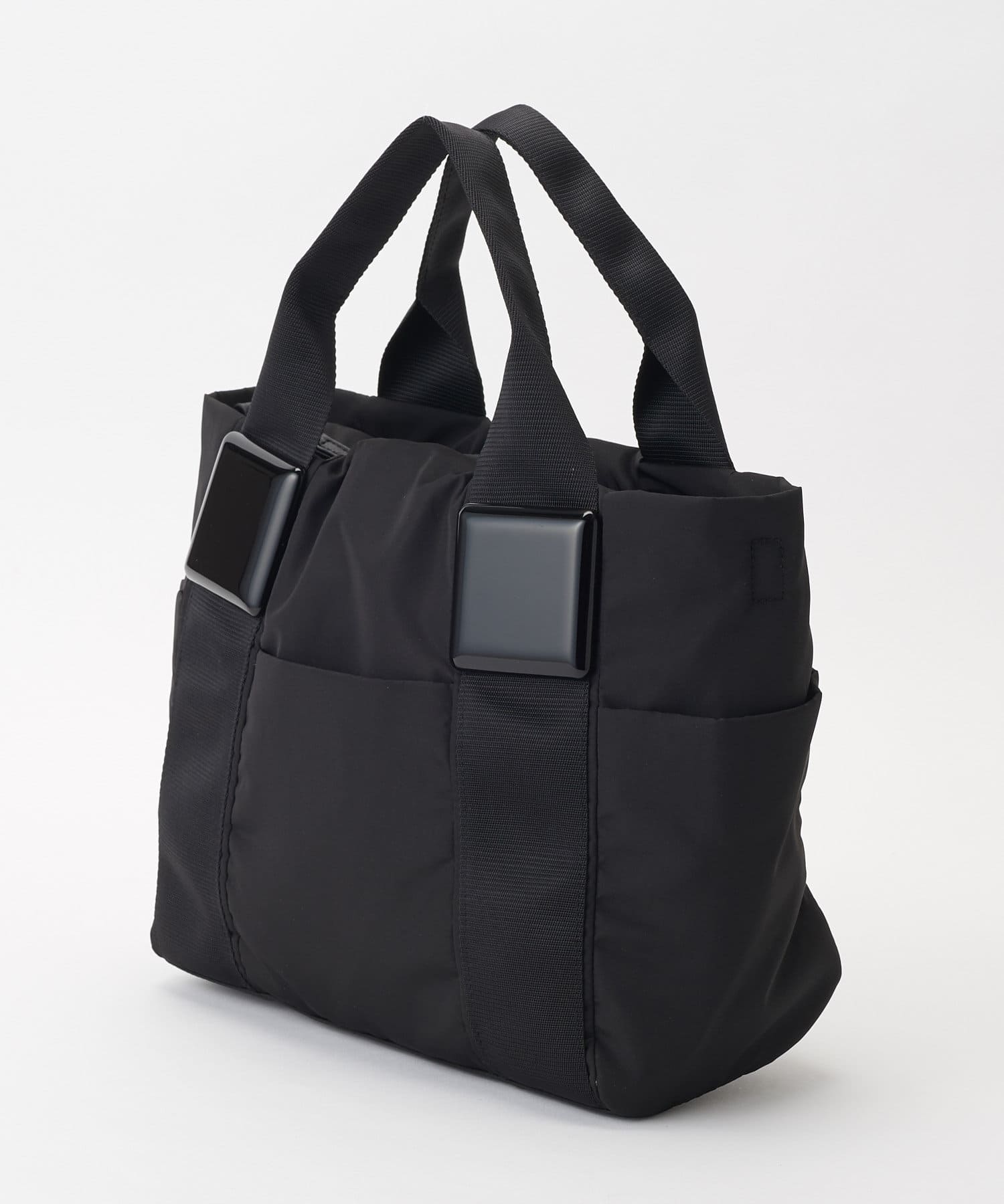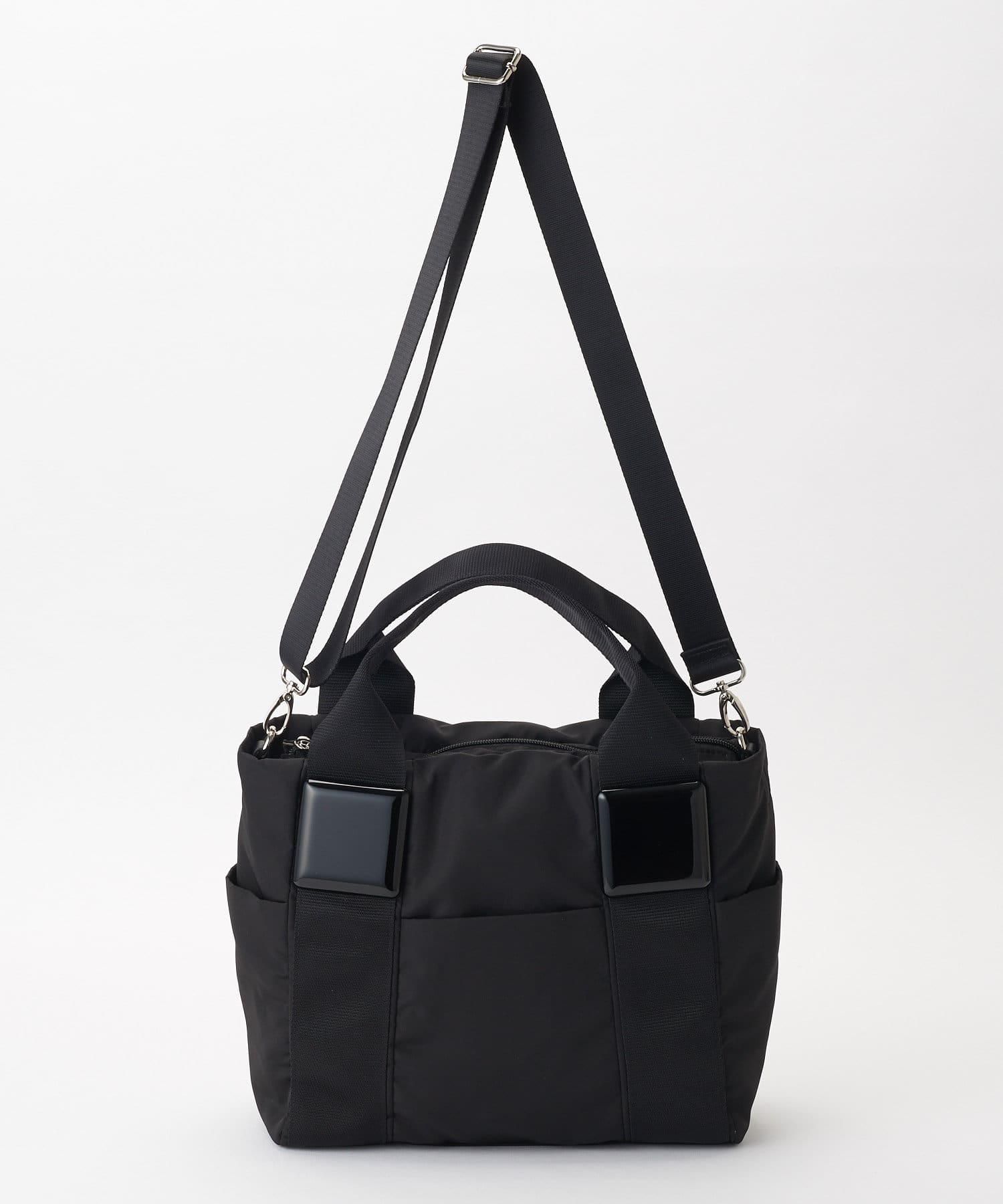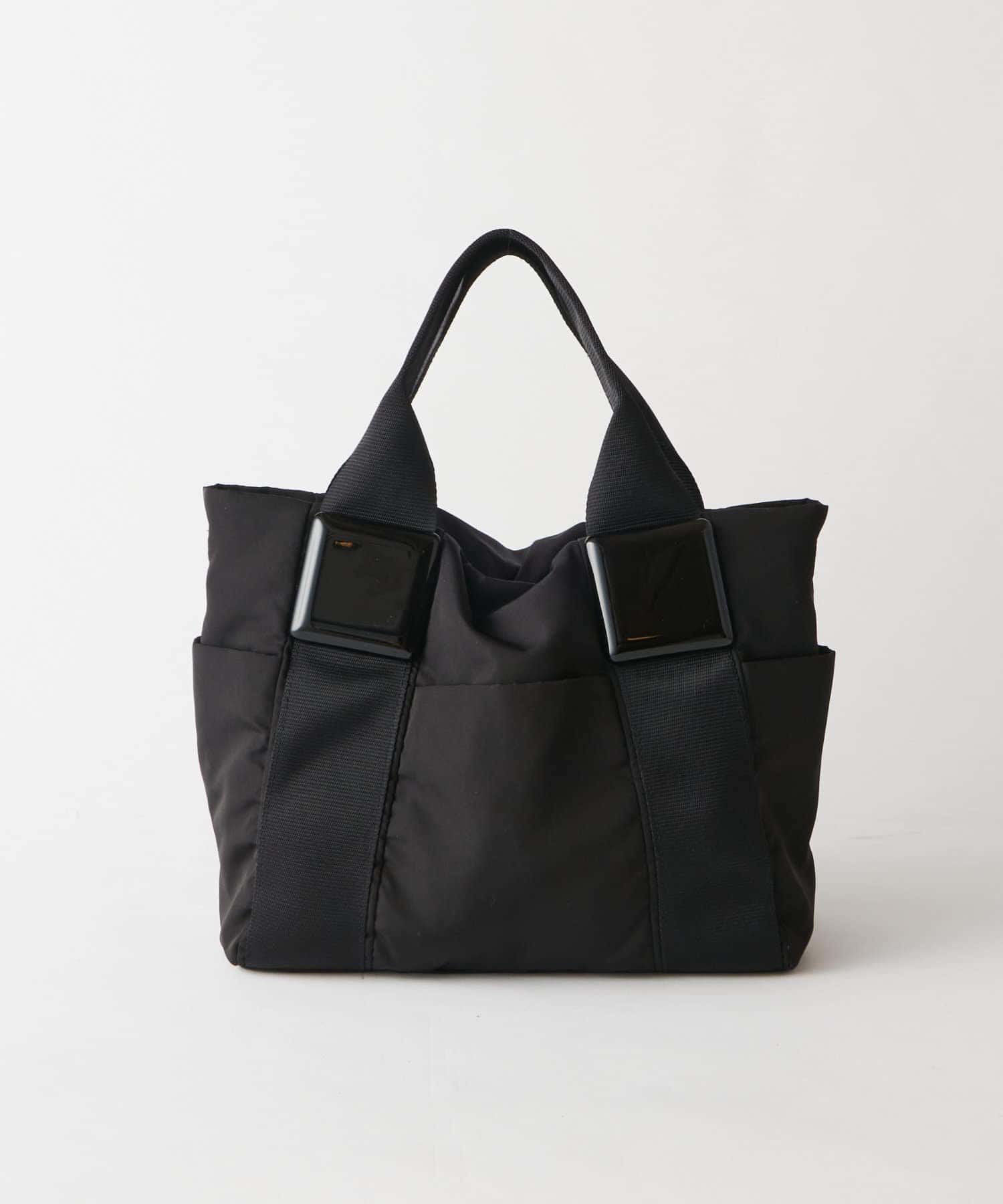【ポケット7個/ショルダー付/A4対応】スクエア樹脂パーツトートバッグ M