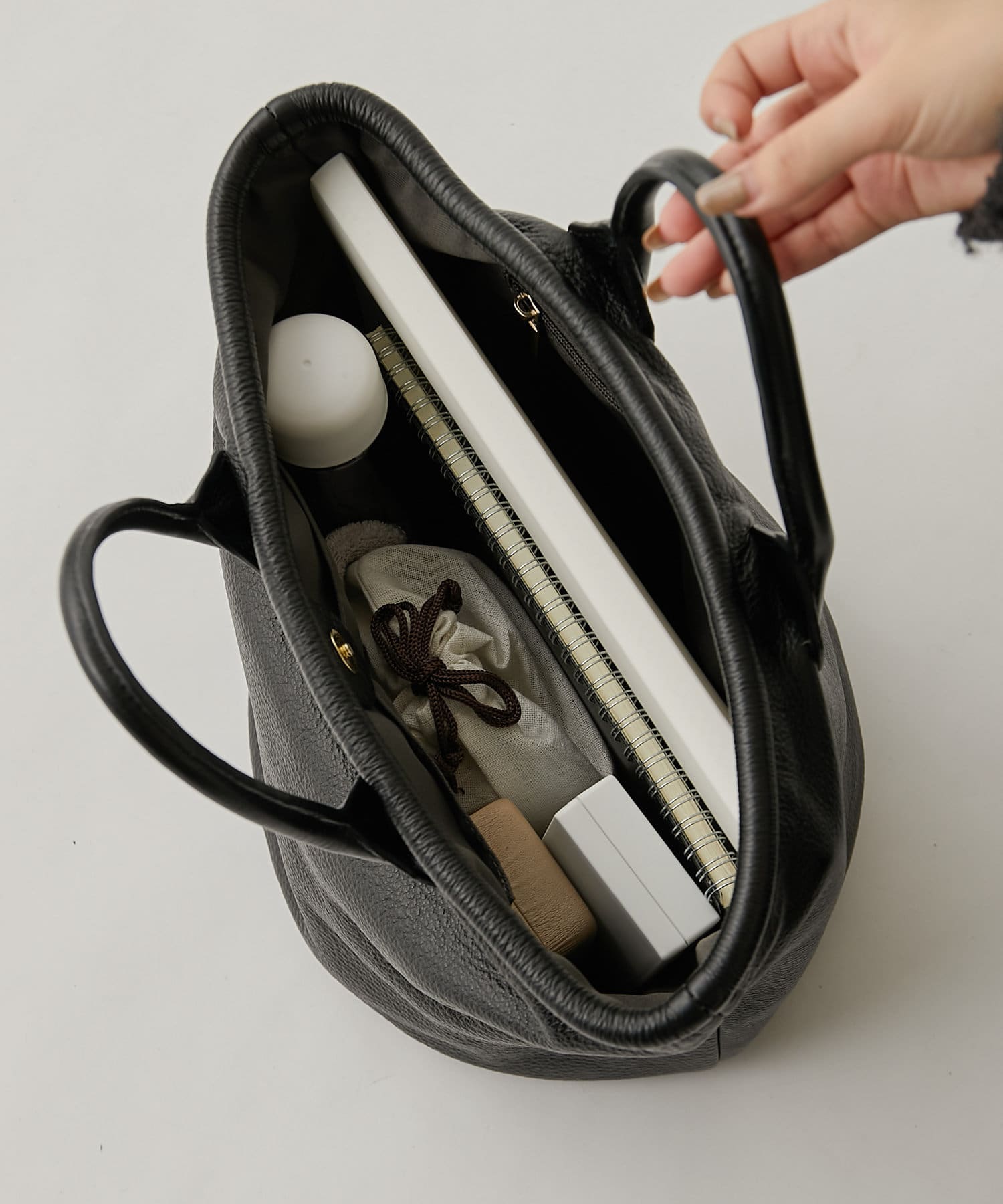 ・シンプルで柔らかいレザーの軽量トートバッグ。
