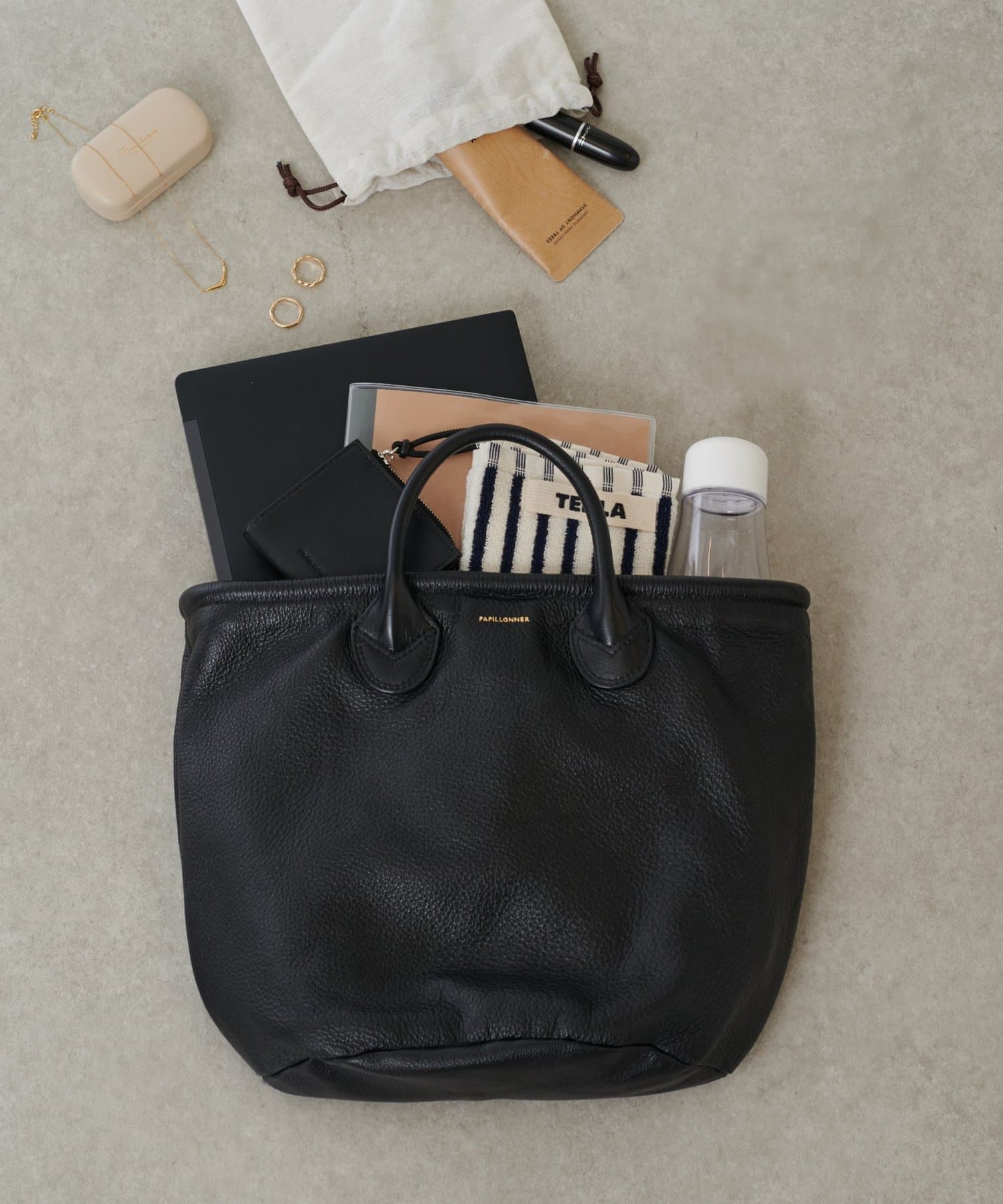 ・シンプルで柔らかいレザーの軽量トートバッグ。