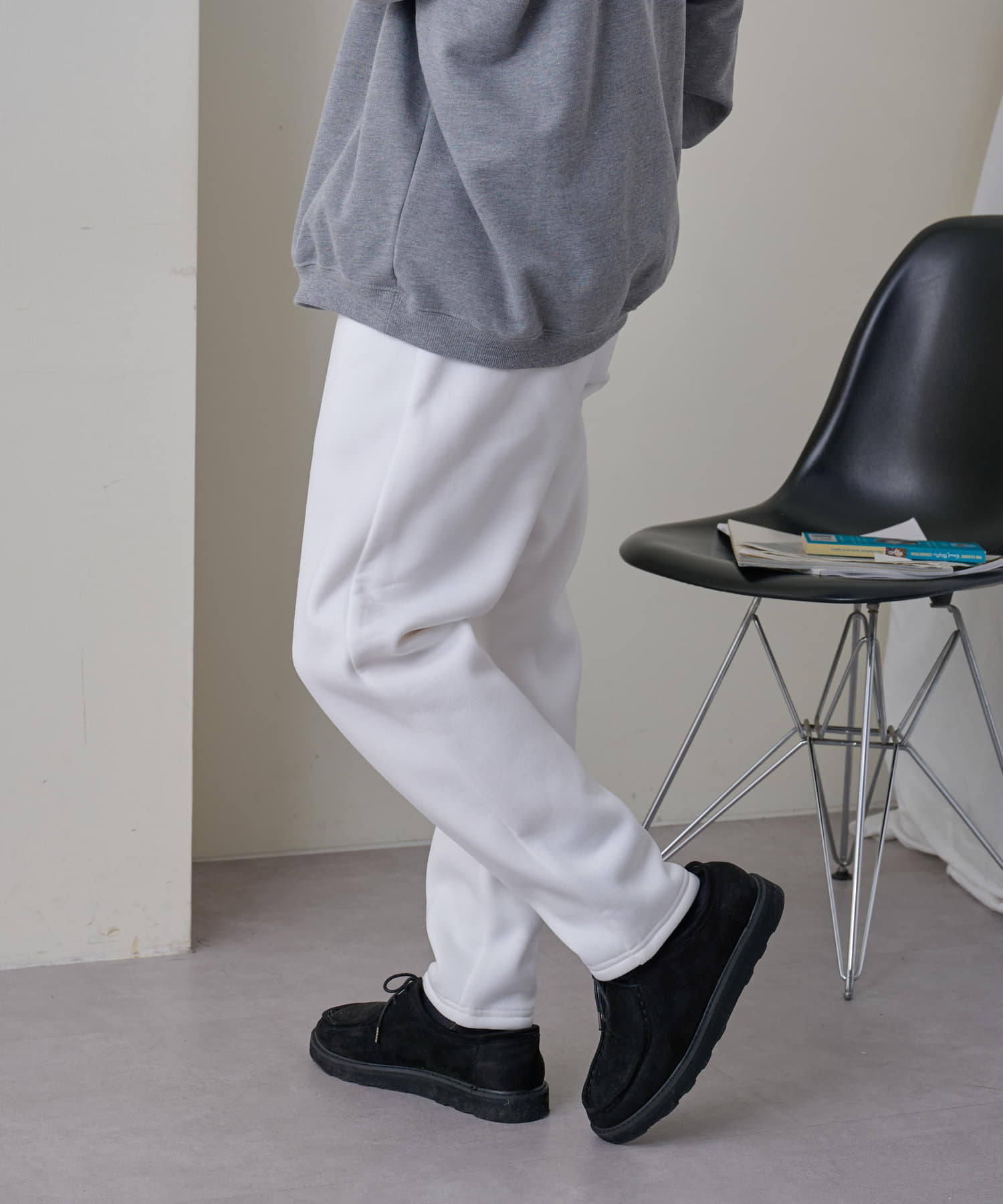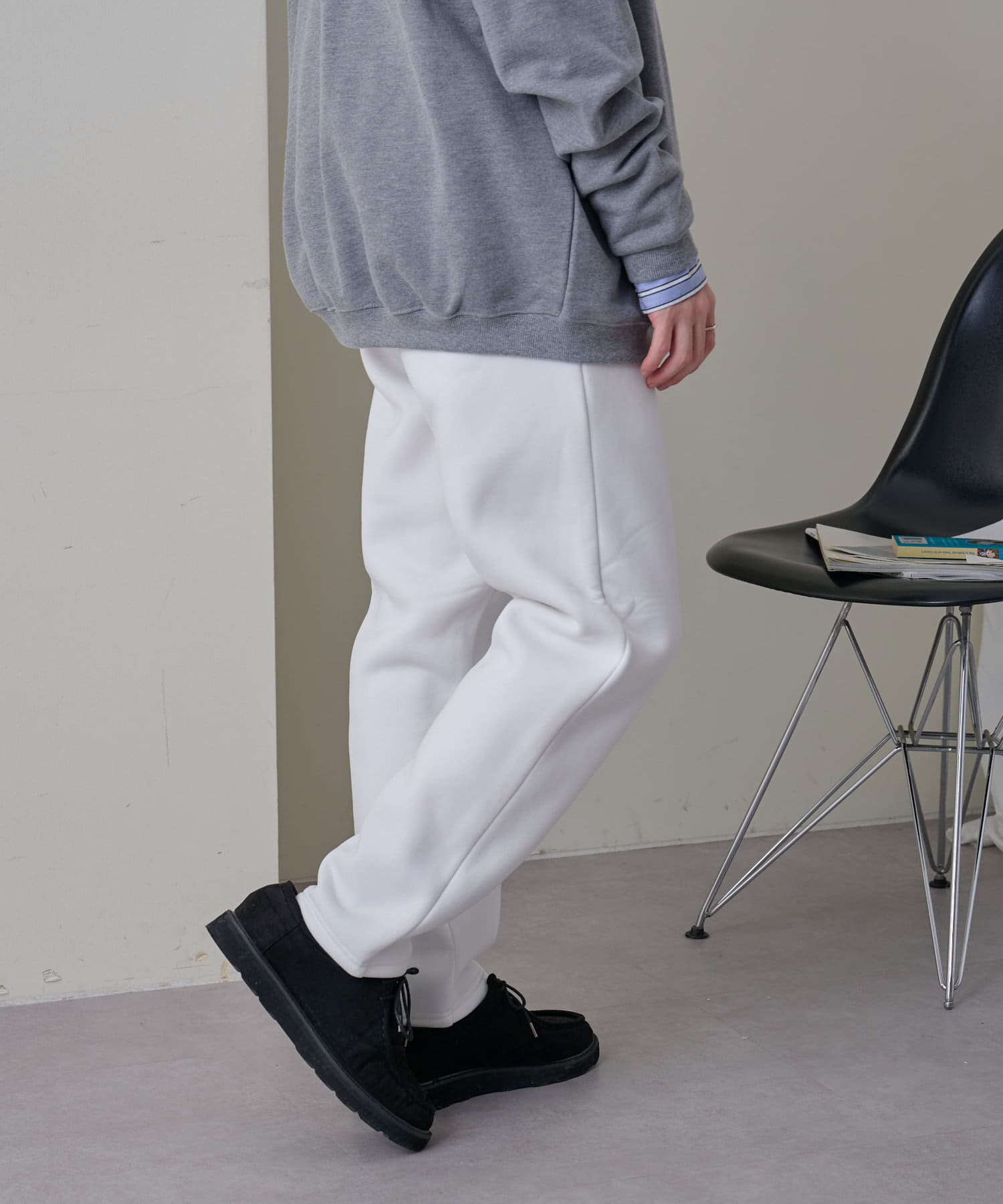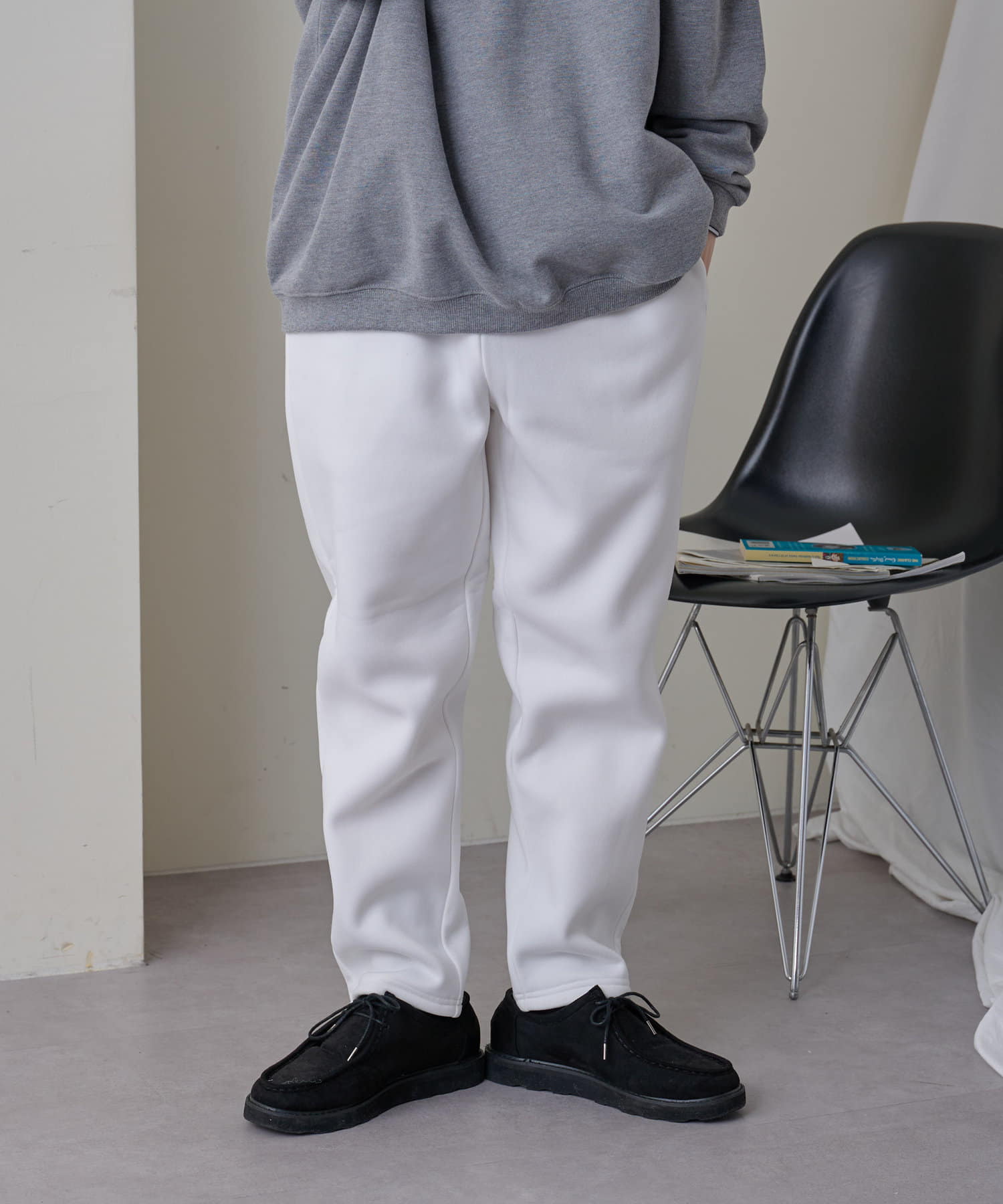 定番ダンボールニット素材に裏起毛を施したオリジナルピスネーム付きパンツ。