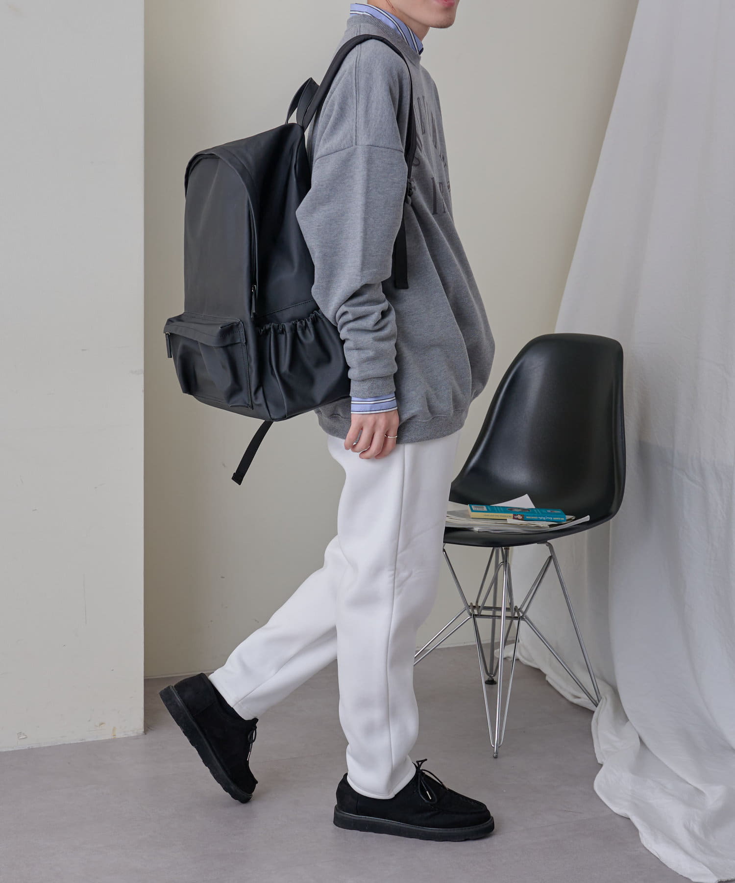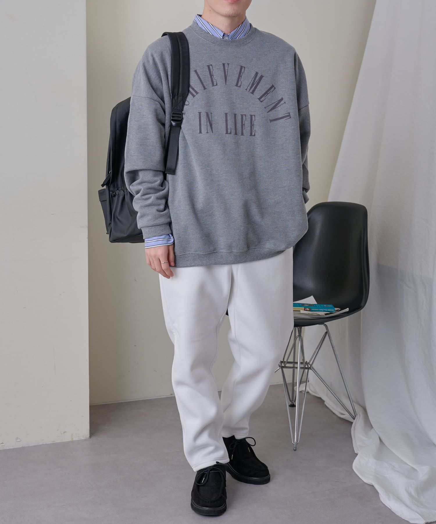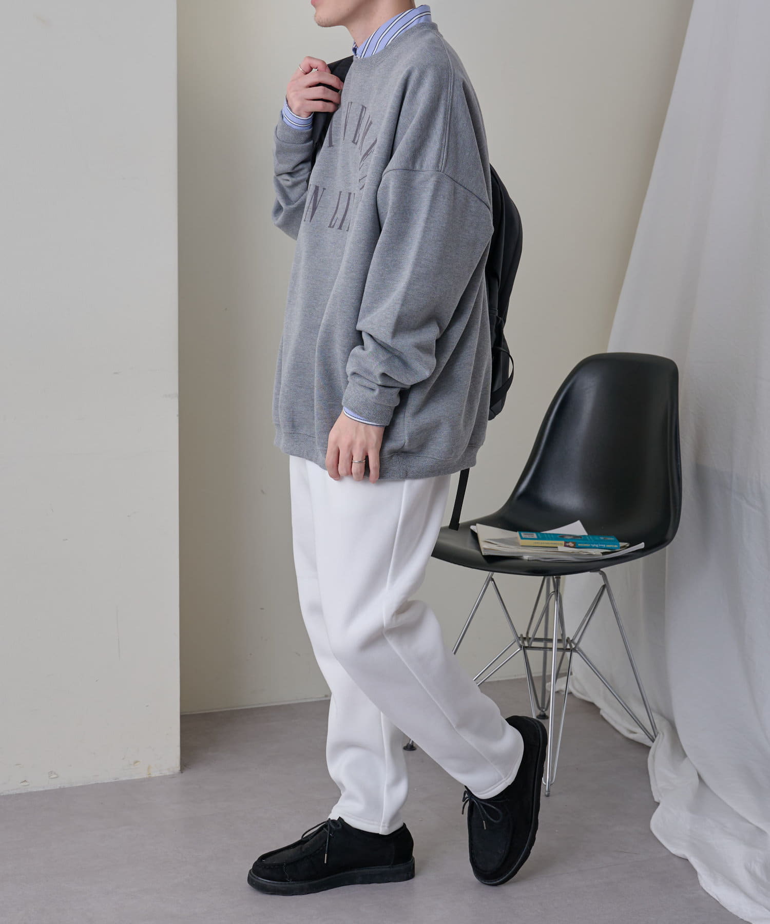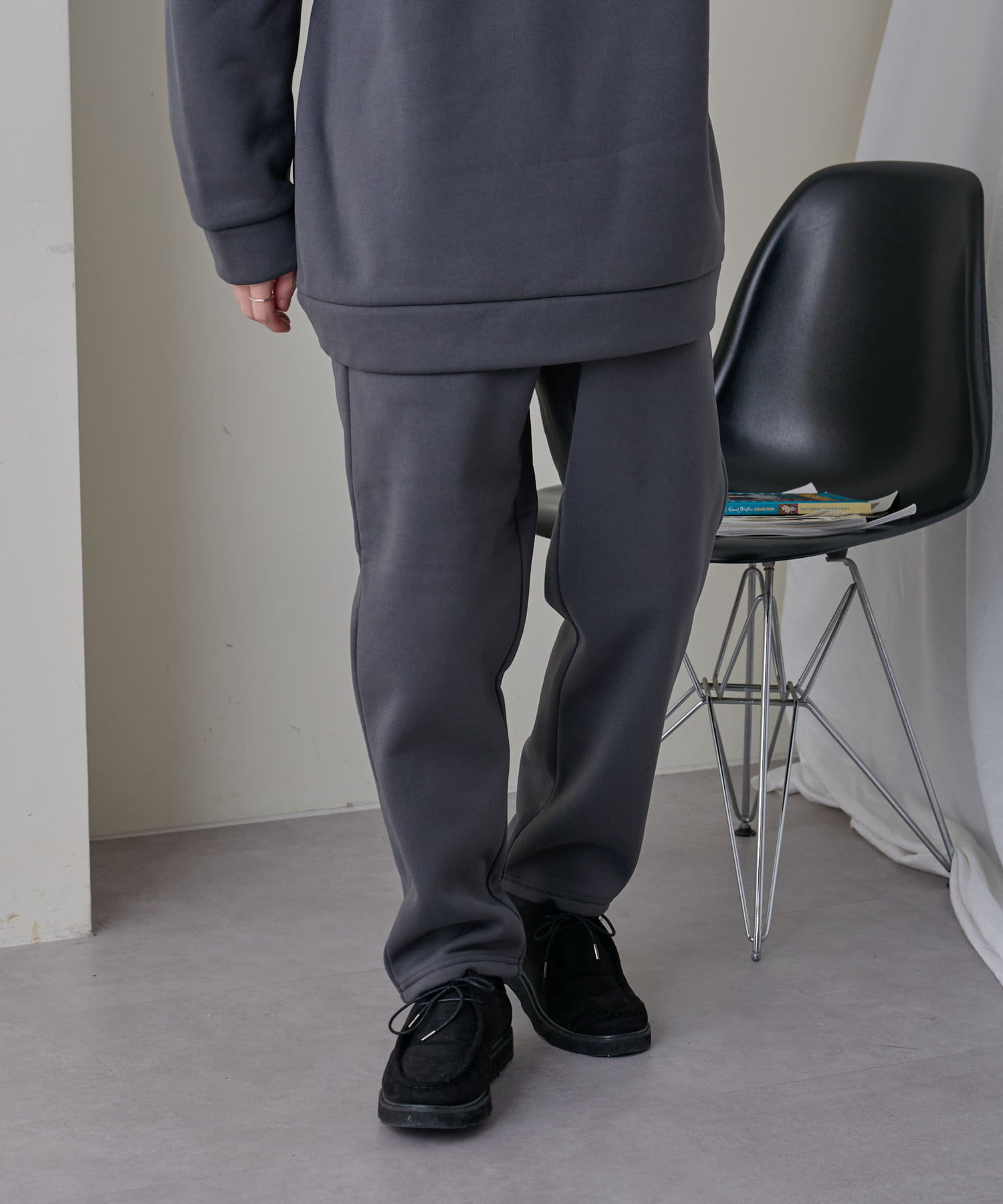定番ダンボールニット素材に裏起毛を施したオリジナルピスネーム付きパンツ。