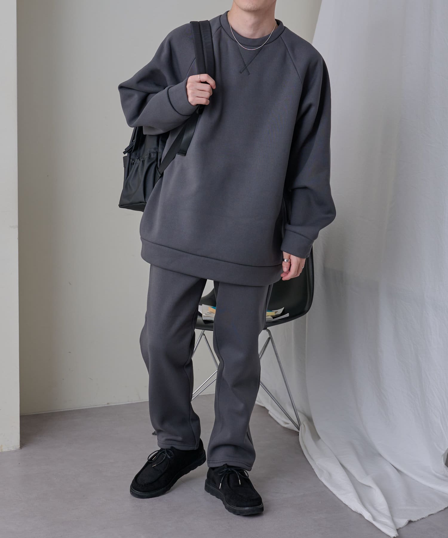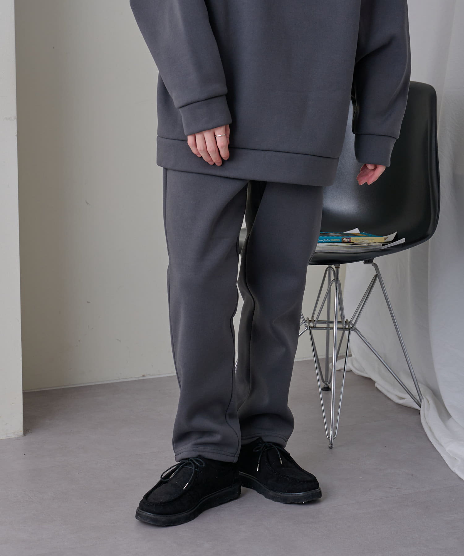 裏起毛加工の調節により伸縮性、保温性の高い仕上がりに。