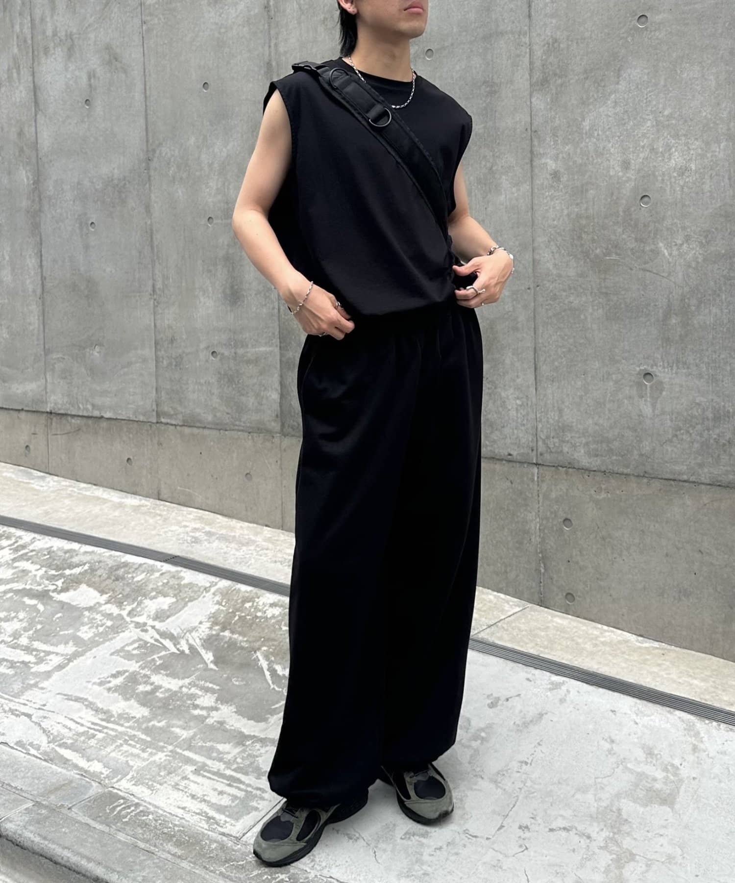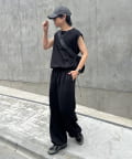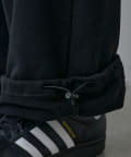 裾にはドローコードがついているので、ワイドパンツとしてもお好みのシルエットに調節しても使える万能アイテムです