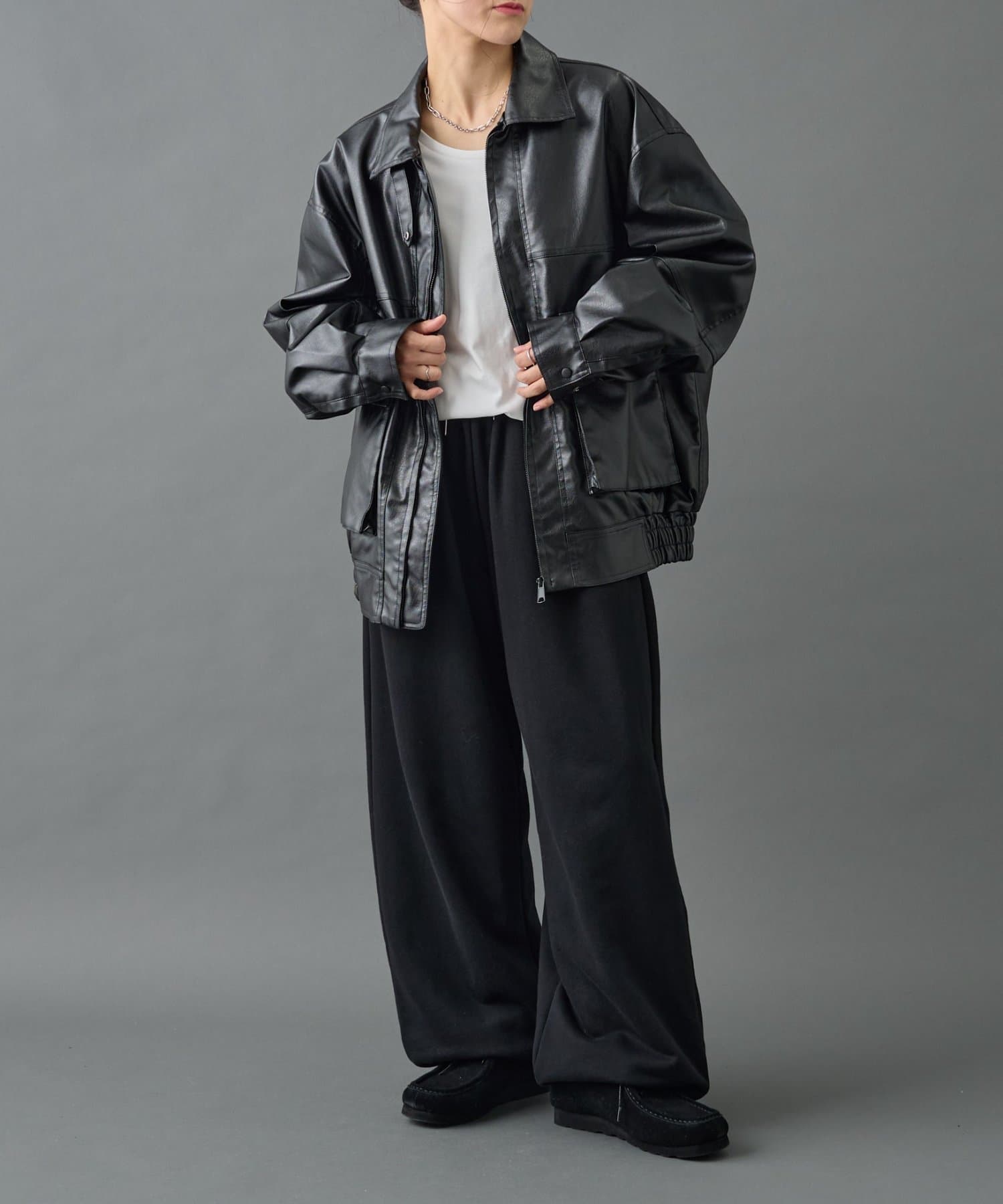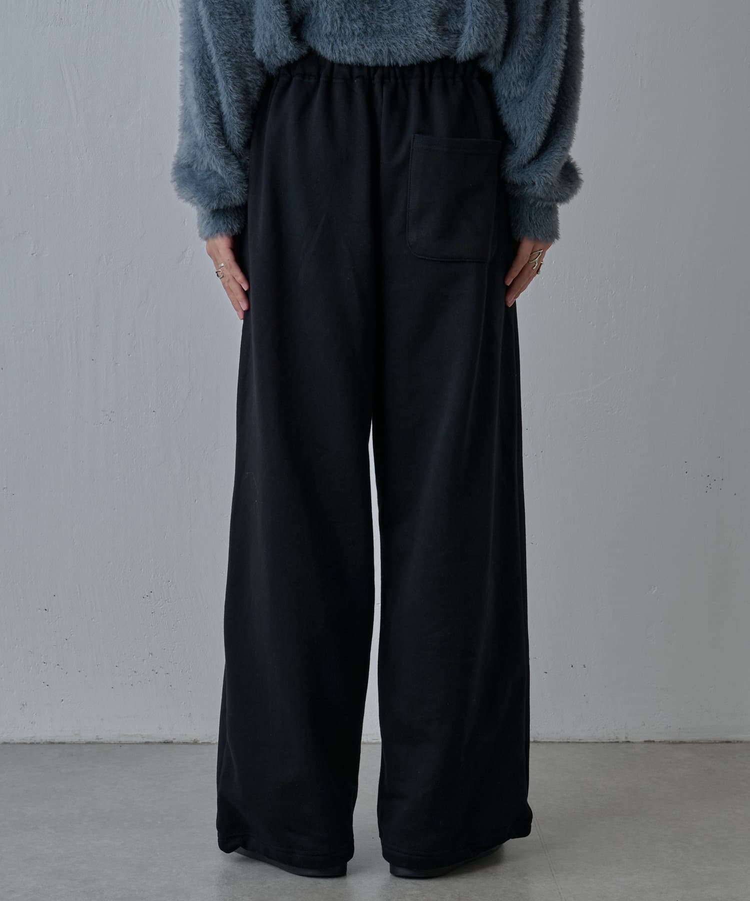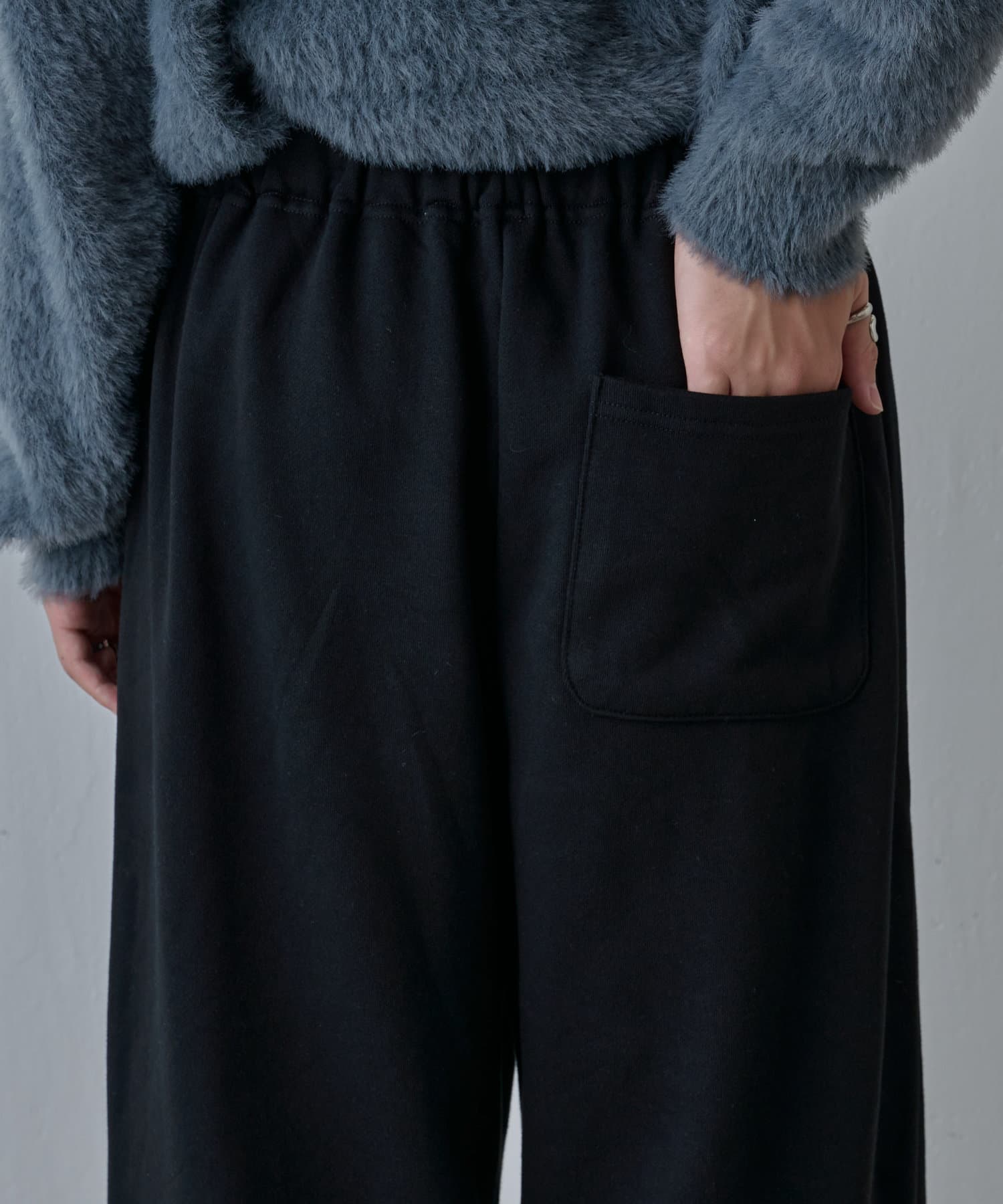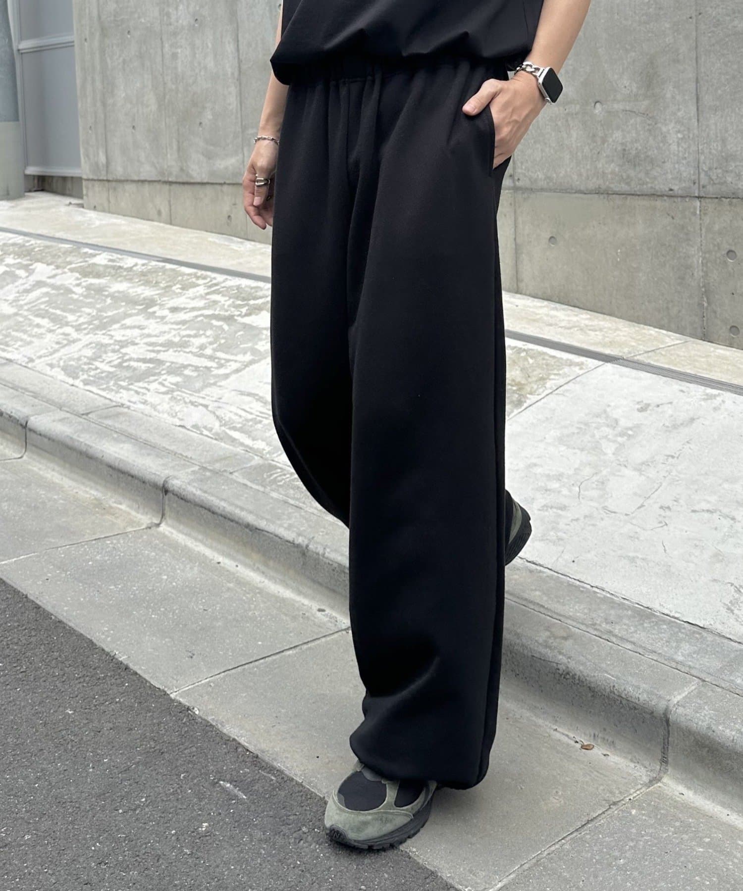 きれいめな表面に加えしっかりとした張りのある生地を使用したワイドシルエットのスウェットパンツです。