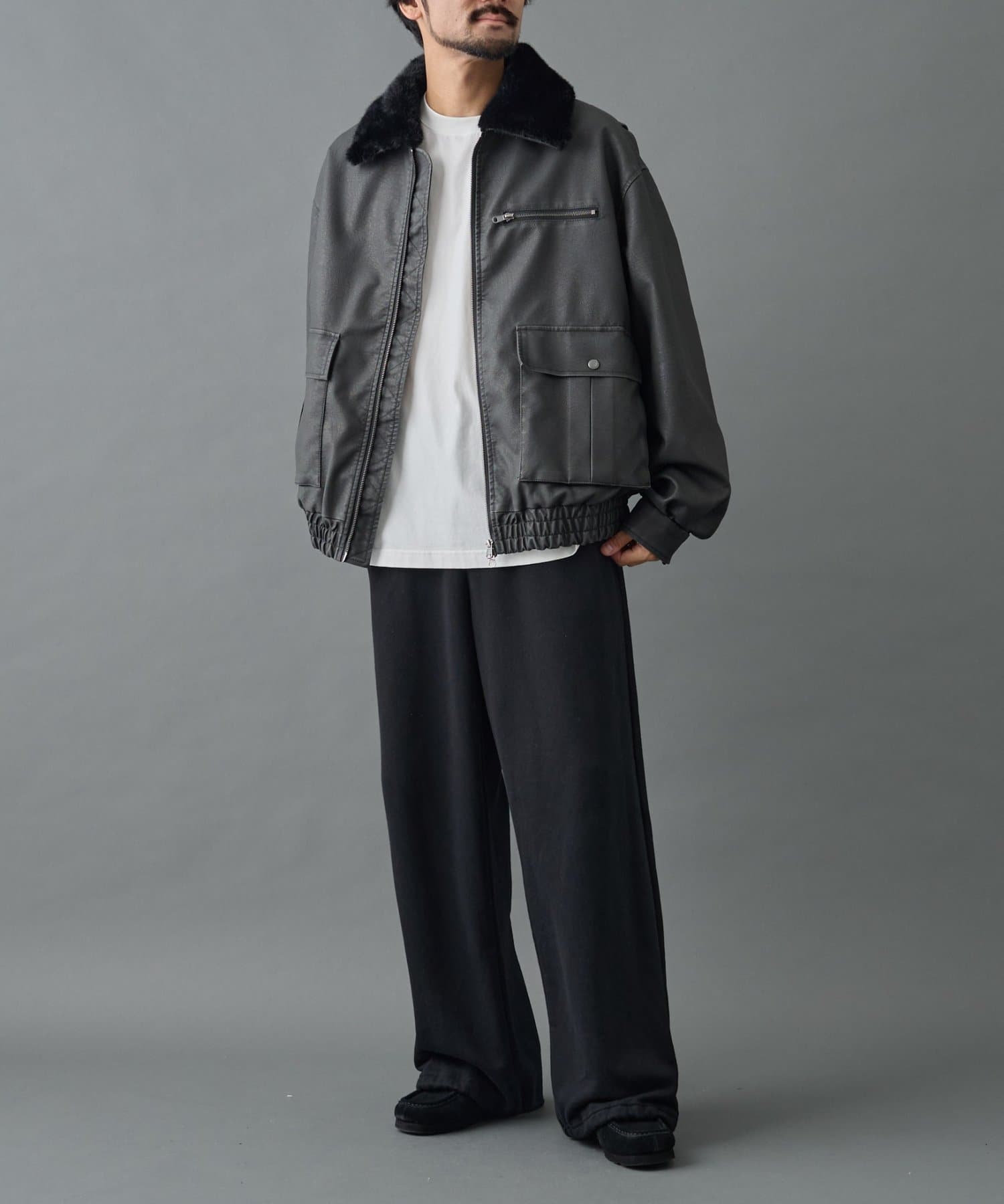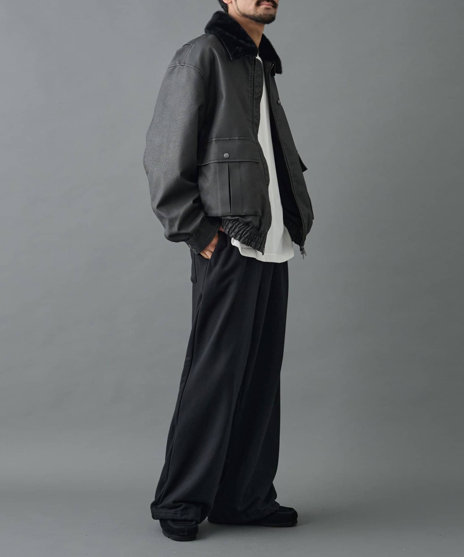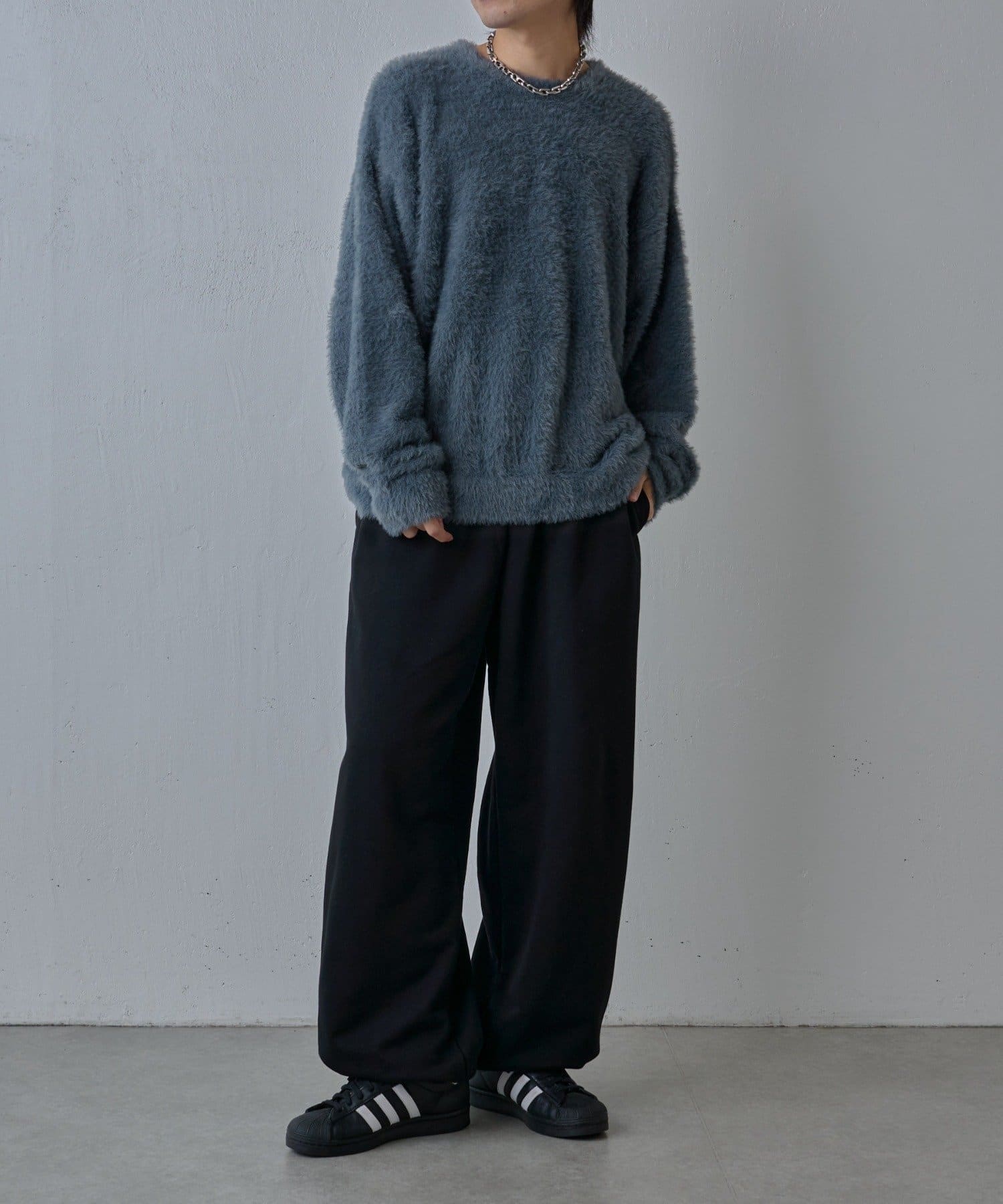 カジュアル見えしがちなスウェットパンツですが、レザーやシャツなどとも合わせられるよう目面のきれいな素材を使用しております。