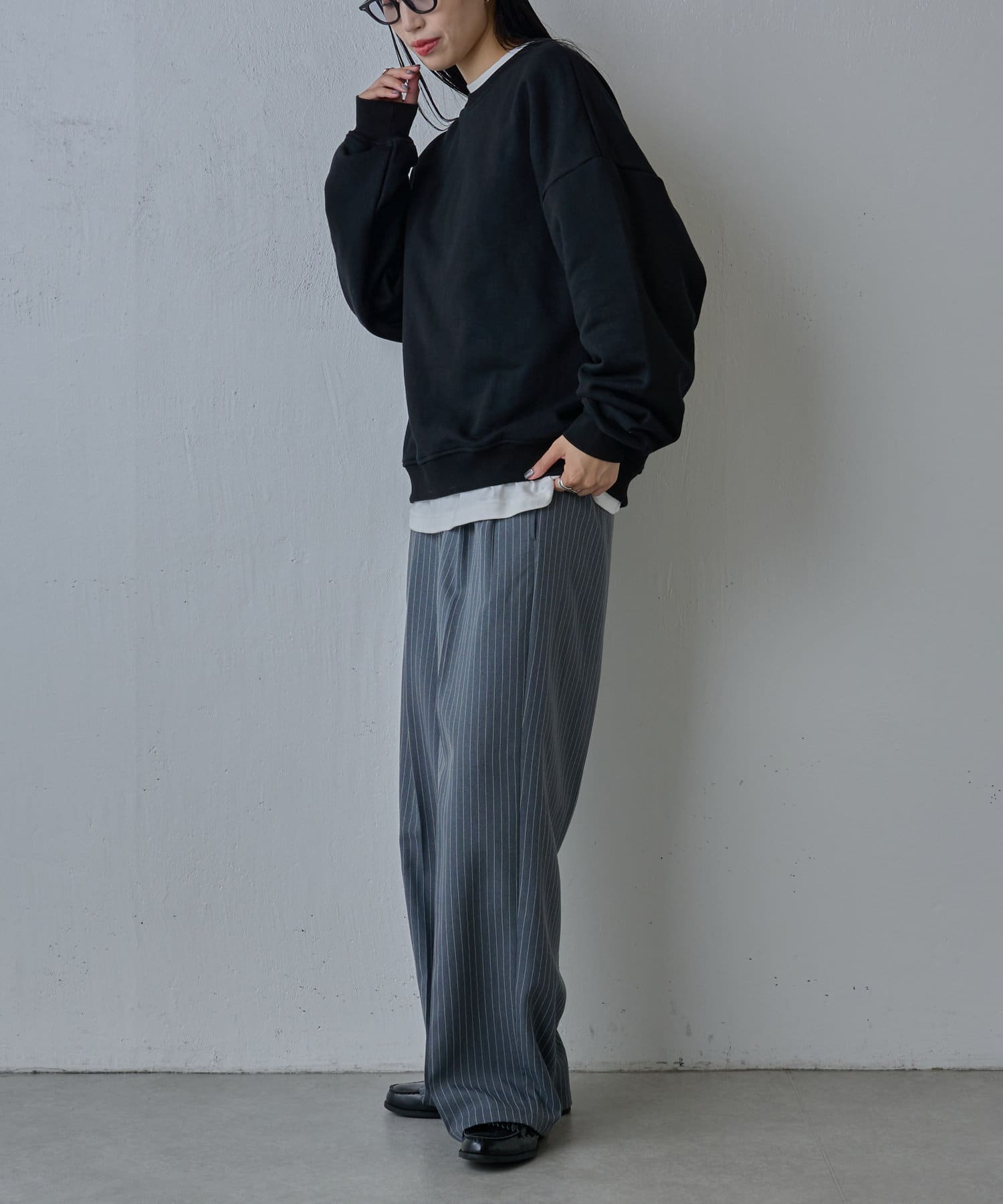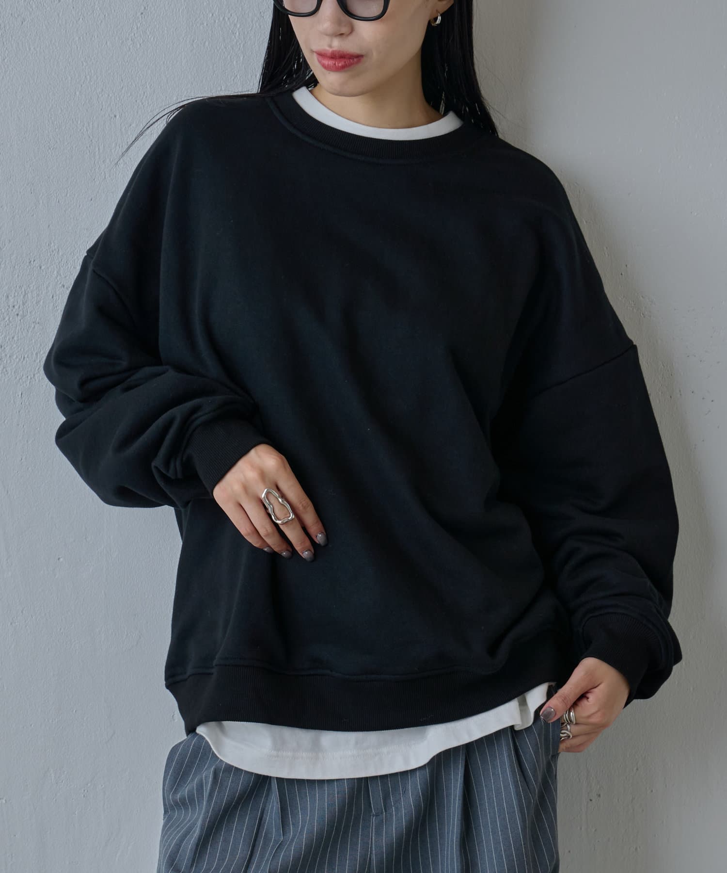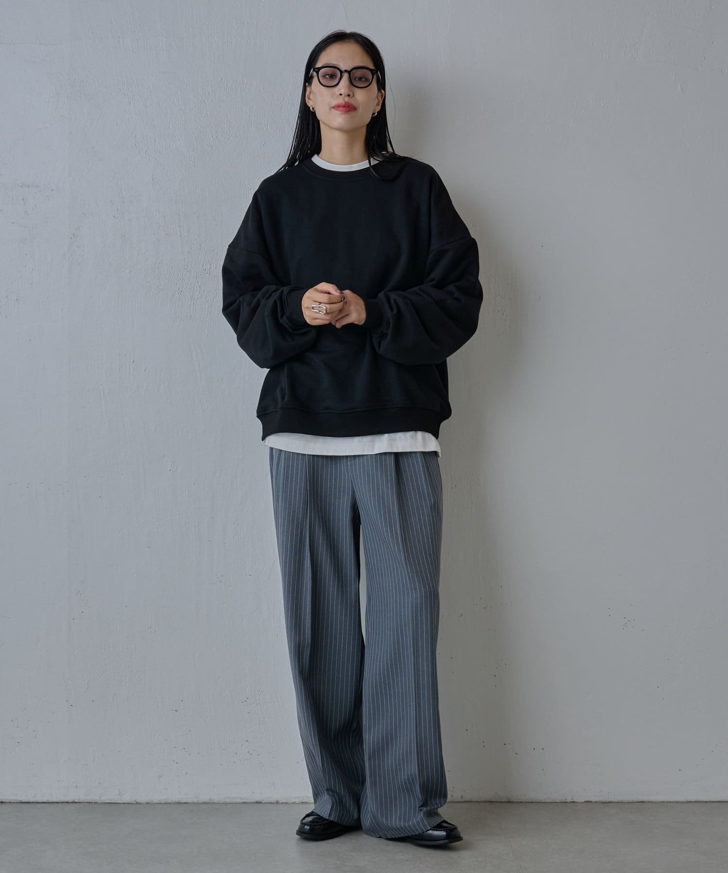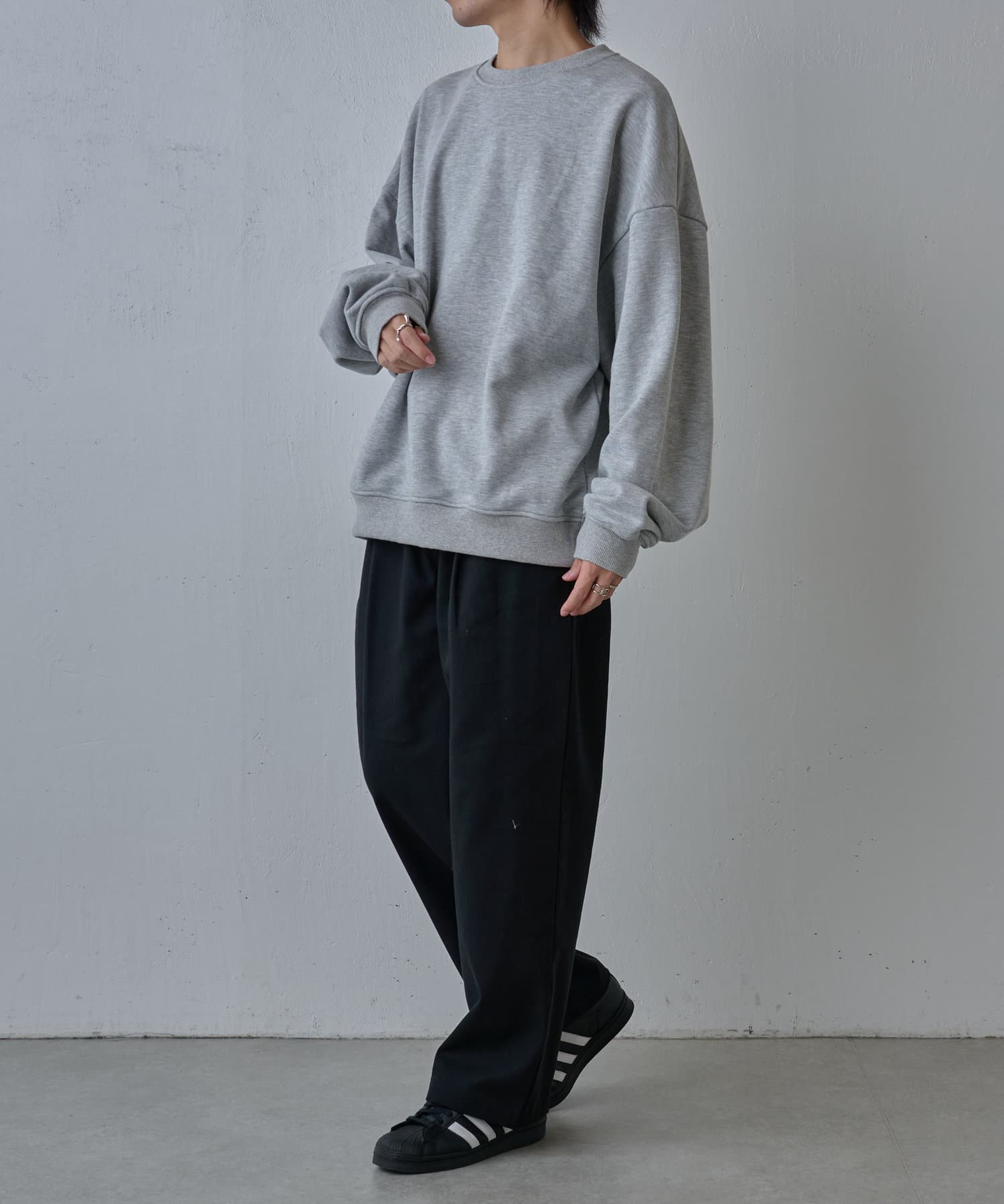 きれいめな表面に加えしっかりとした張りのある生地を使用したスウェットです。
