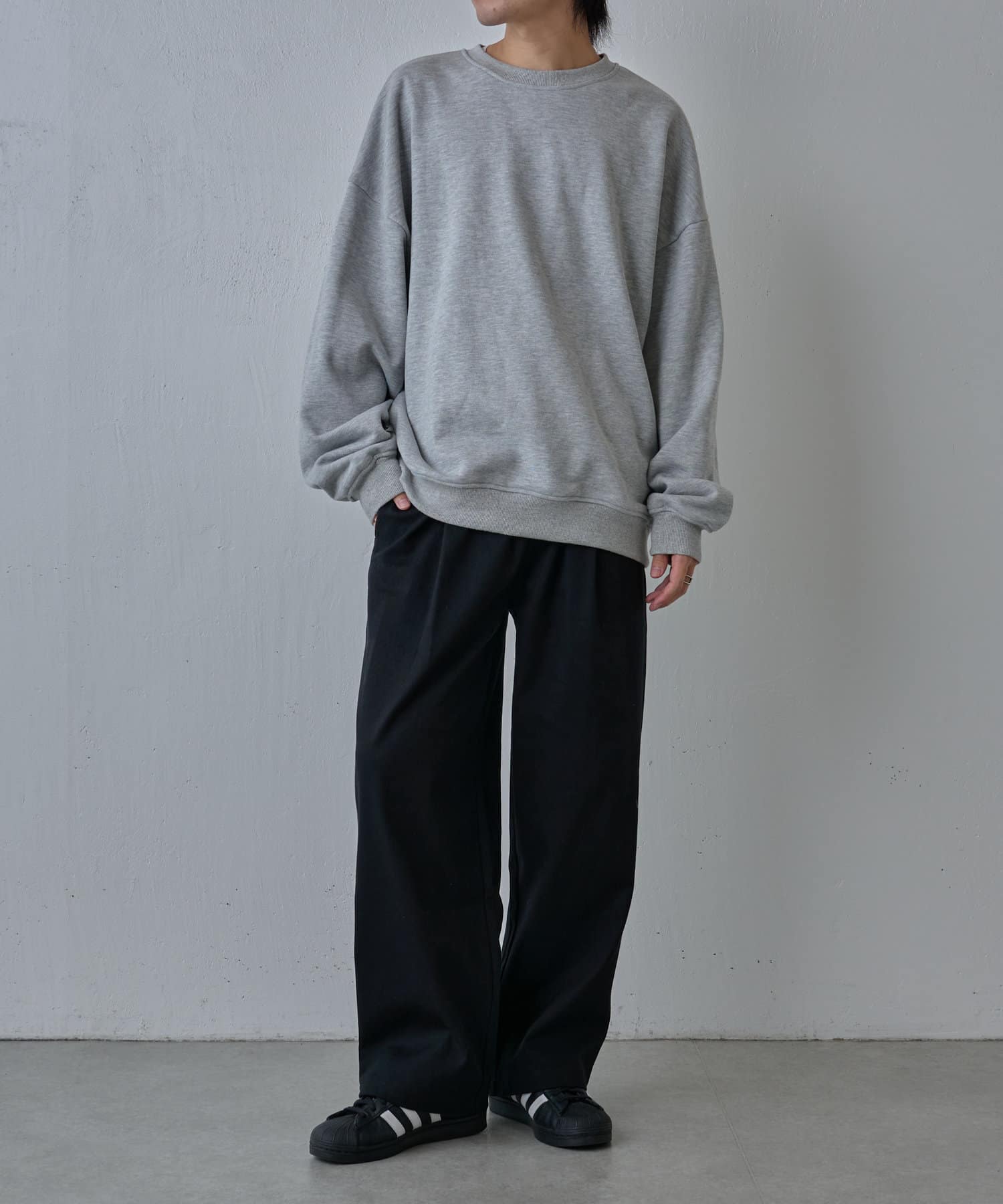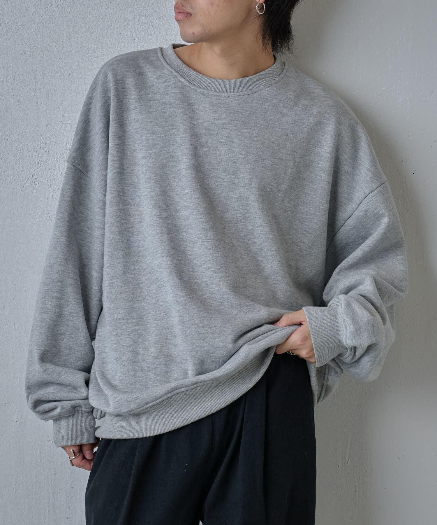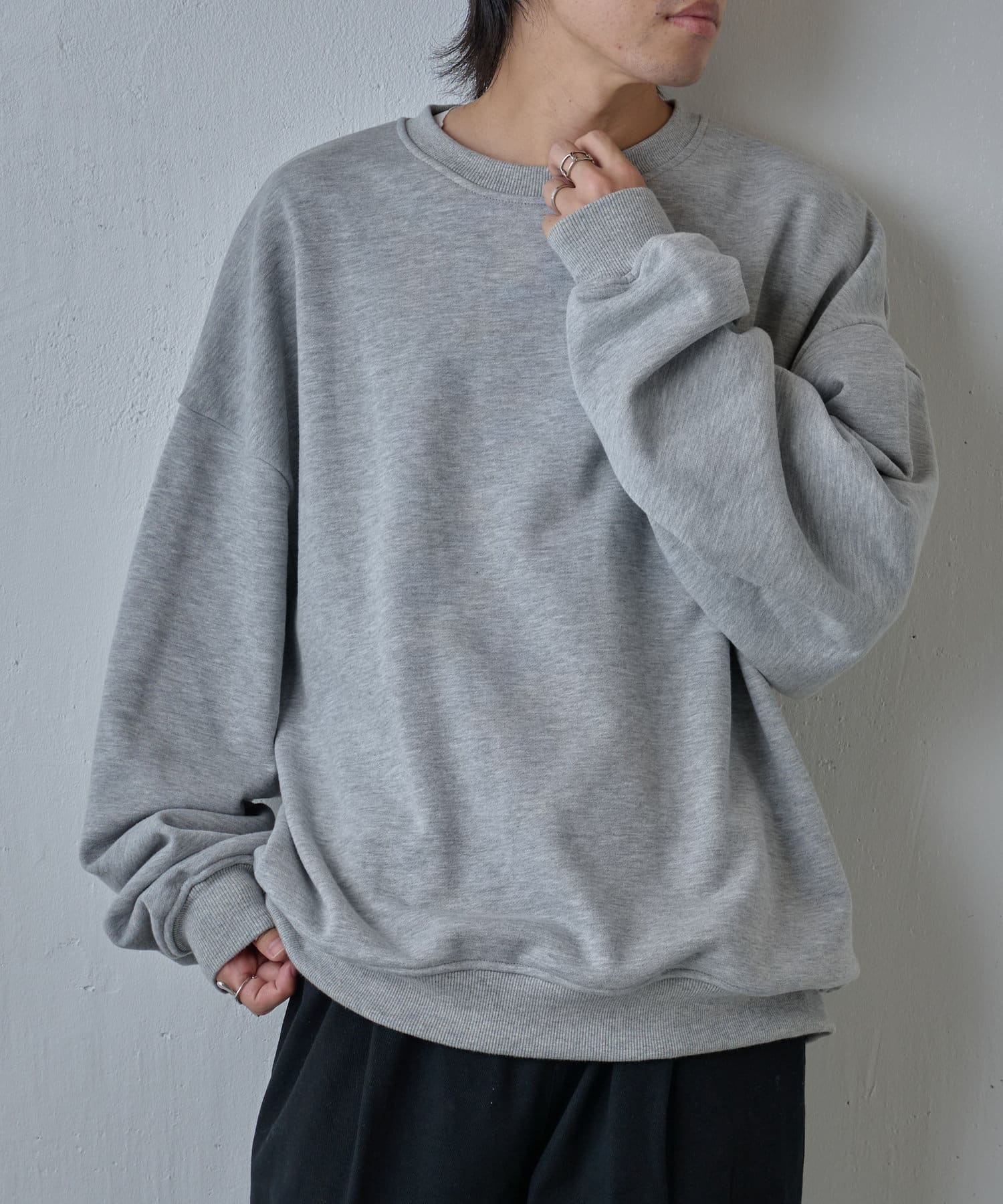 カジュアル見えしがちなスウェットですが、レザーやスラックスなどとも合わせられるよう目面のきれいな素材を使用しております。