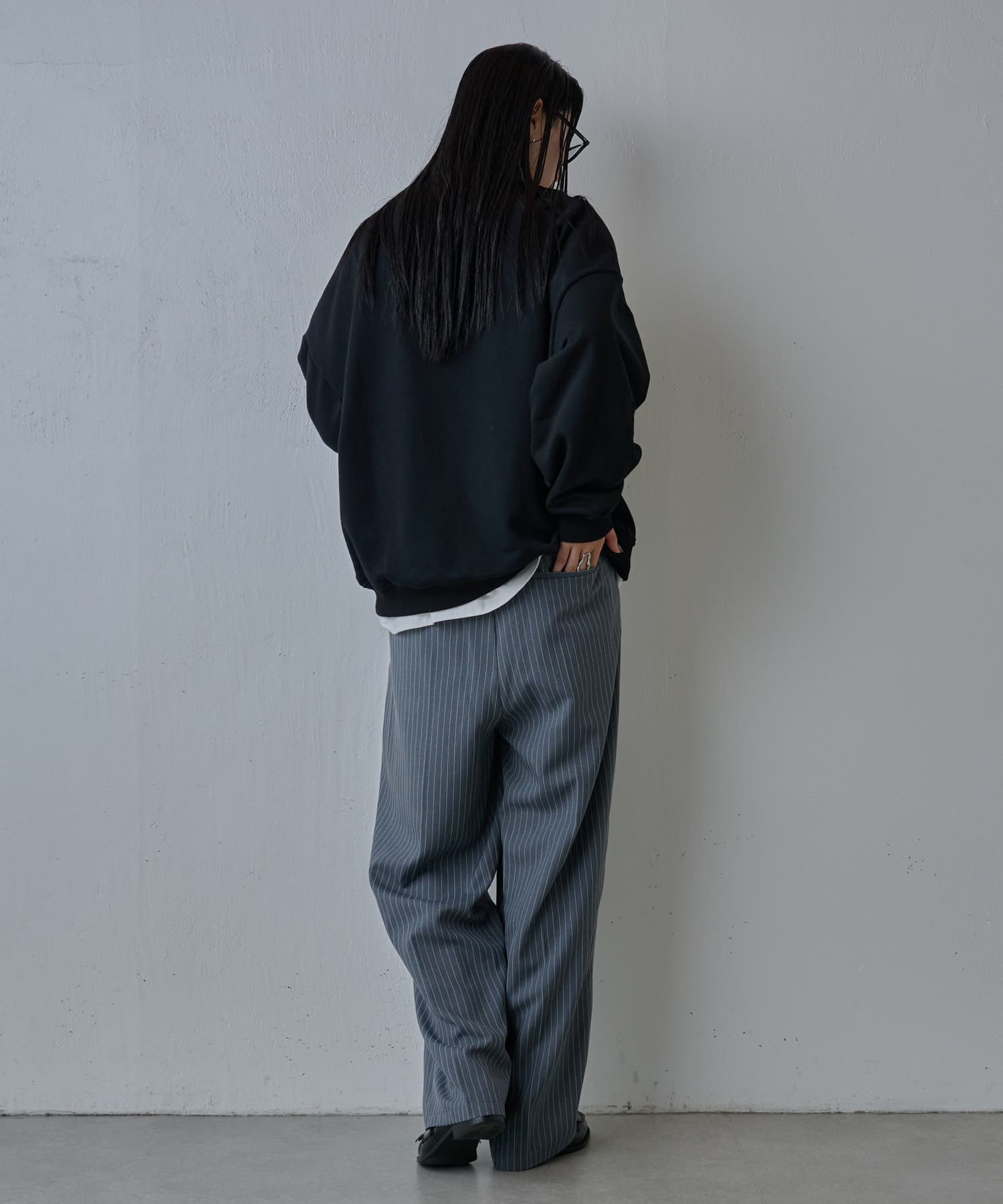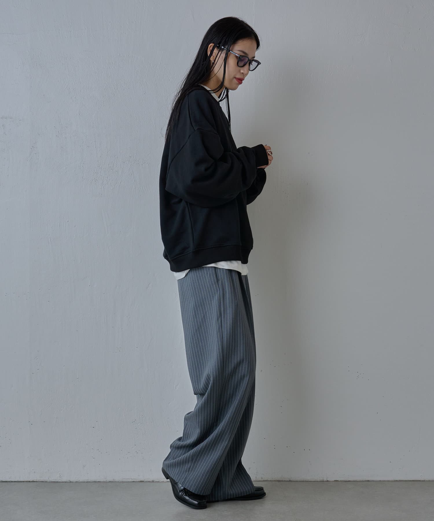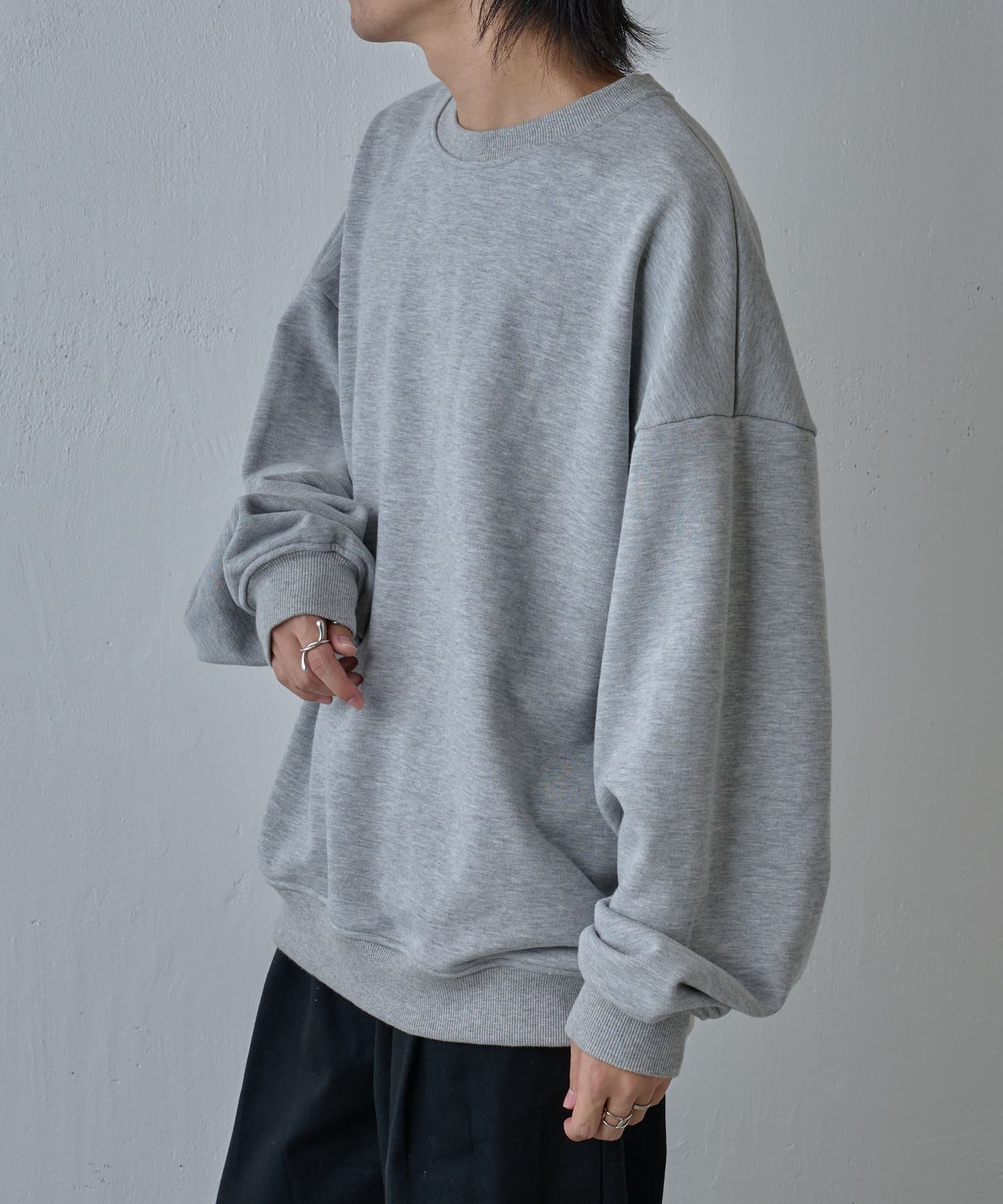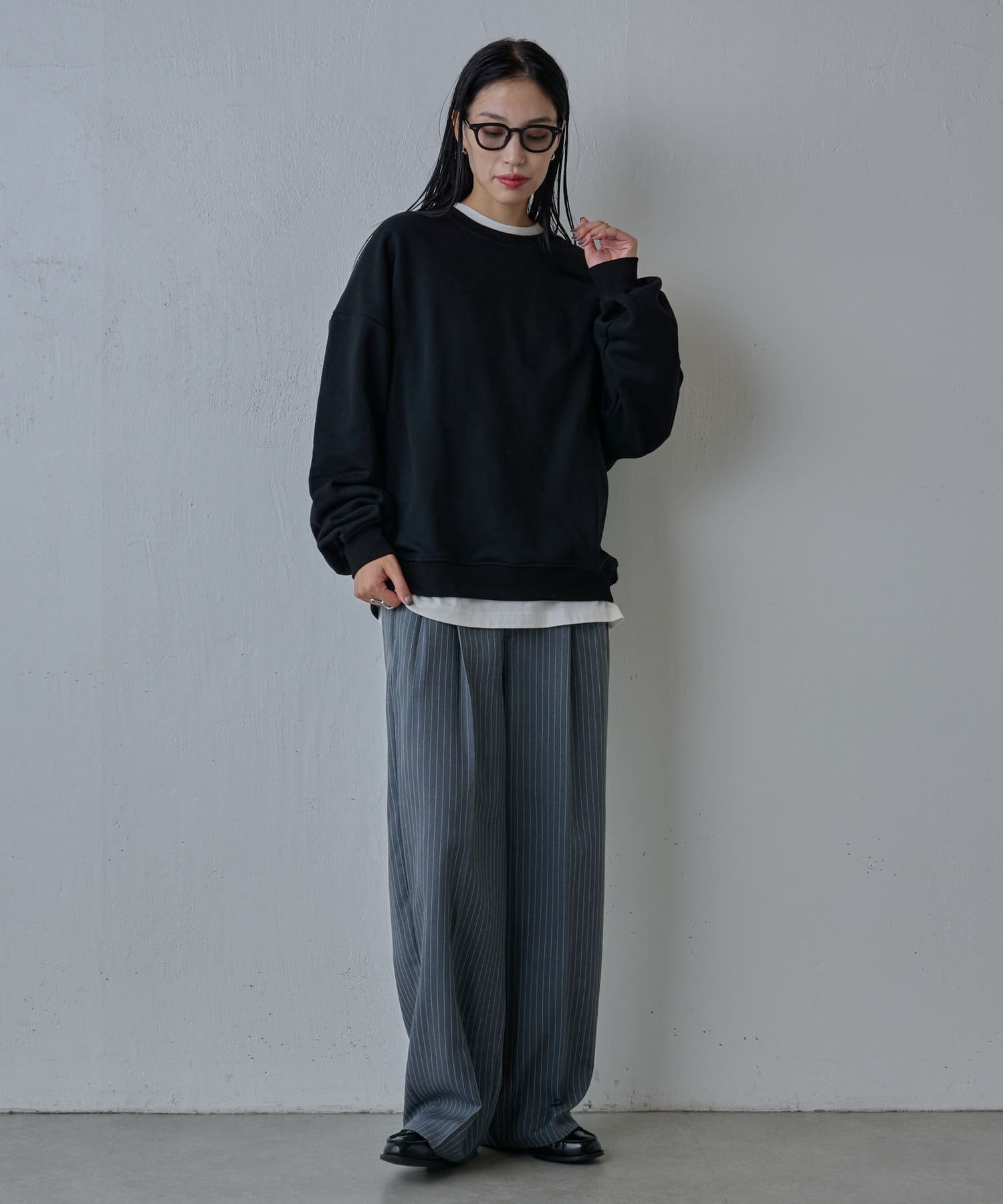 カジュアル見えしがちなスウェットですが、レザーやスラックスなどとも合わせられるよう目面のきれいな素材を使用しております。