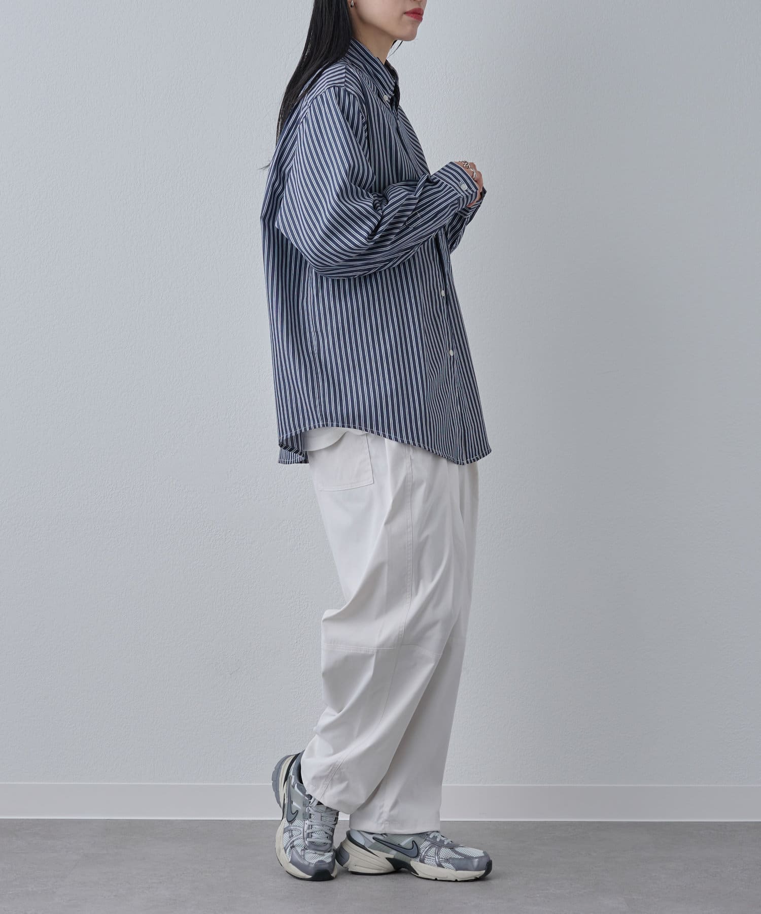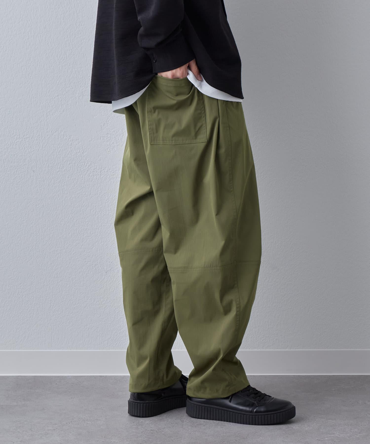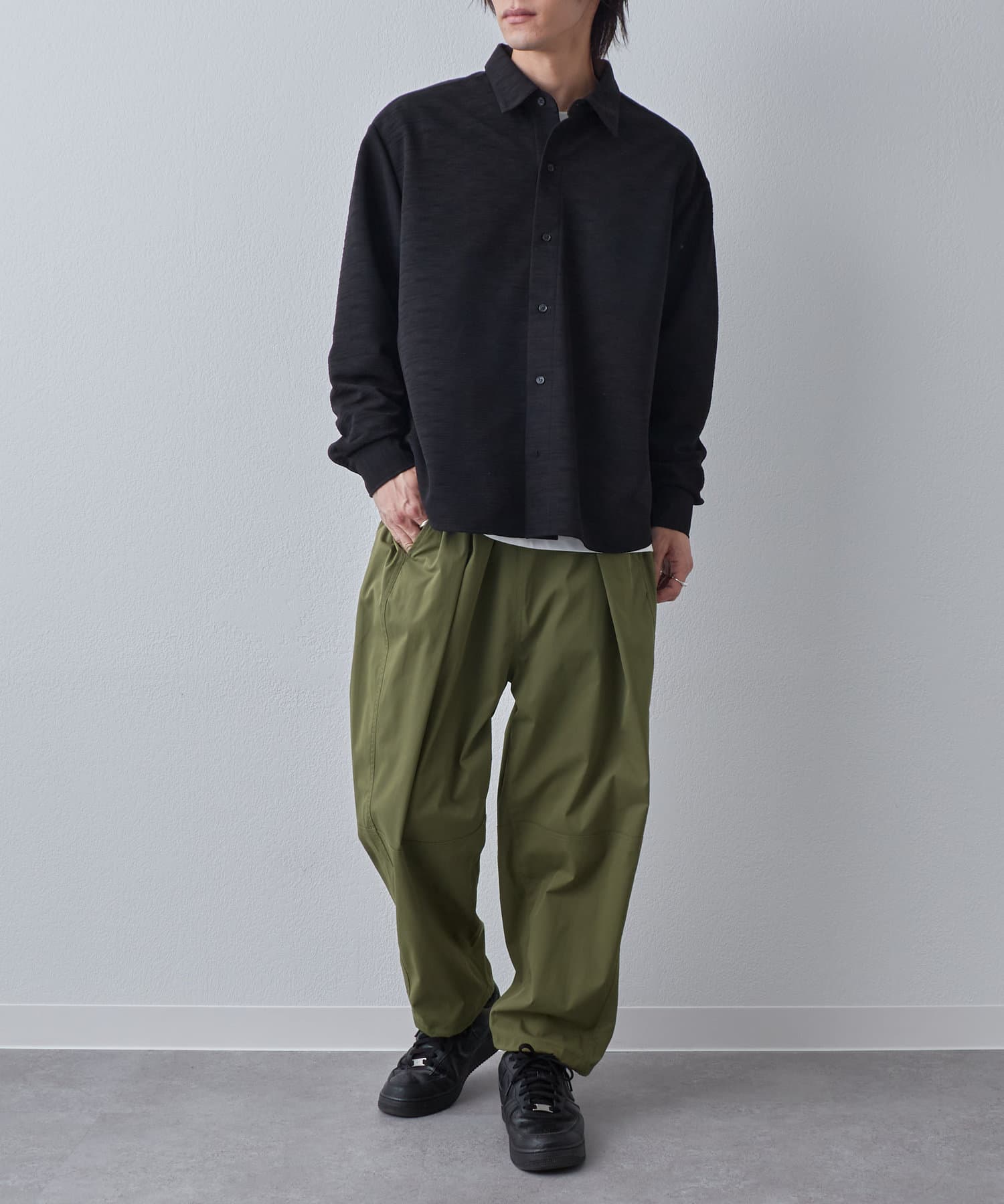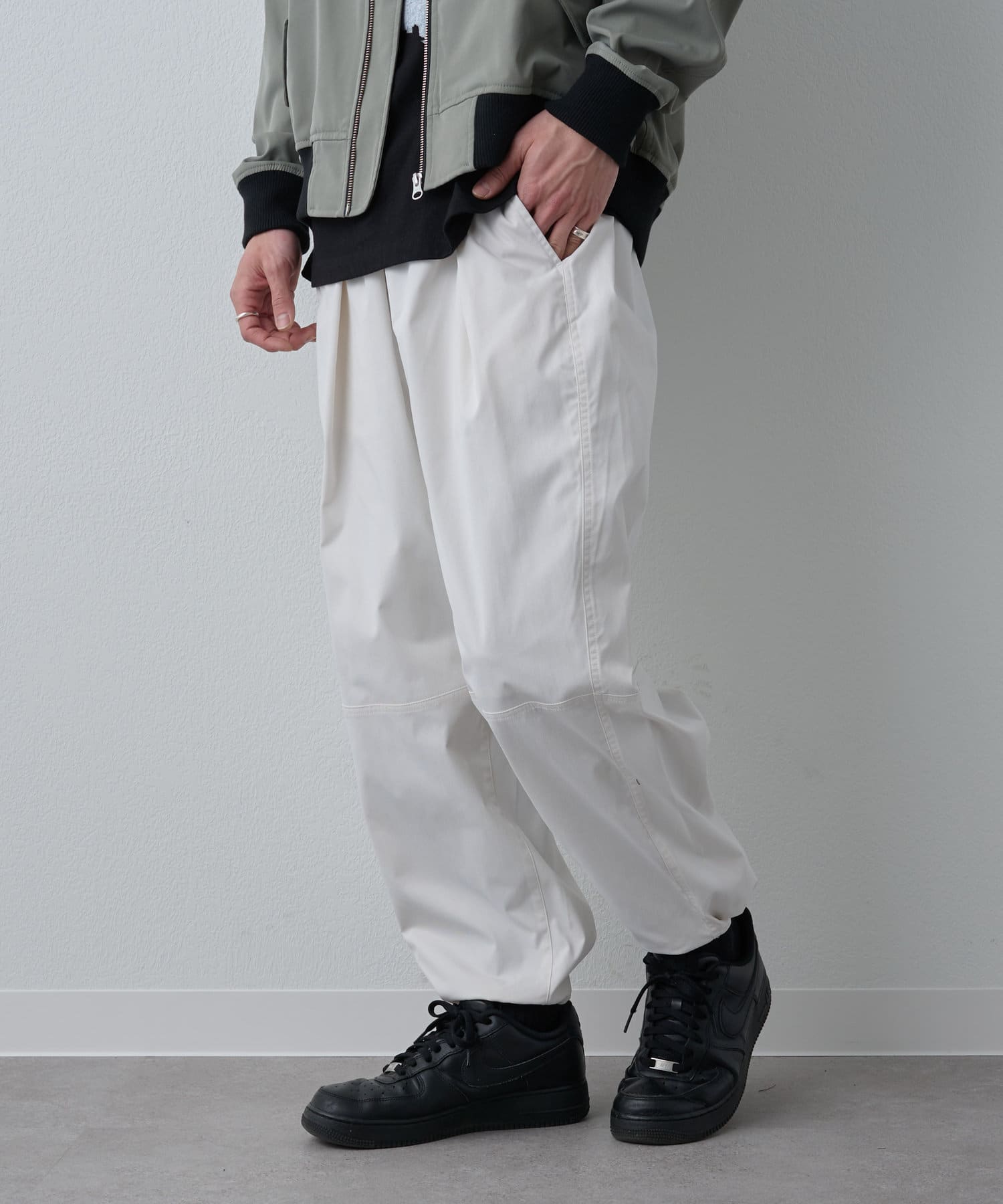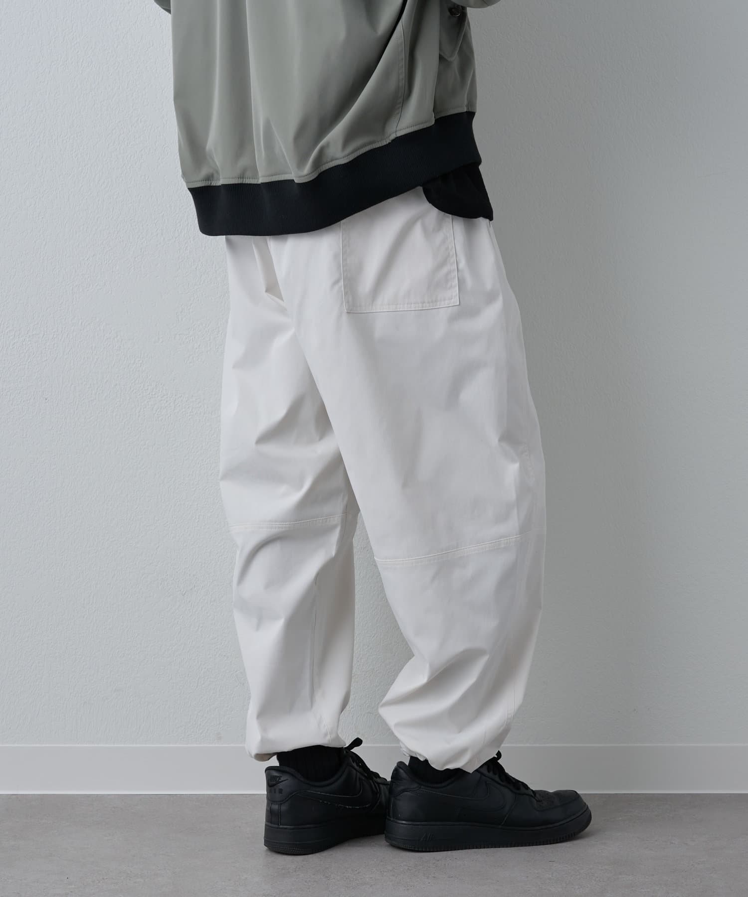 また、裾部分を絞ることで足元が引き締まり、シルエットにメリハリを持たせることができます。