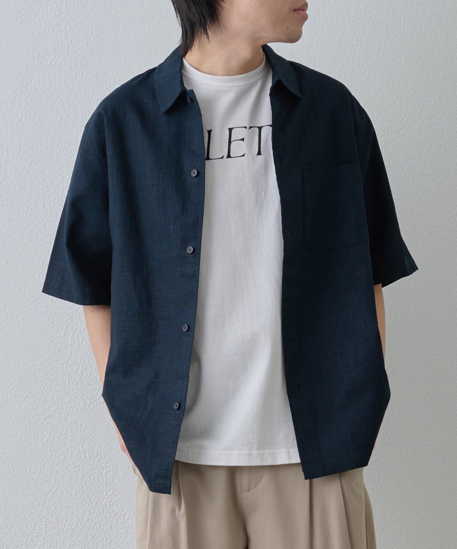 夏には欠かせないリネン素材を使用した軽やかで通気性の良い半袖シャツです。