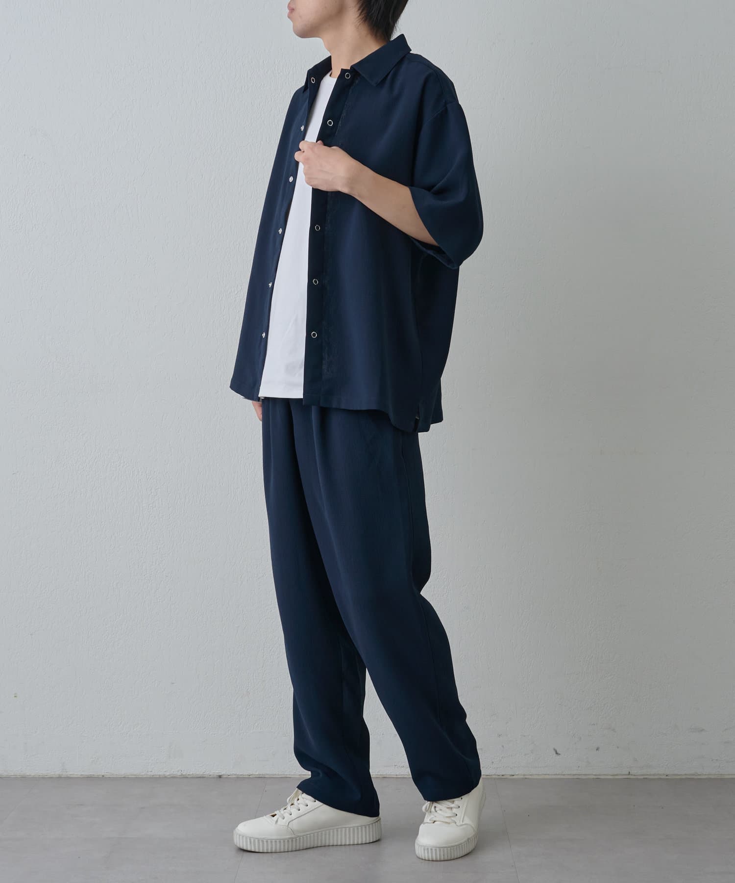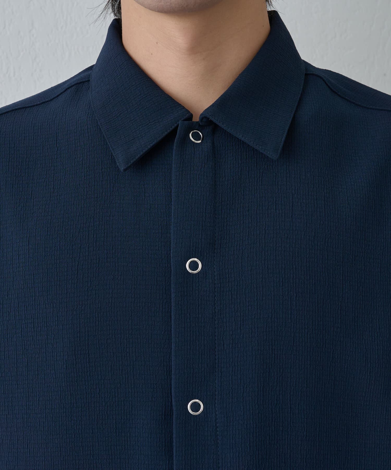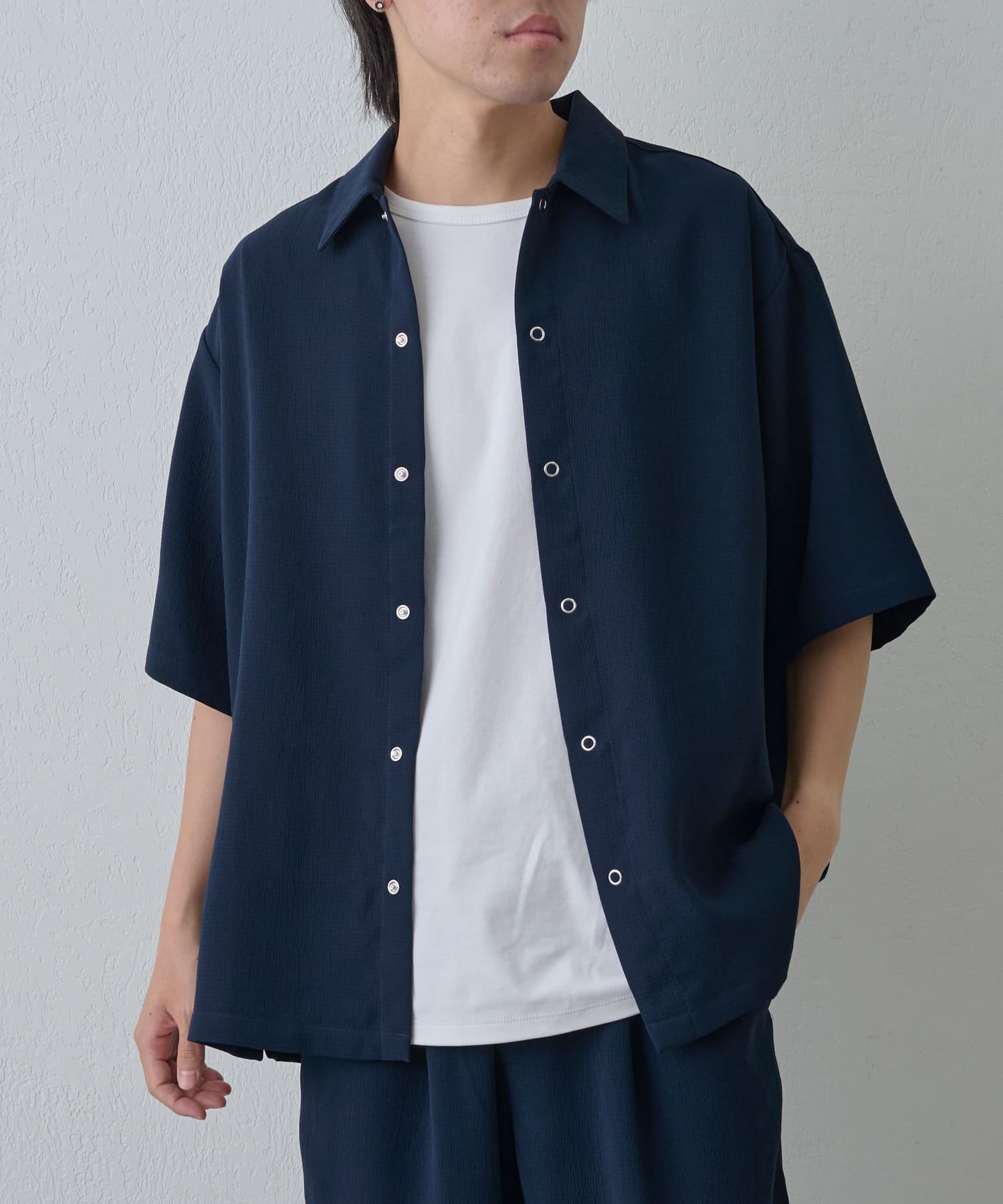 スナップボタンを採用することで、通常のシャツよりもリラックス感が出て着脱もスムーズに行えるようになっております。