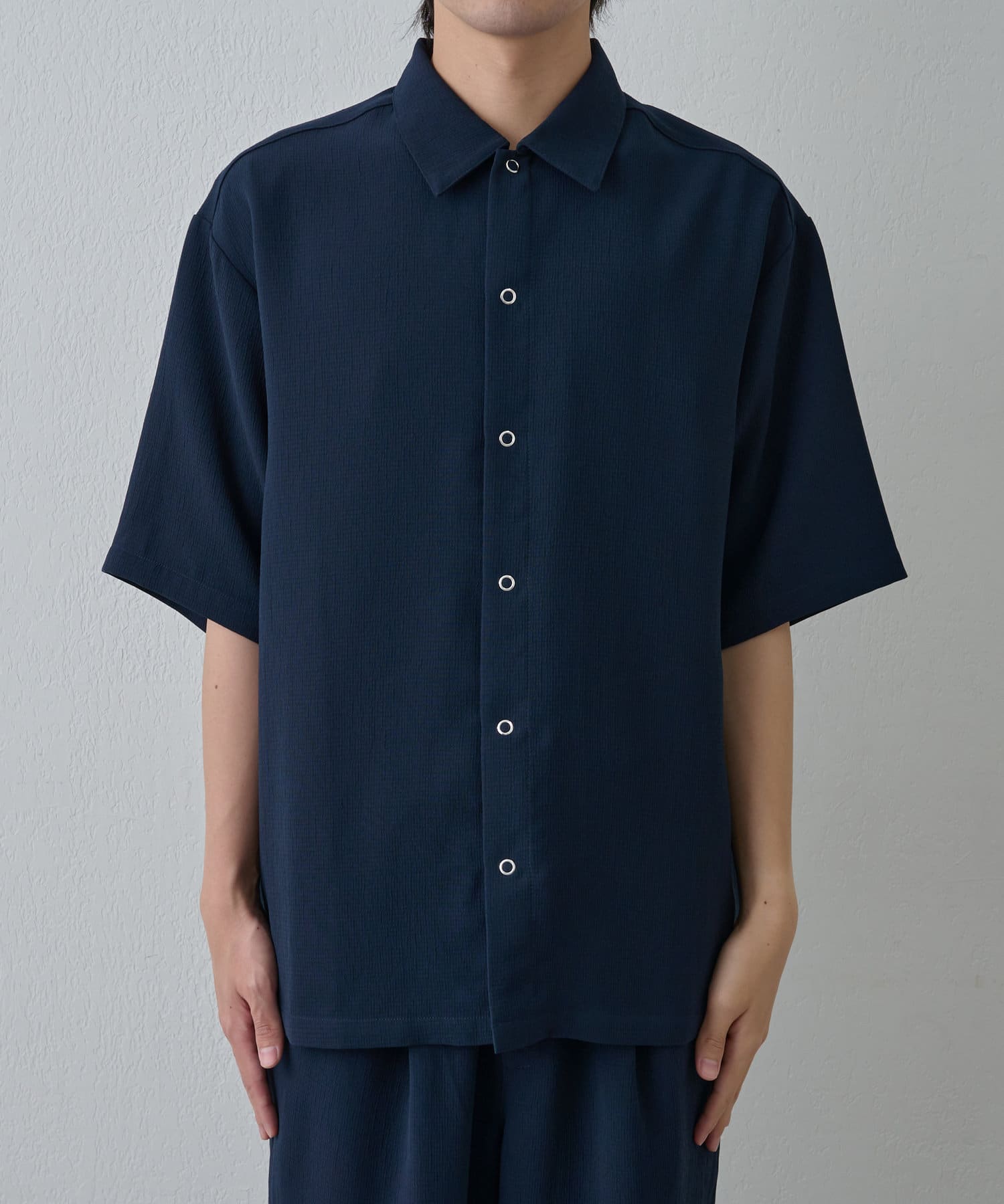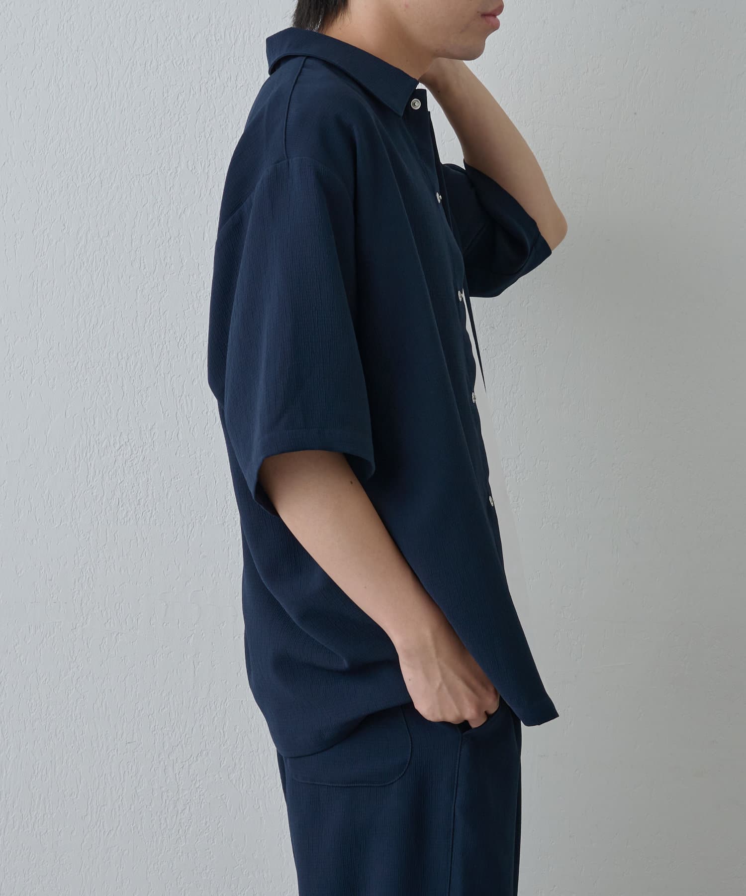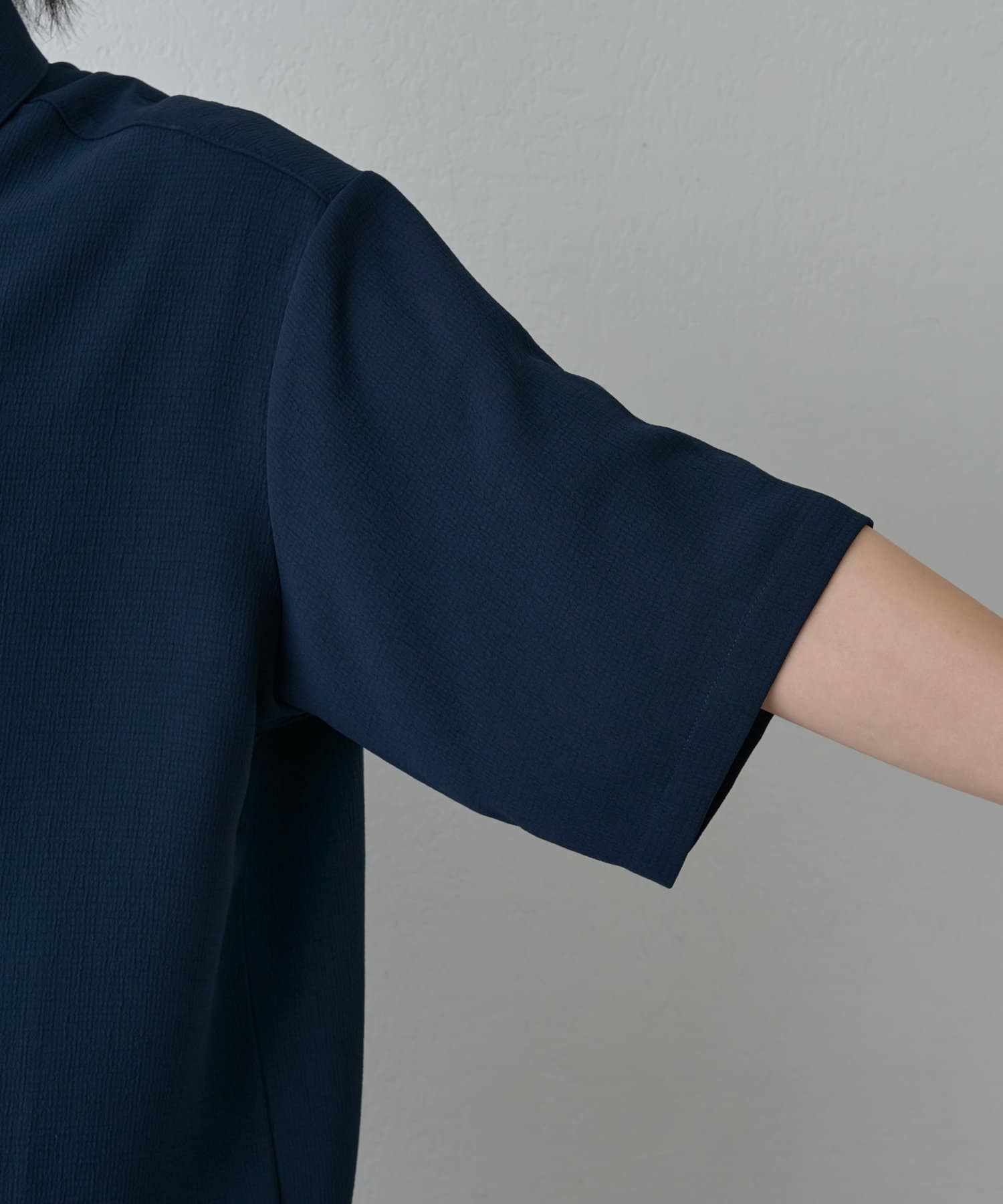 ワッシャー加工が施された生地を使用した半袖シャツです。
