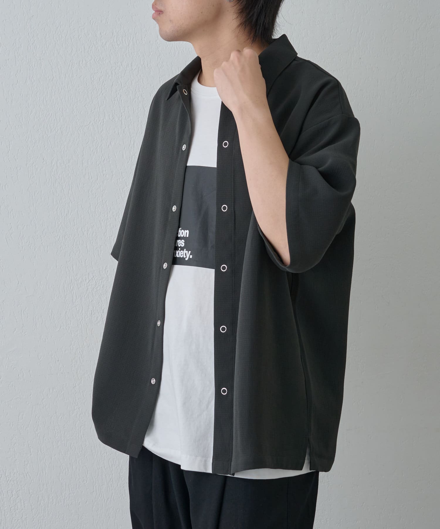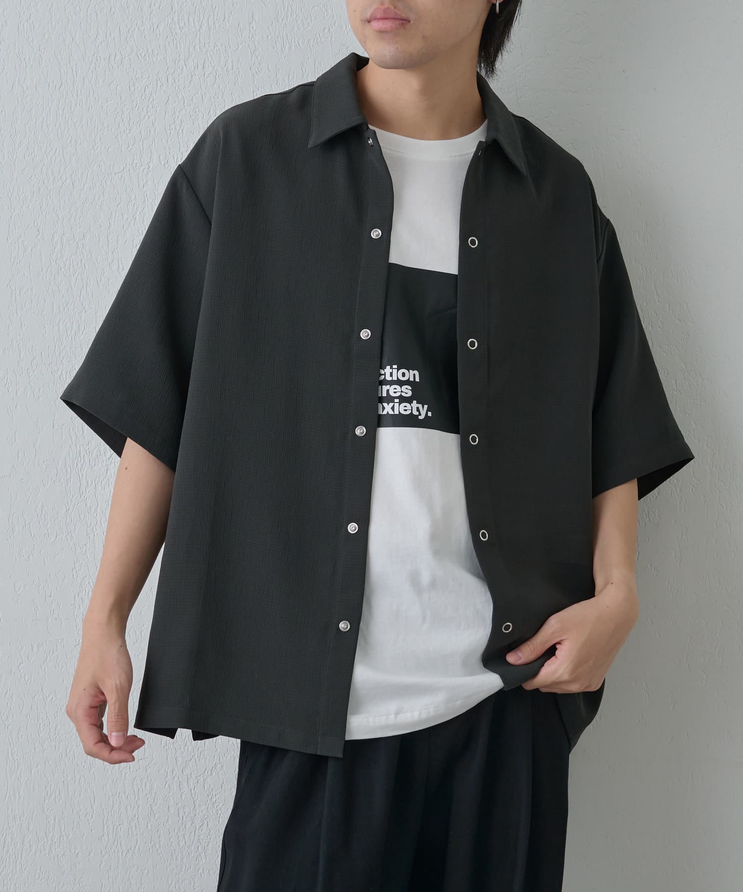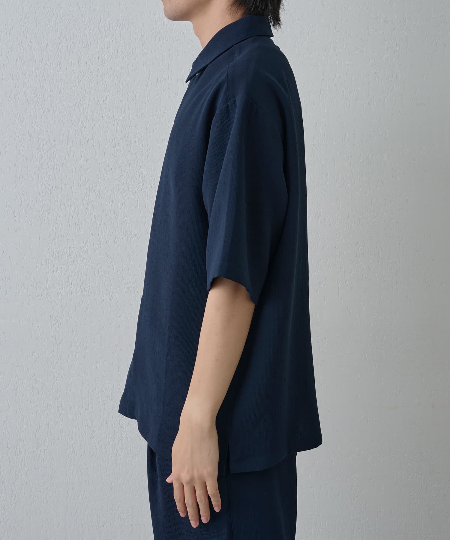 ワッシャー加工が施された生地を使用した半袖シャツです。