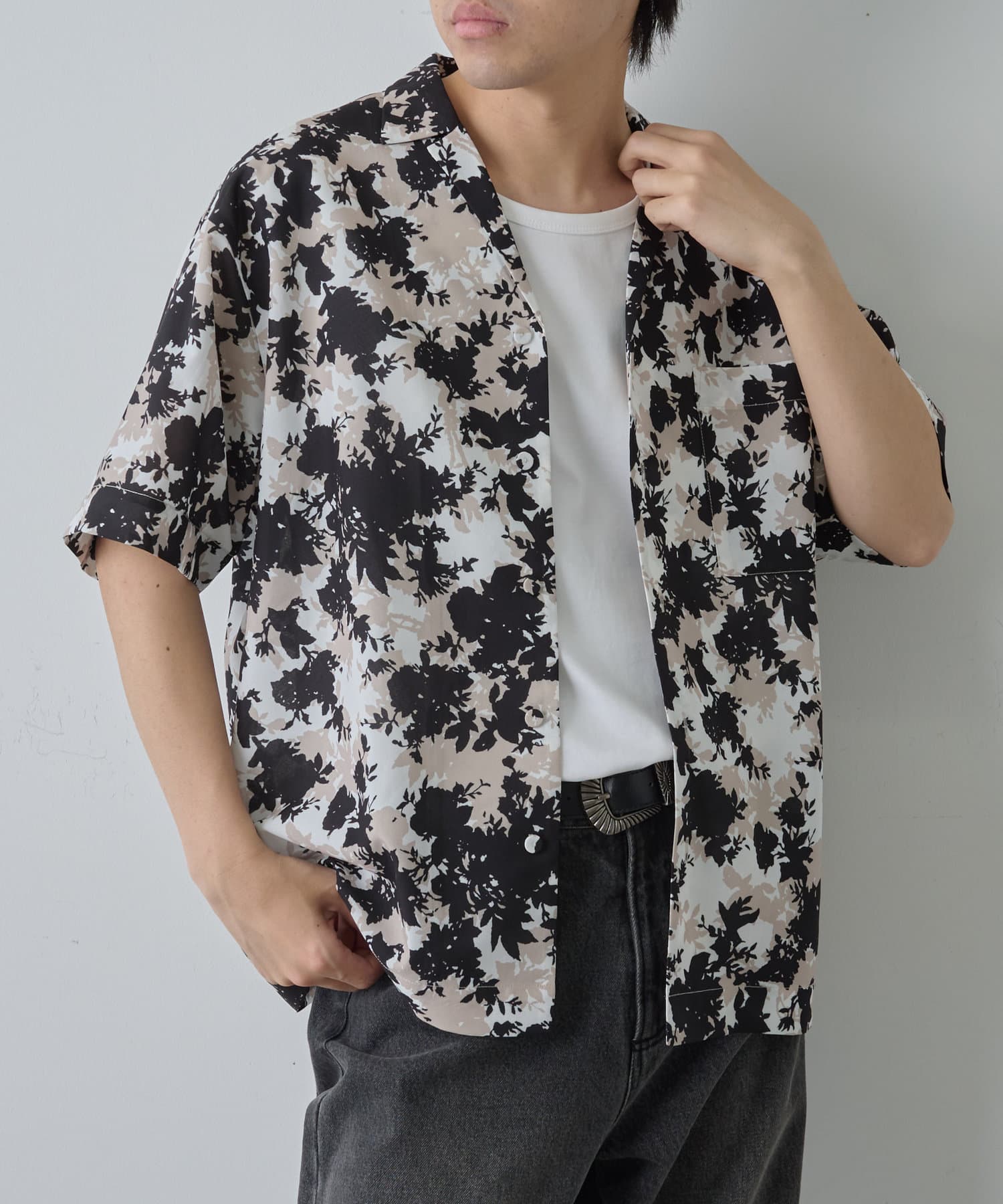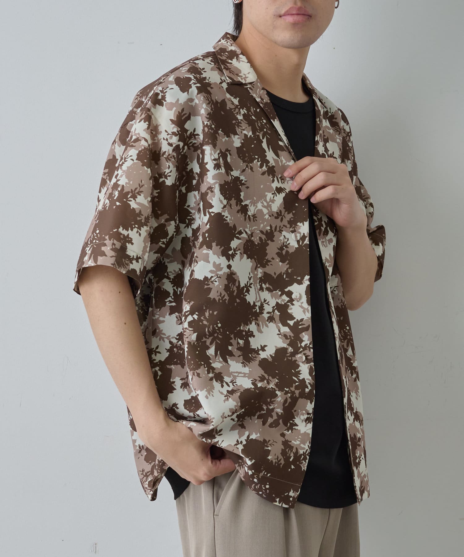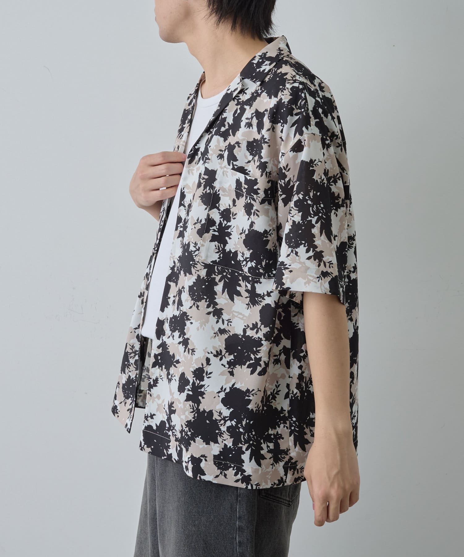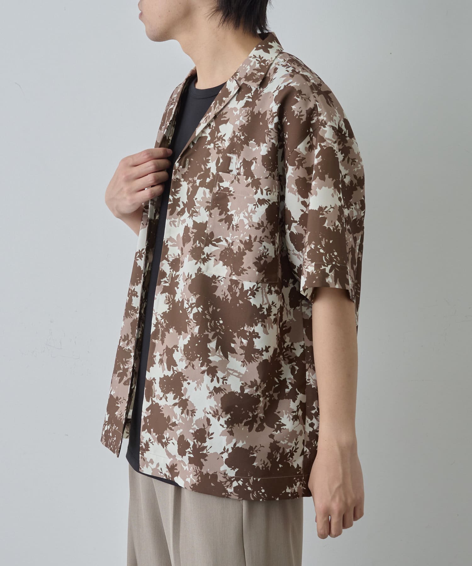【リゾート感のある大人なボタニカル柄が魅力のオープンカラーシャツ】