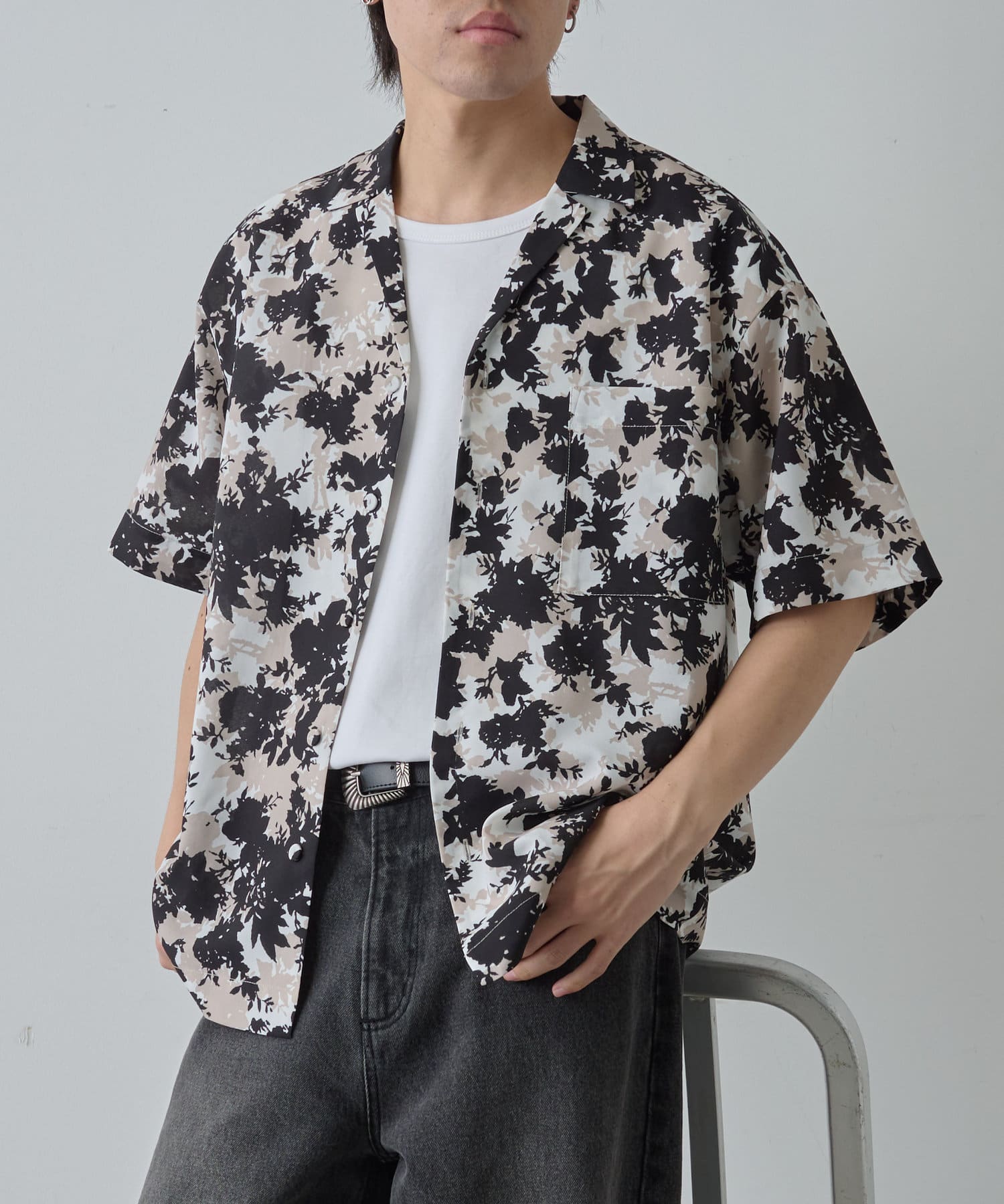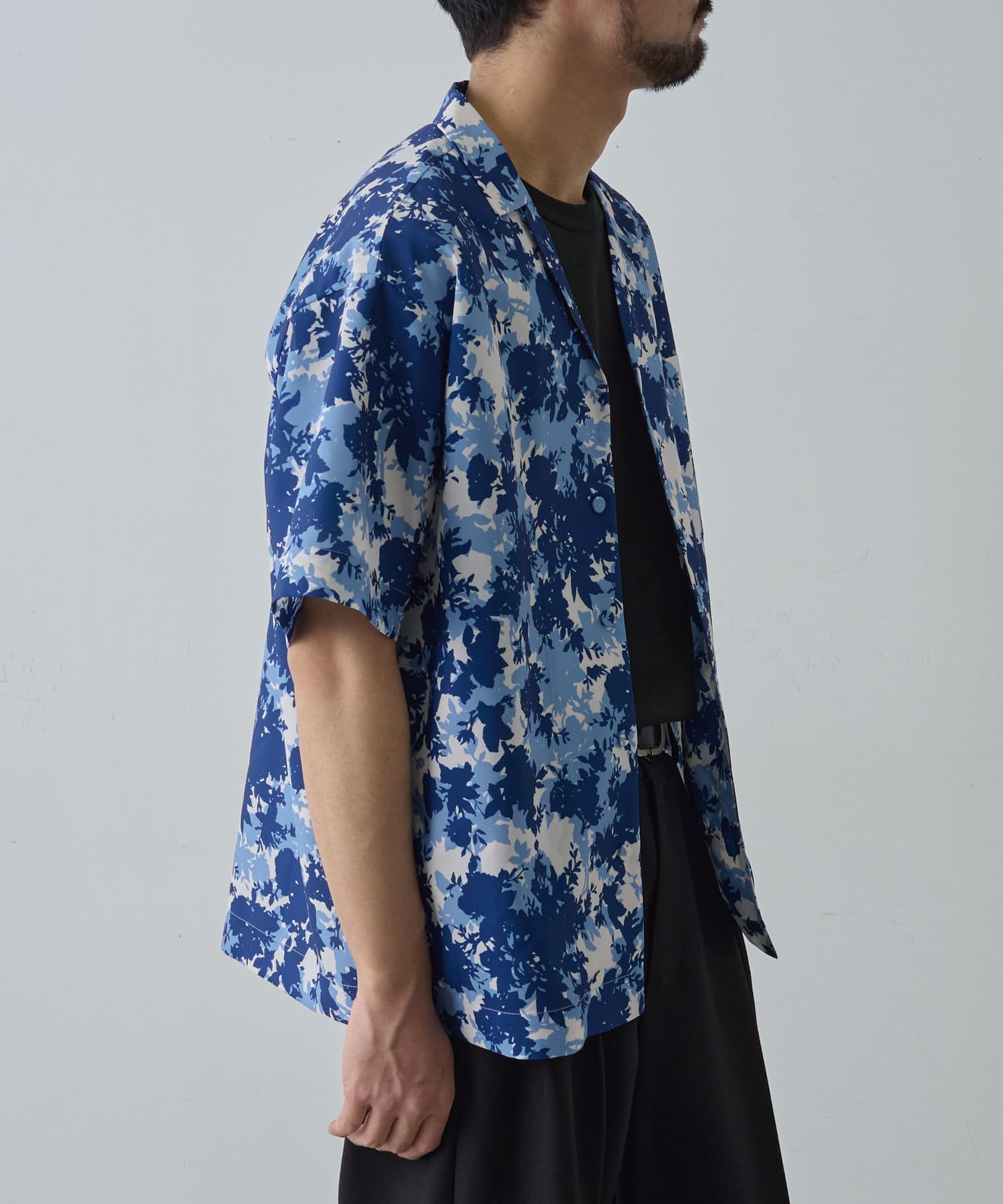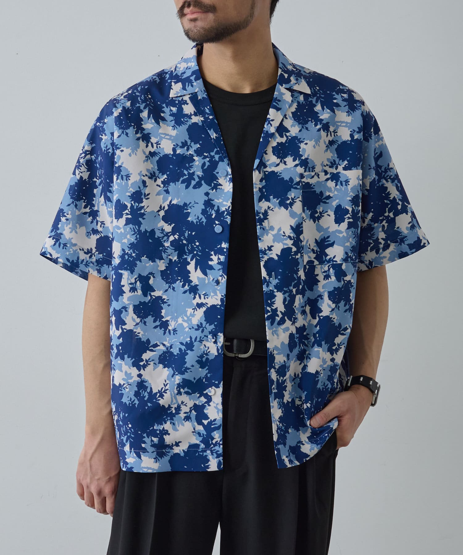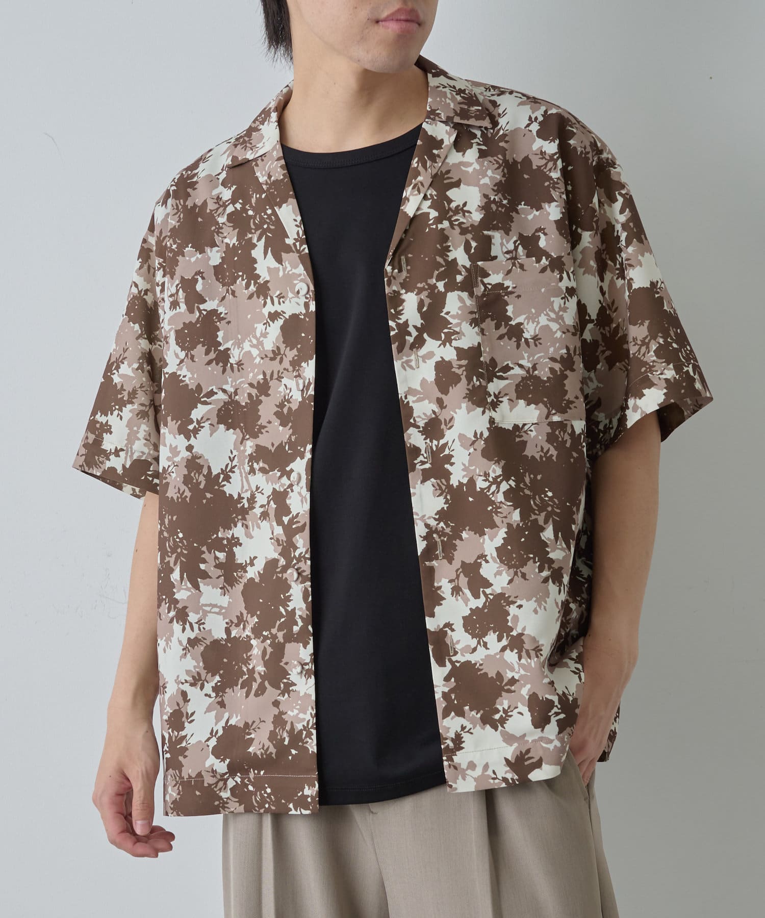 【リゾート感のある大人なボタニカル柄が魅力のオープンカラーシャツ】
