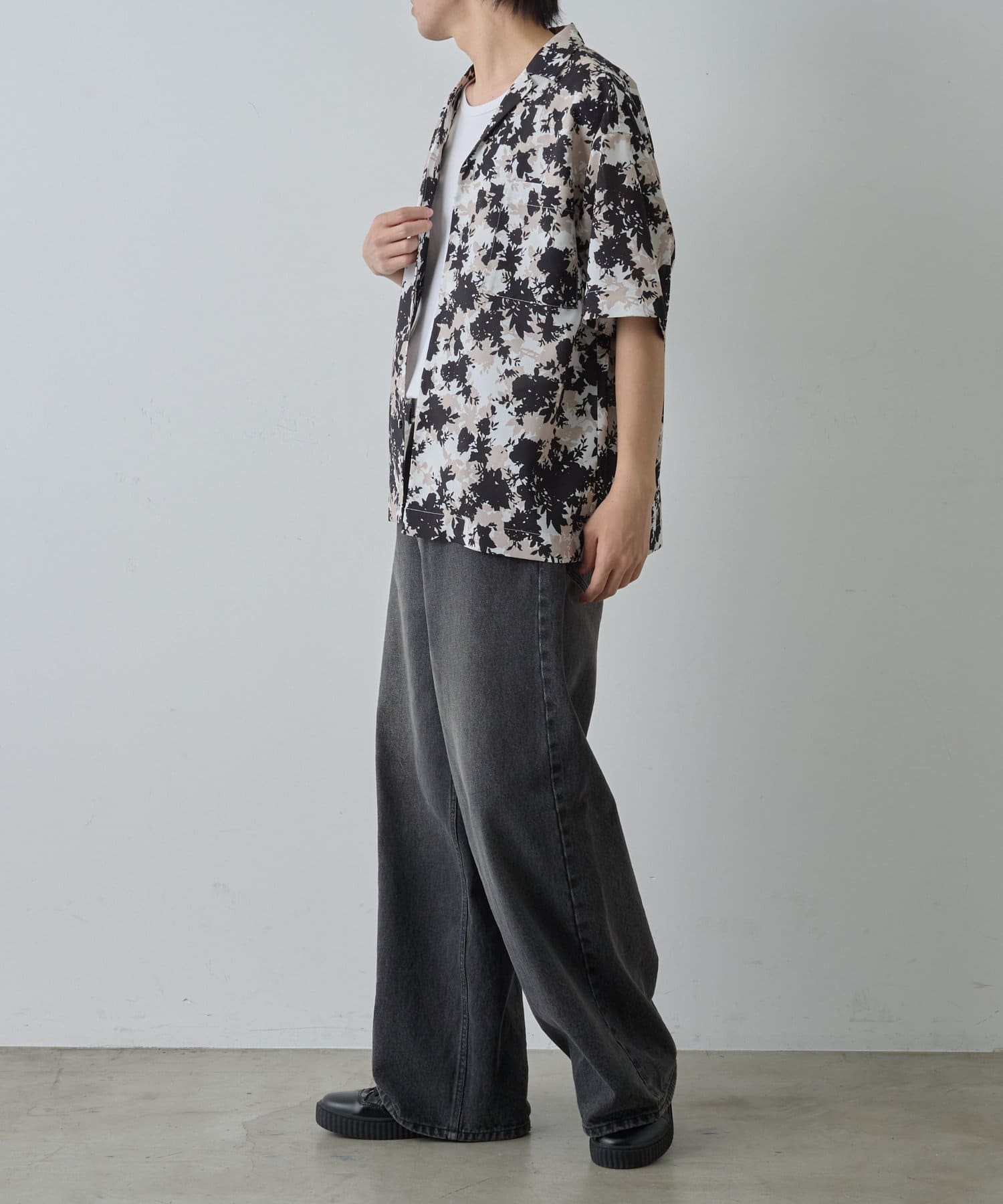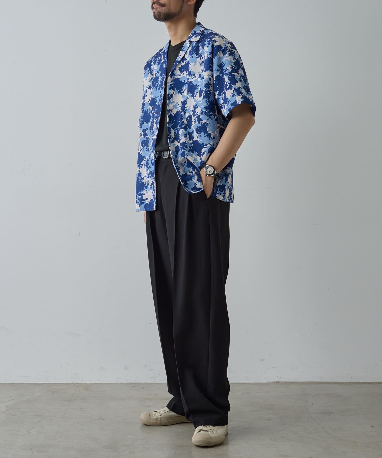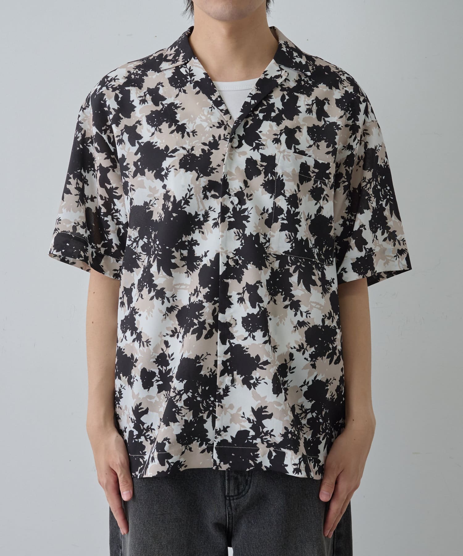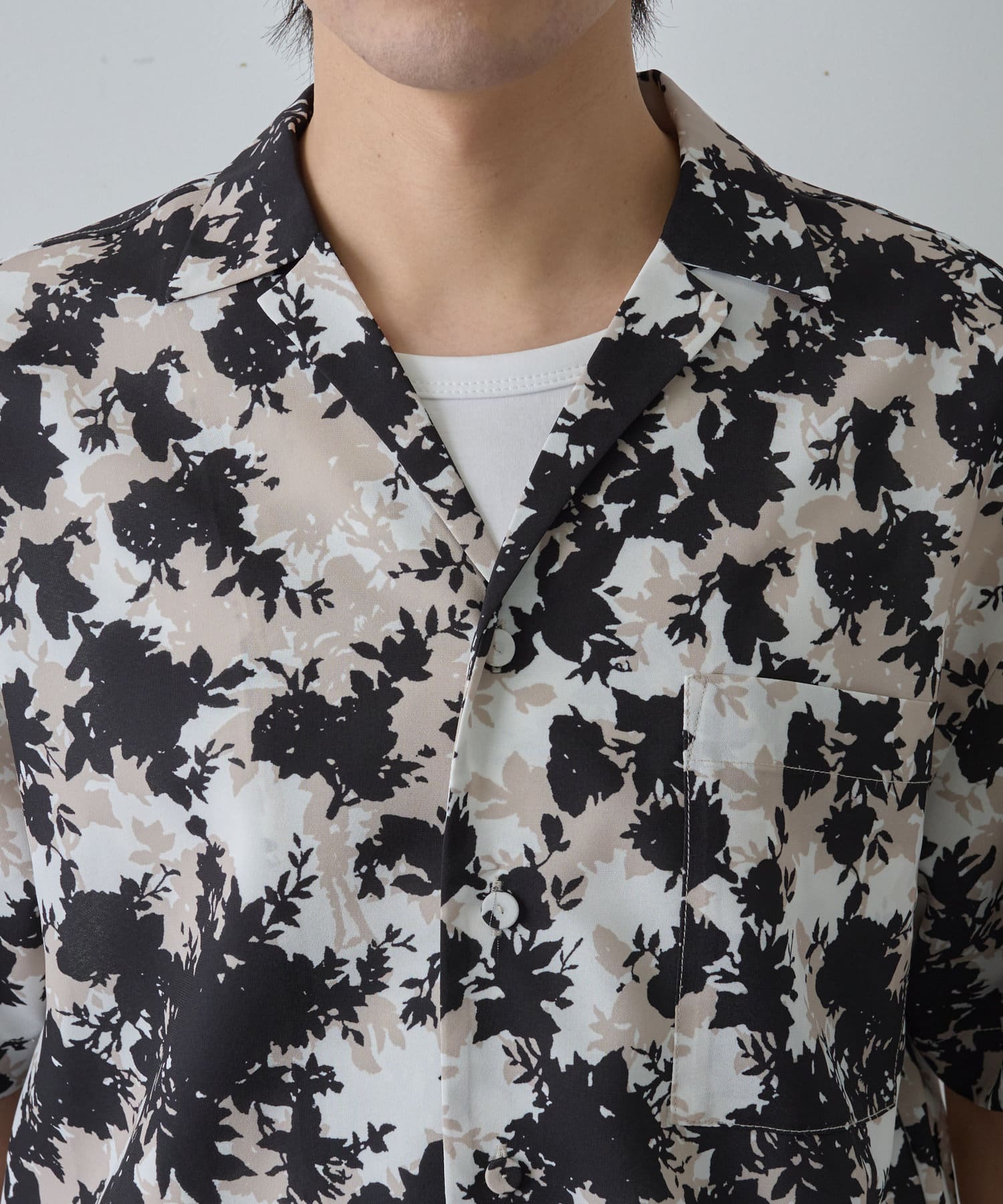 【リゾート感のある大人なボタニカル柄が魅力のオープンカラーシャツ】