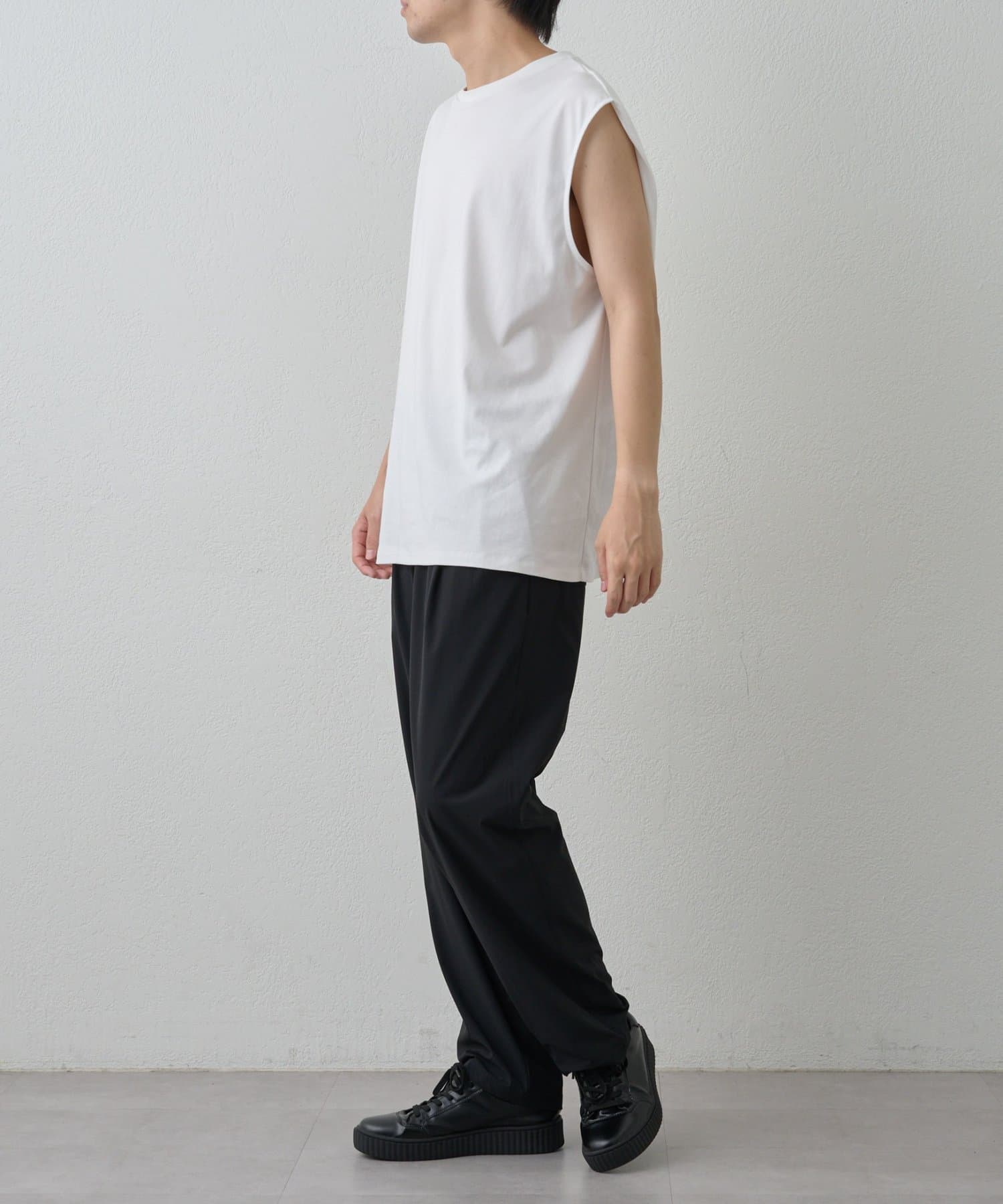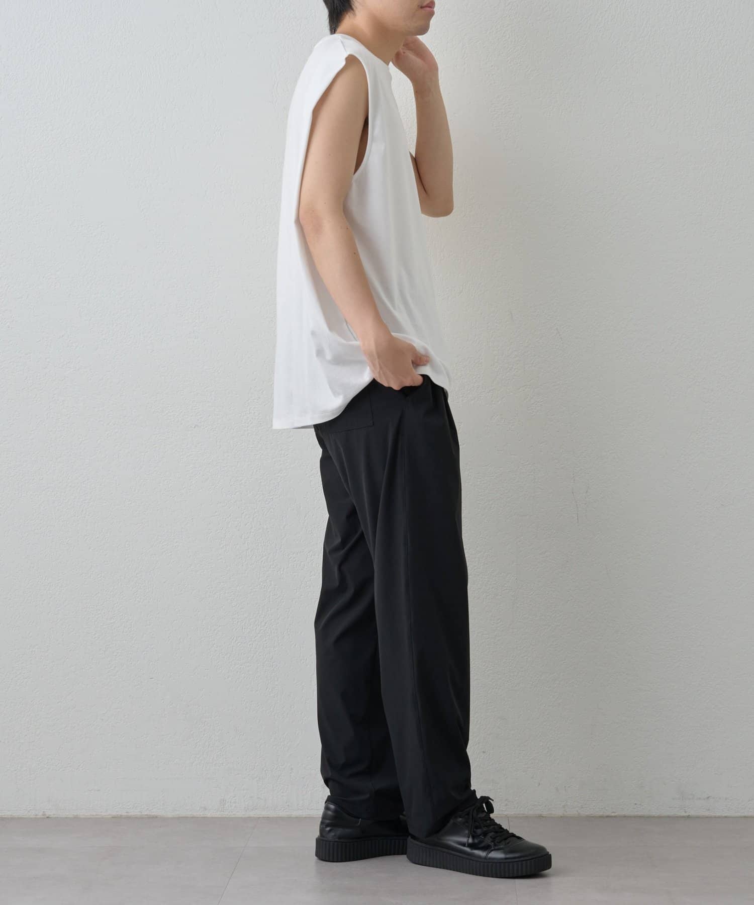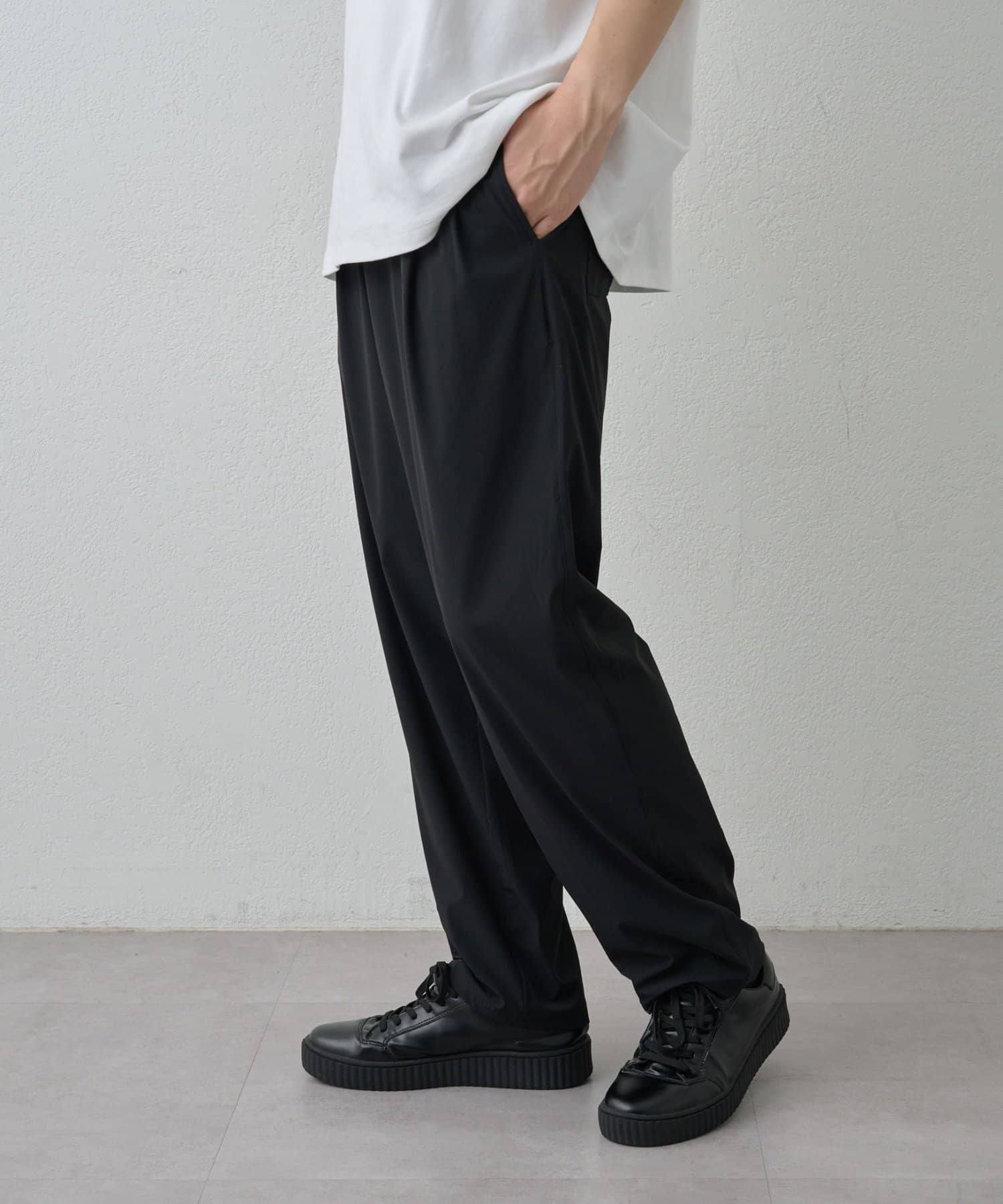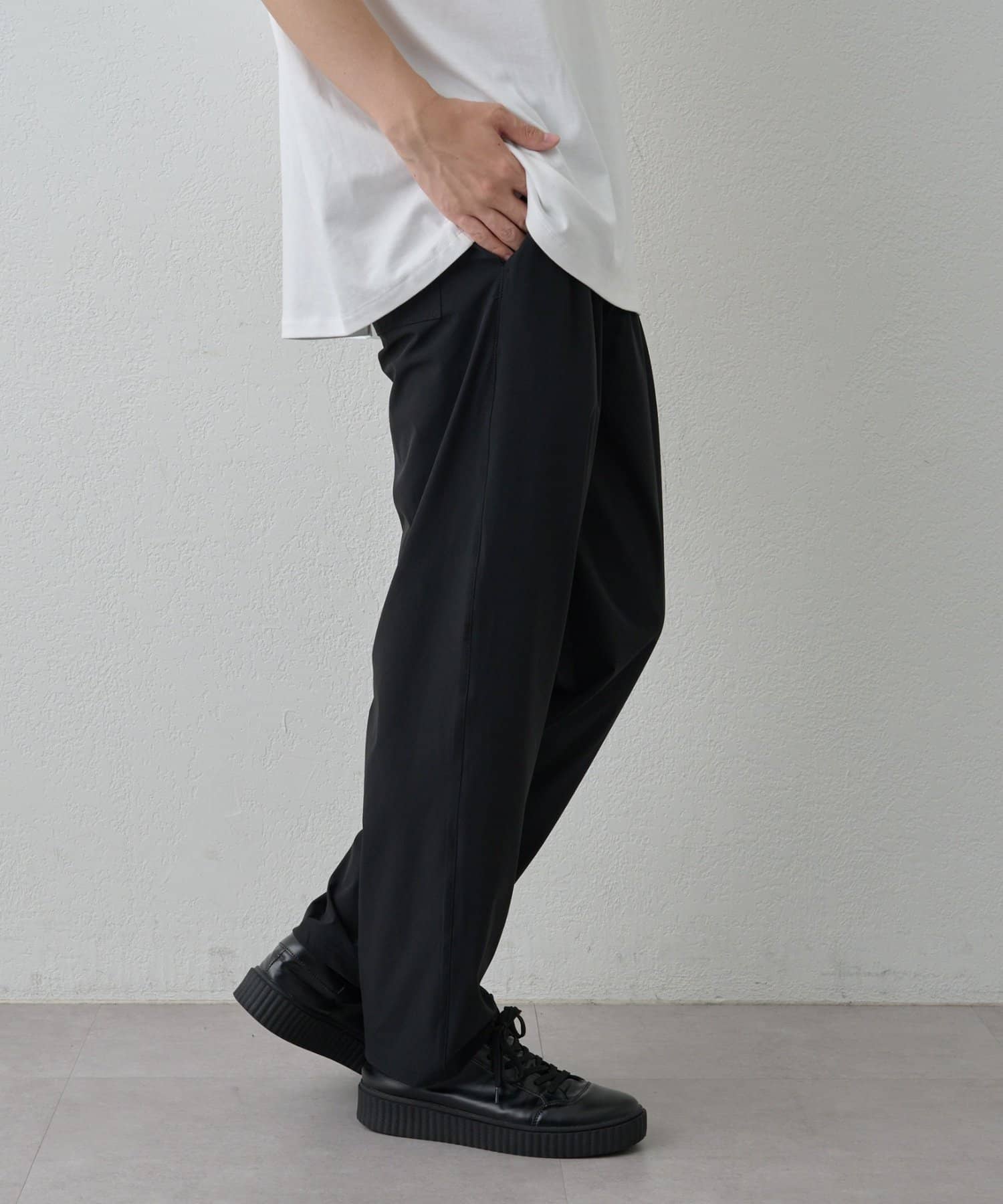 汗ばむ季節でも快適に着こなせる、機能性とデザイン性を兼ね備えたイージーパンツです。