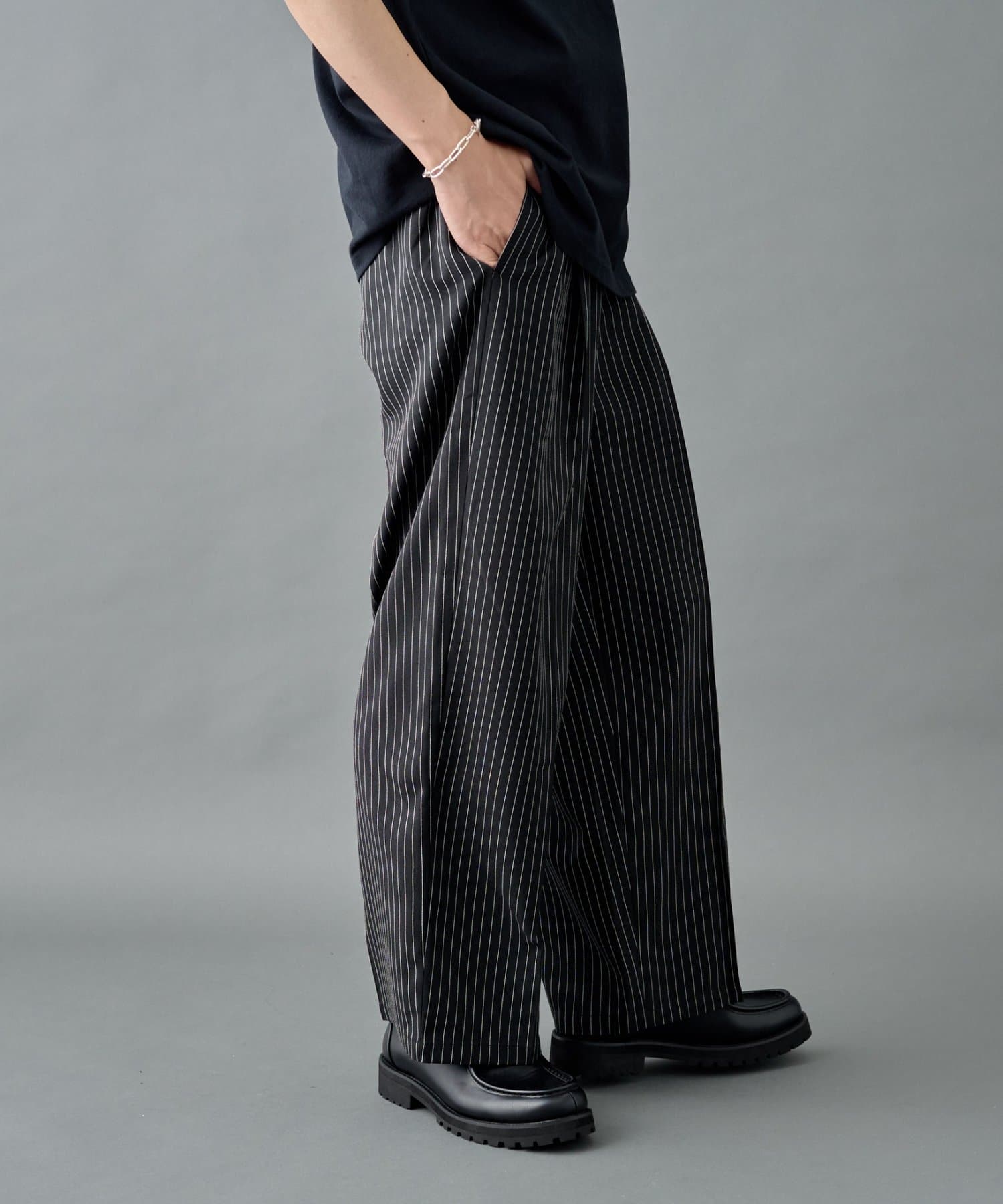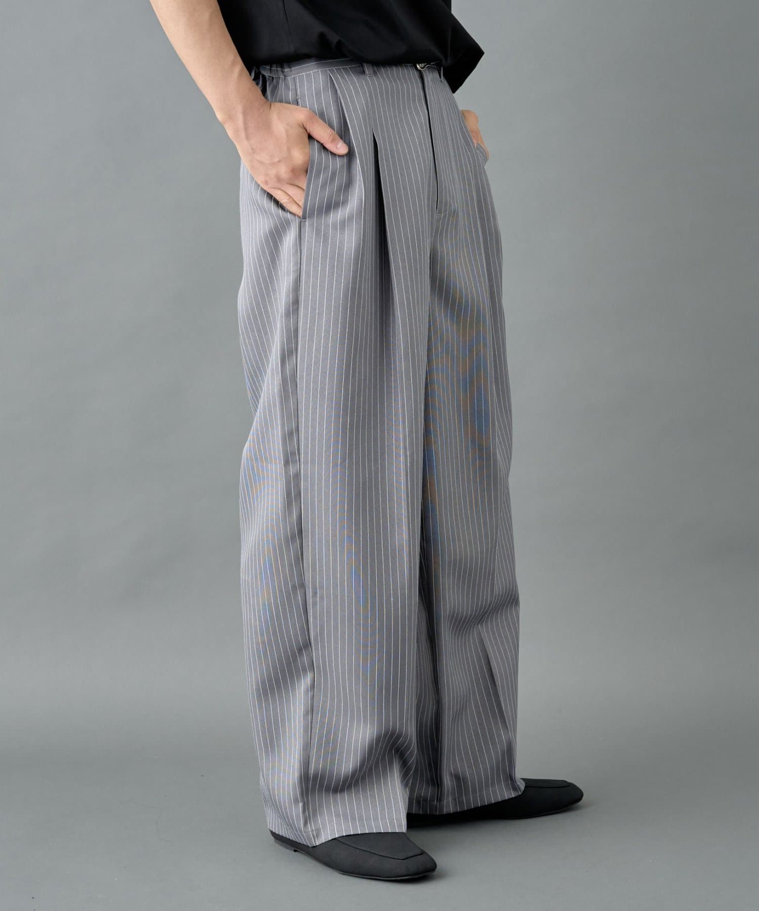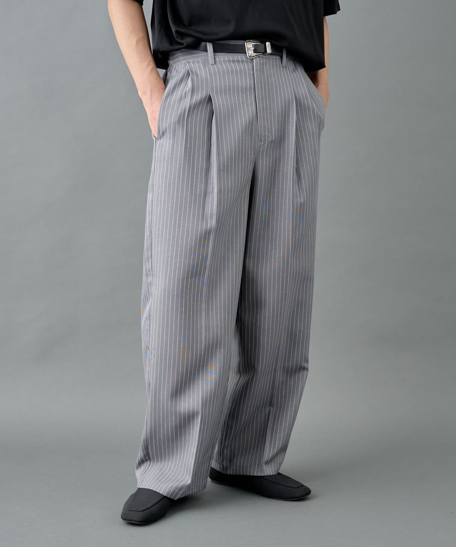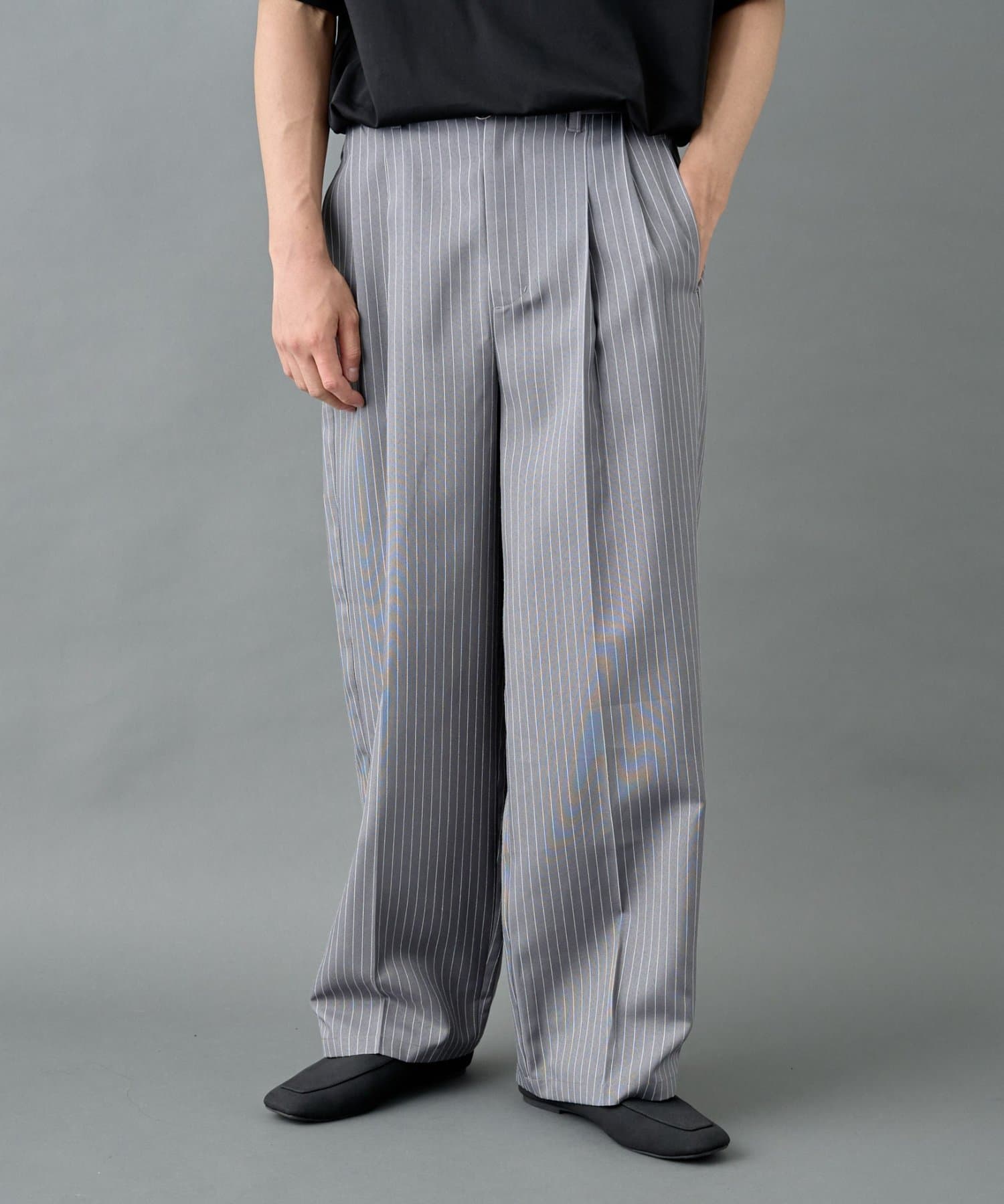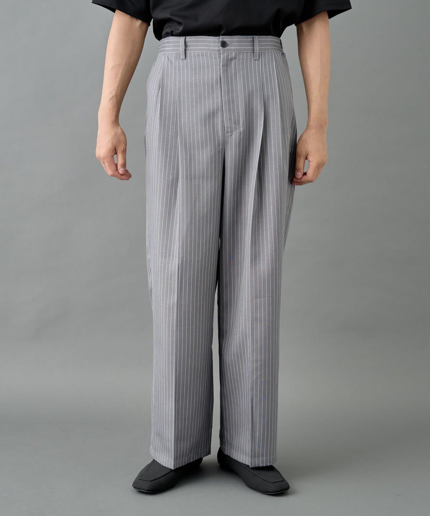 ピンストライプ2タックワイドパンツ