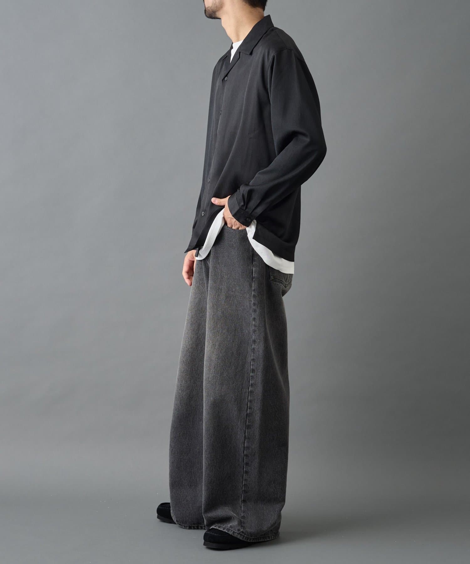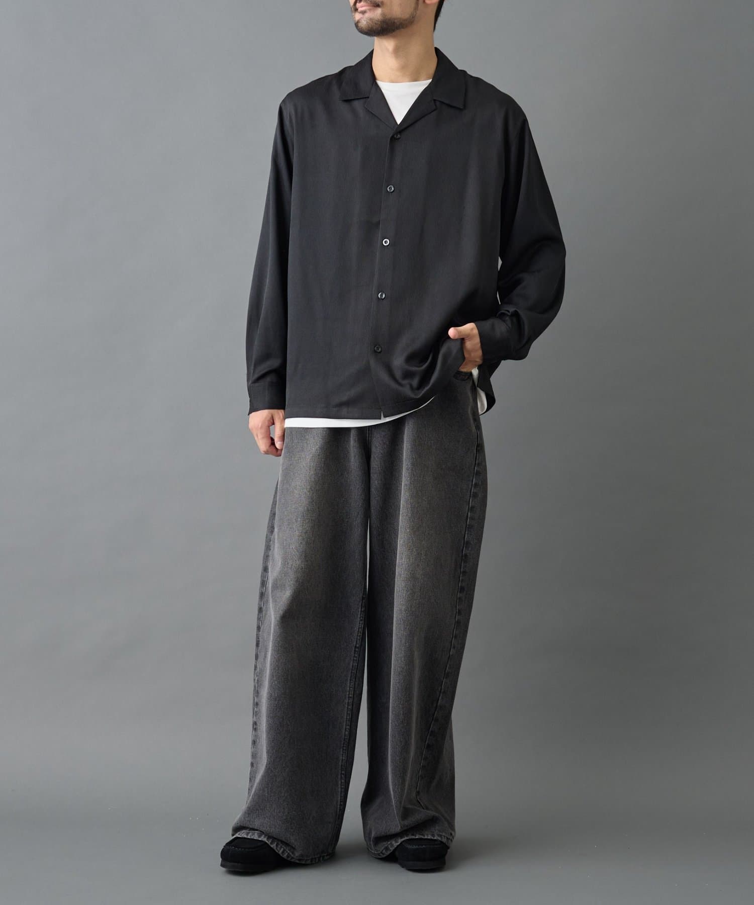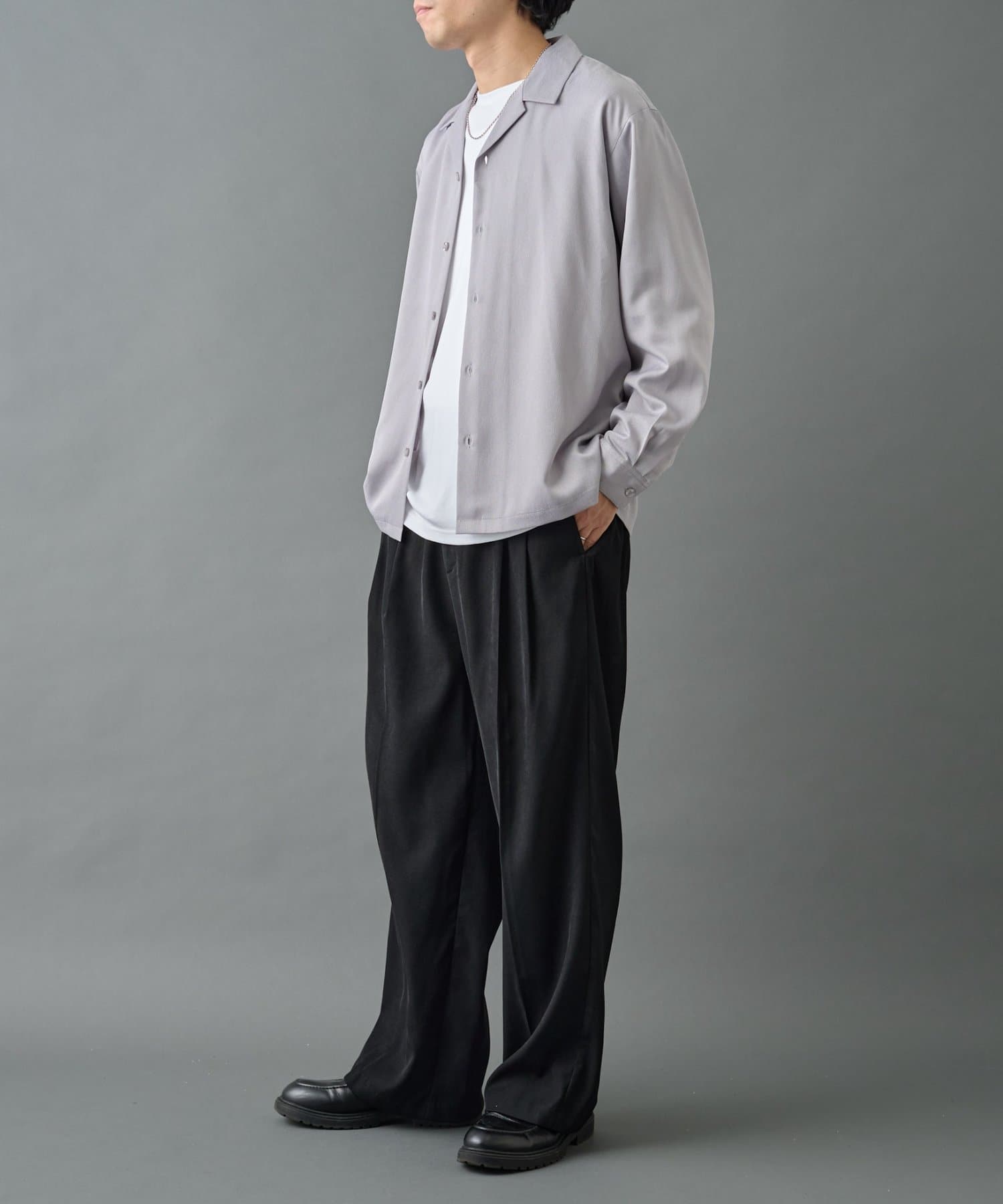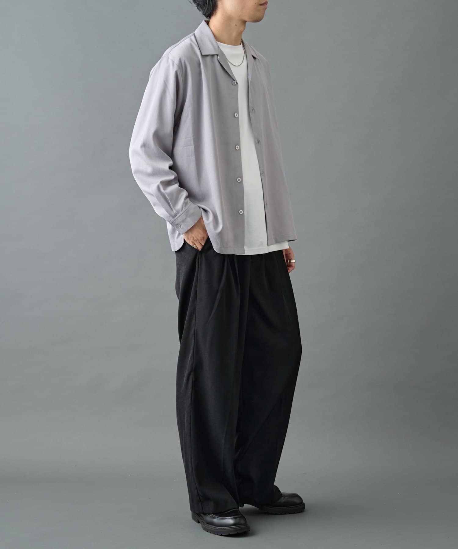 【さらっと涼し気な印象のリラクシーなオープンカラーシャツ】