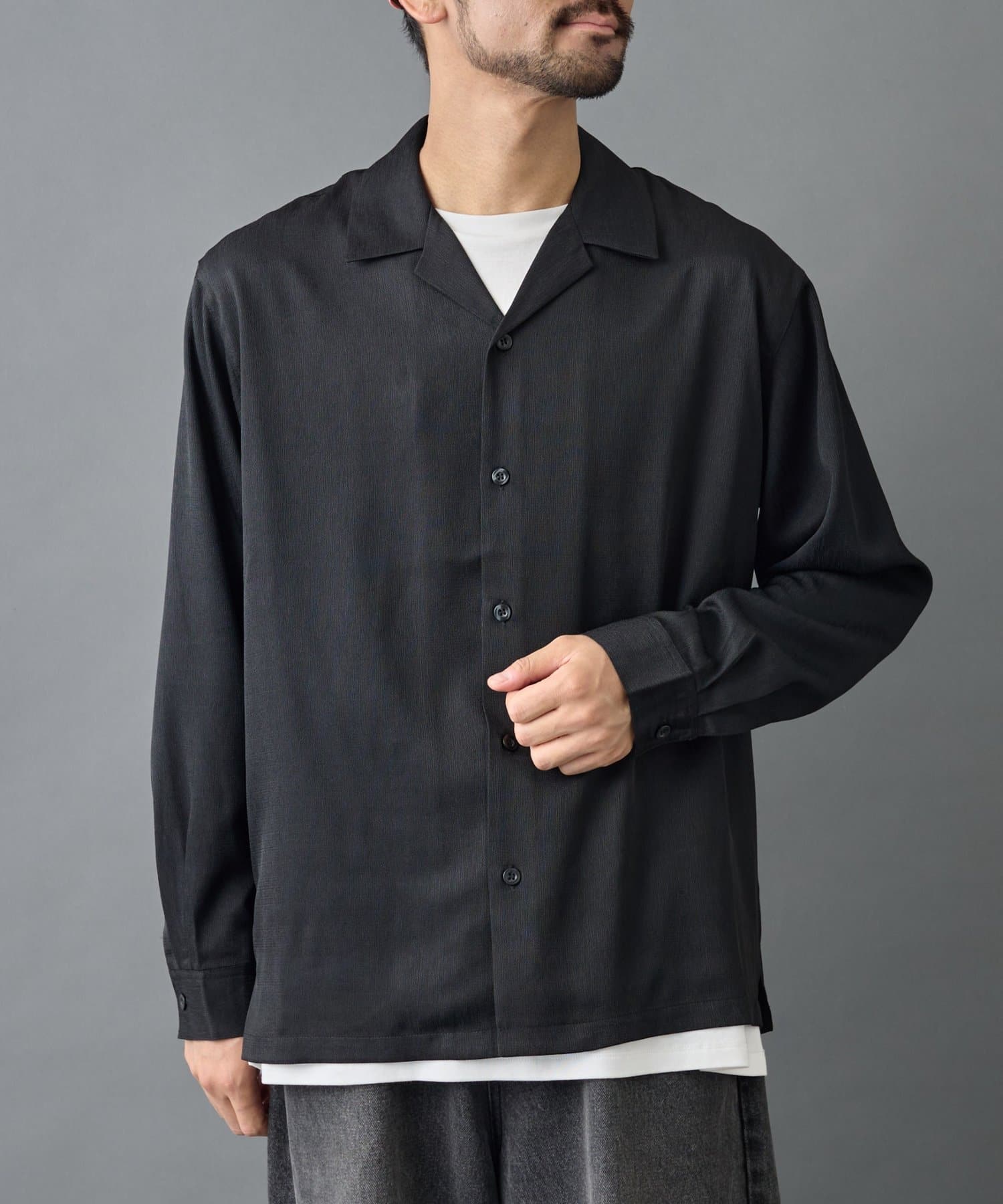 表情感豊かな楊柳の生地が、大人のこなれ感を演出する長袖の開襟シャツが登場。