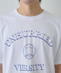「UNIVERSITY」の文字と紋章ロゴを組み合わせたカレッジ風デザインは、あなたの個性をさりげなくアピール。
