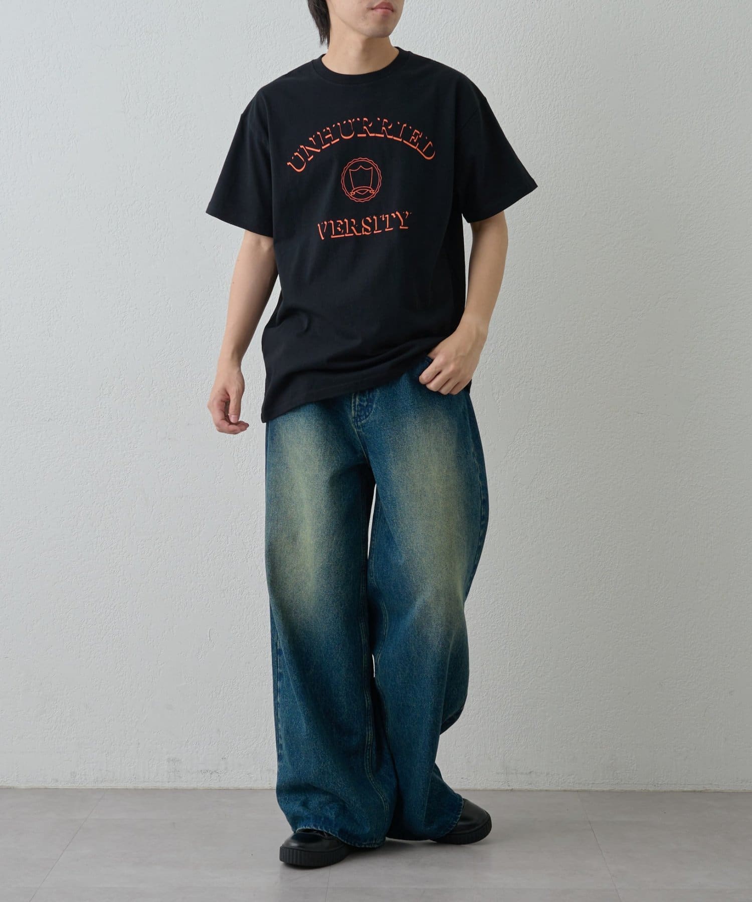 シンプルなカレッジプリントなのでどんなスタイルにも合わせやすく、着回し力も抜群です。
