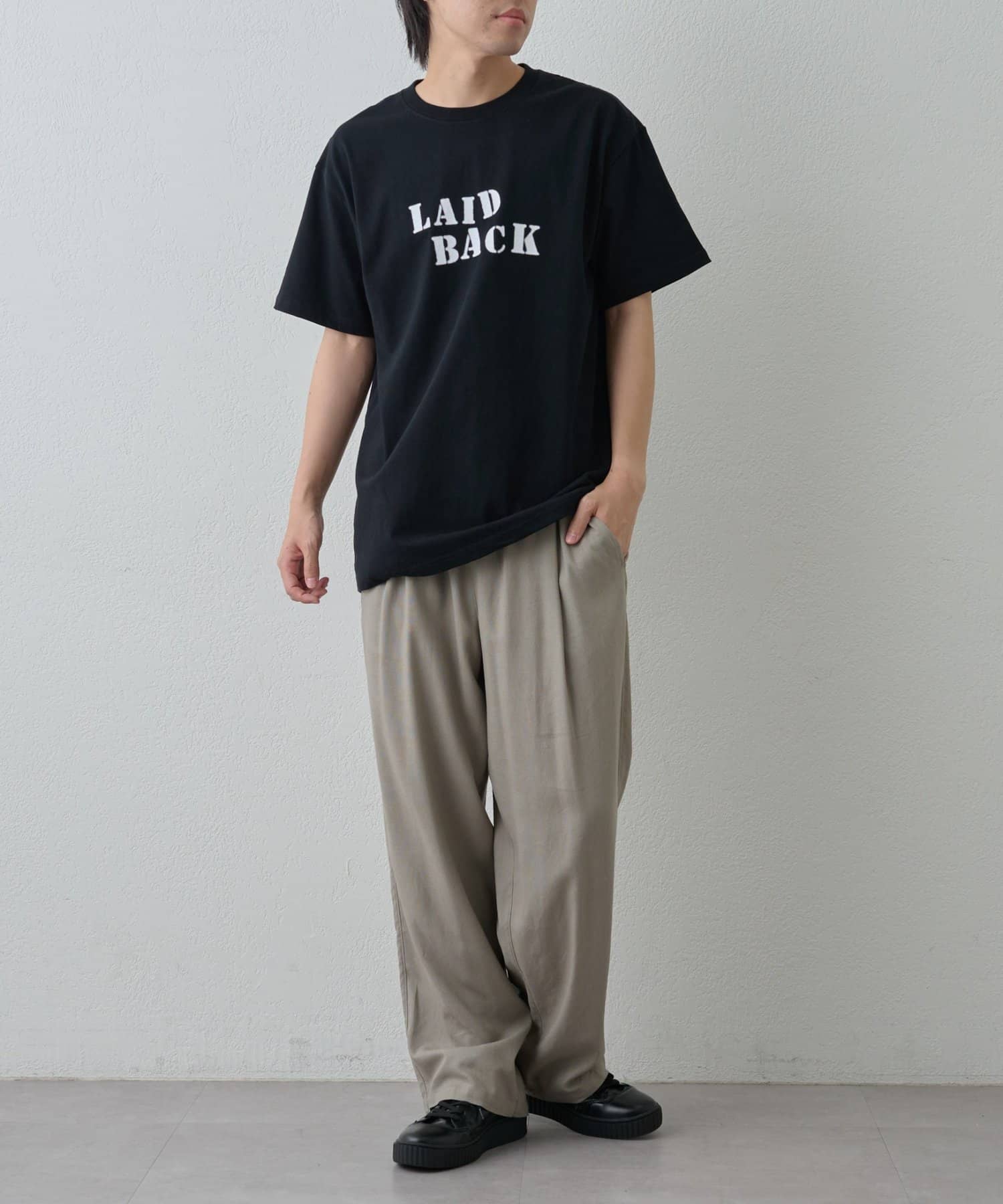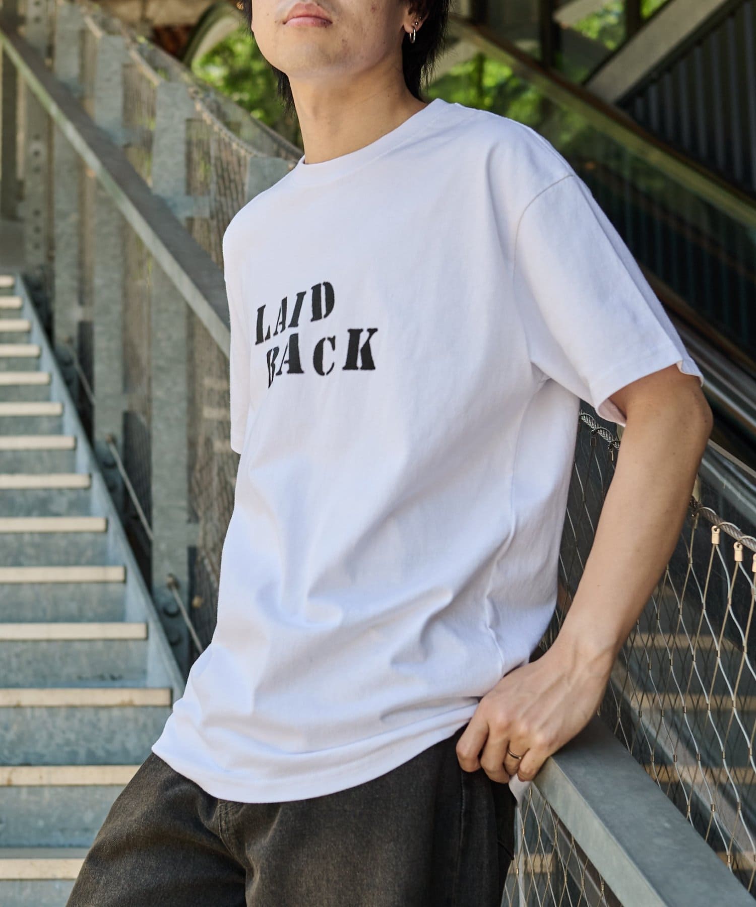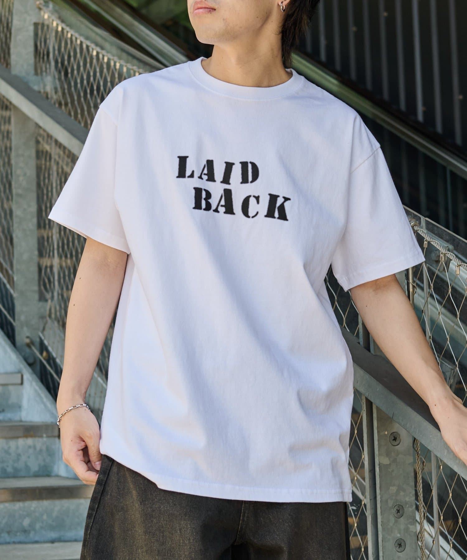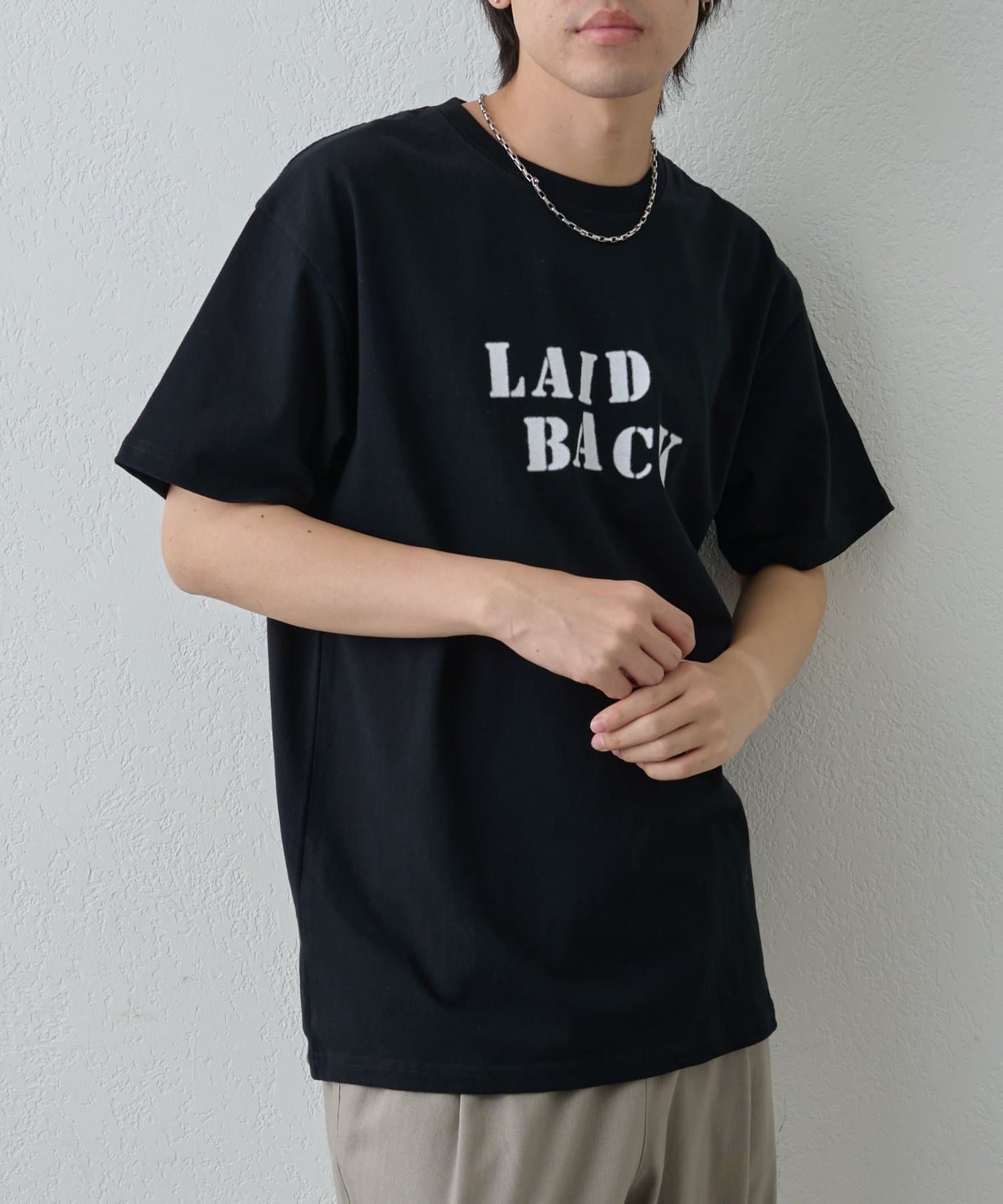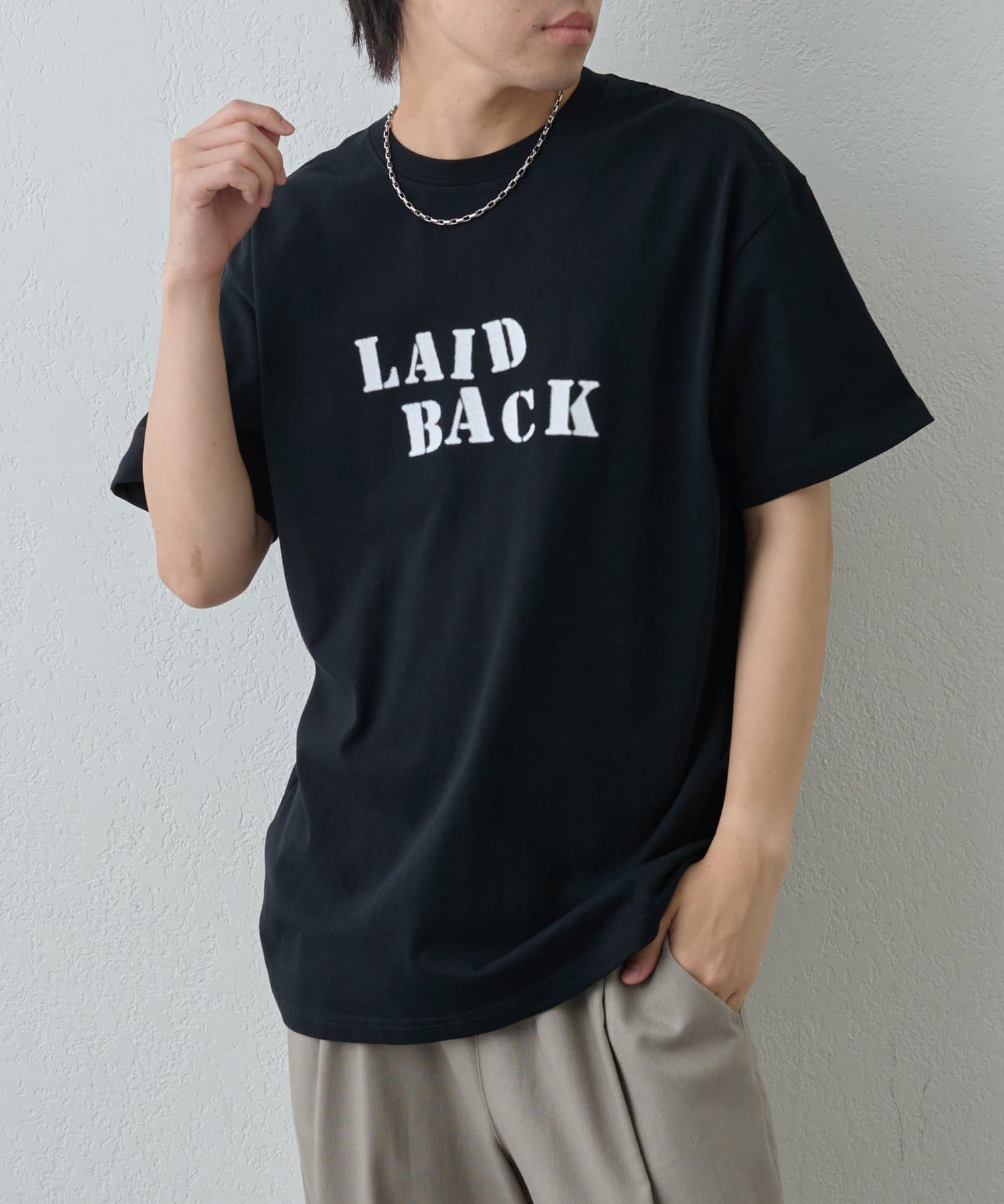 「LAID BACK」の文字はカスレた風合いにすることでヴィンテージのようなこなれ感をプラス。