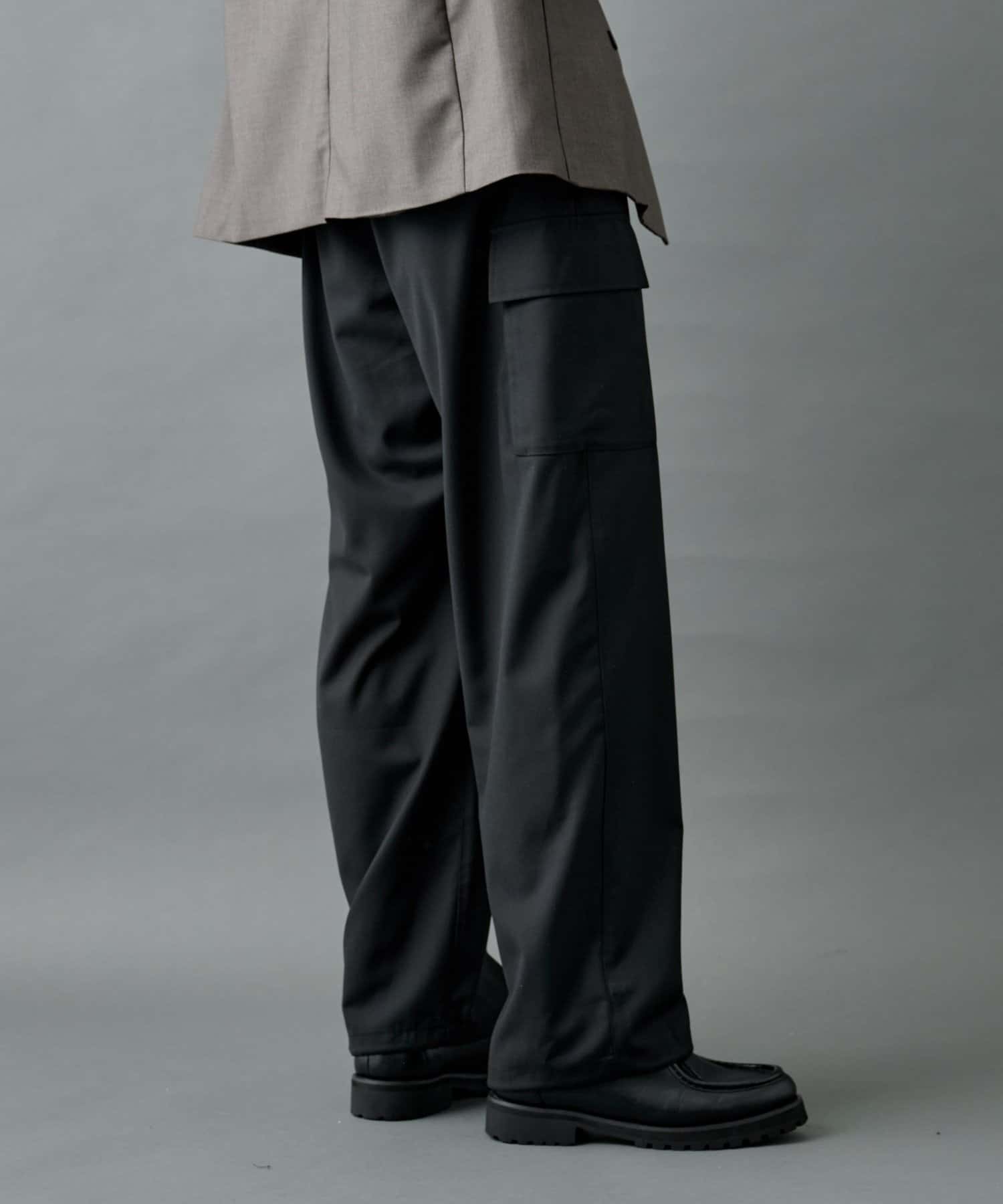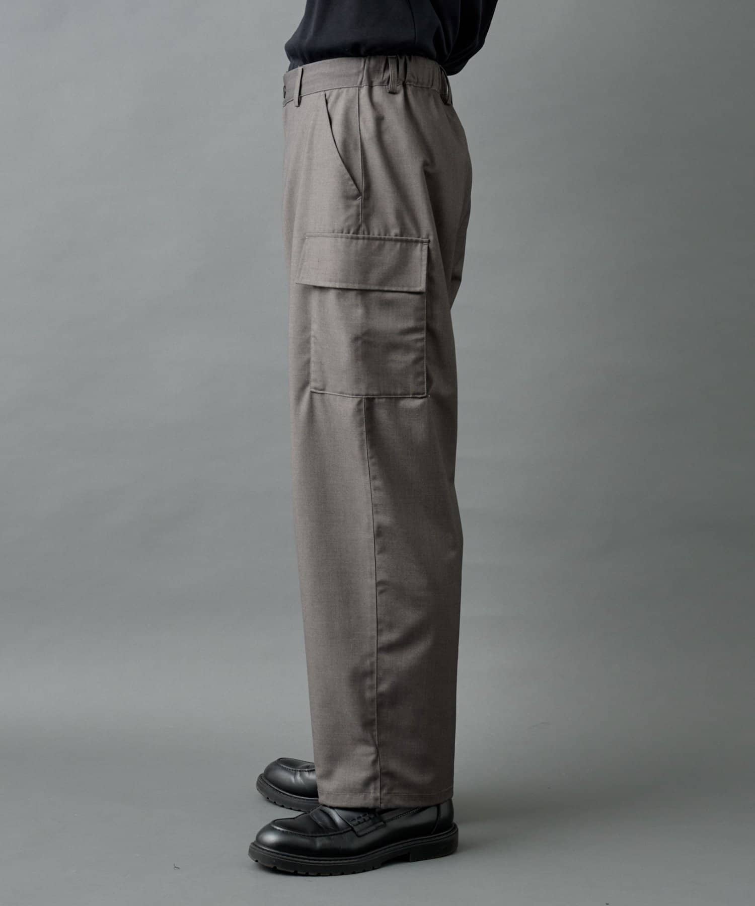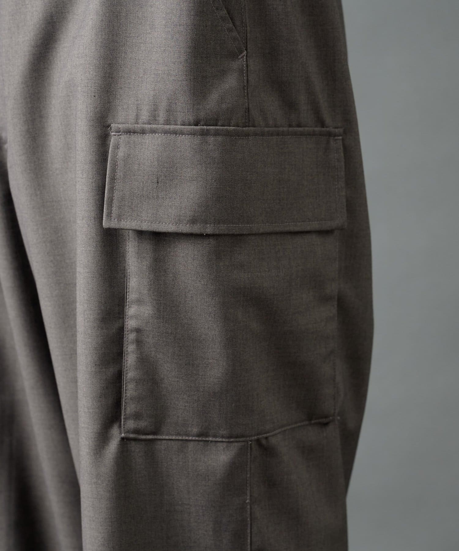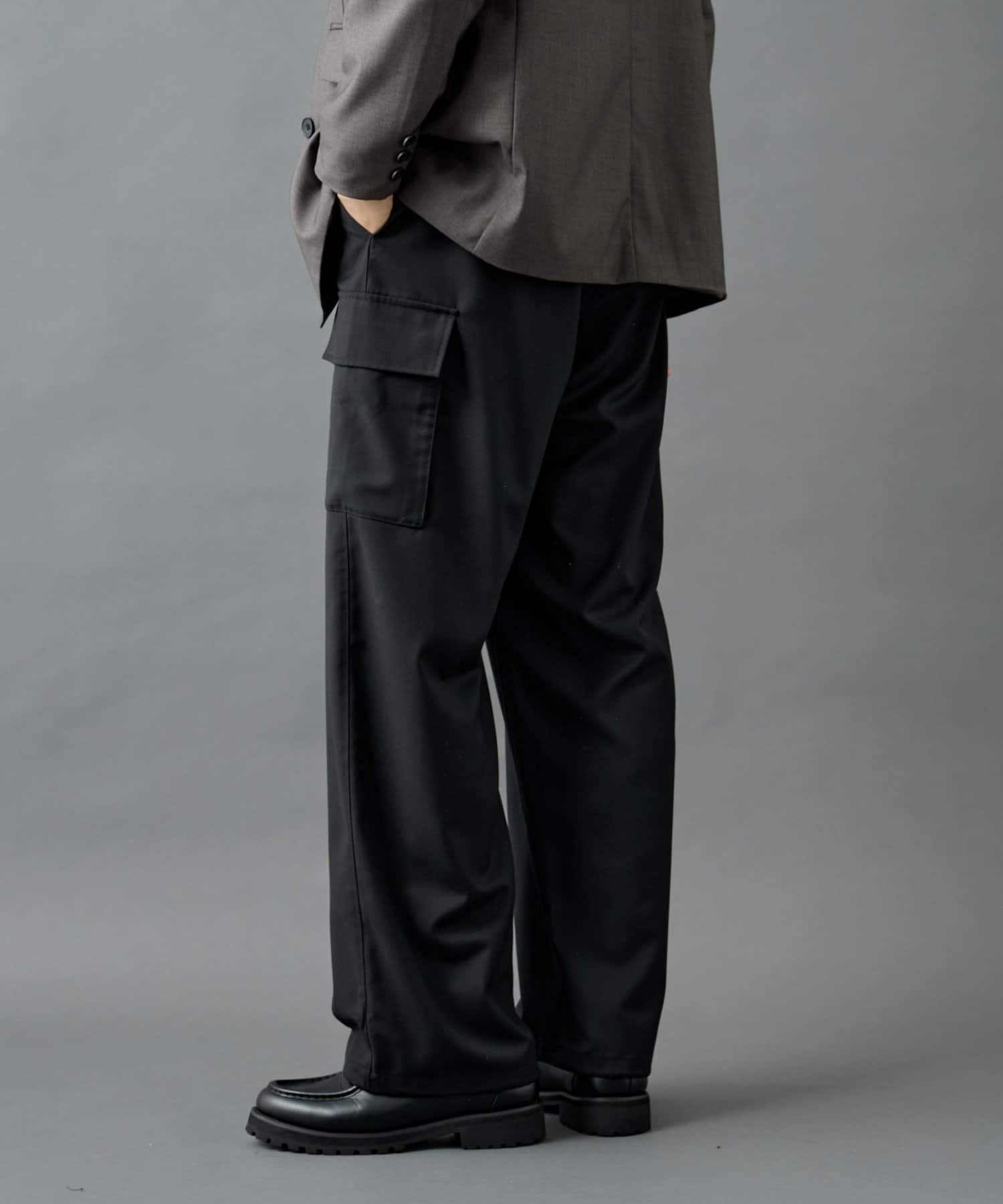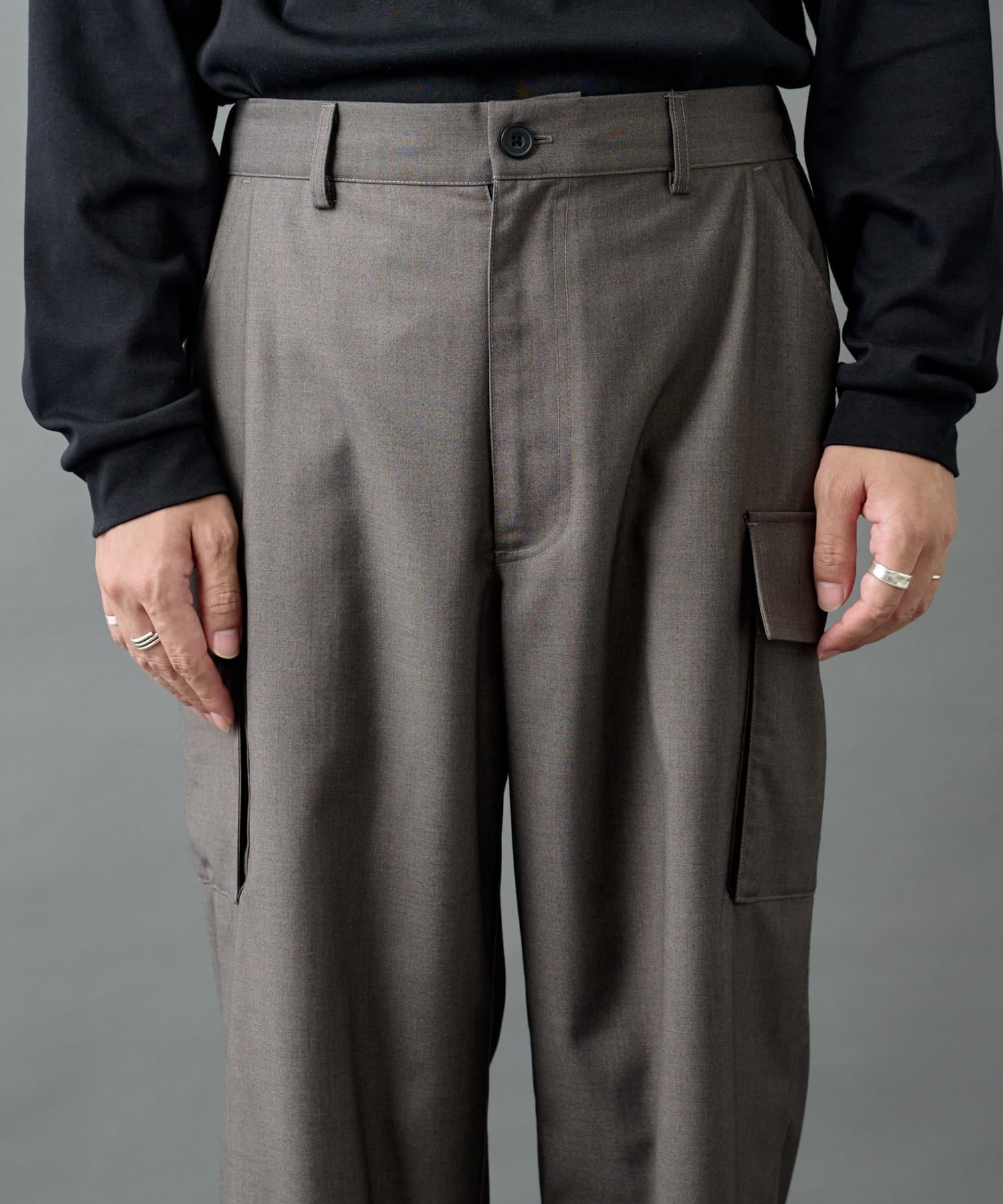ミリタリー由来のカーゴディテールを、スラックス仕様の美しいシルエットに落とし込んだシルエットがポイントです。