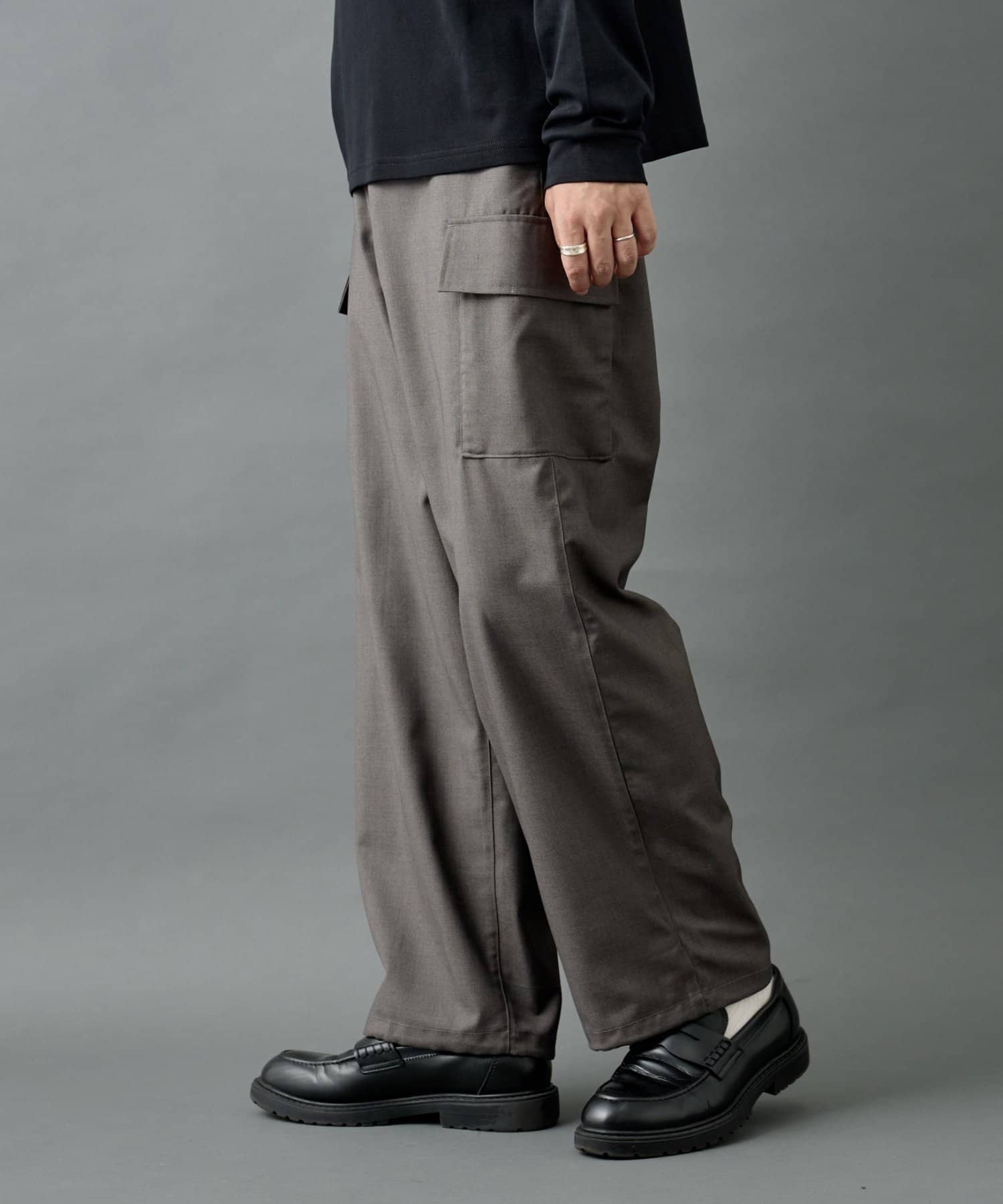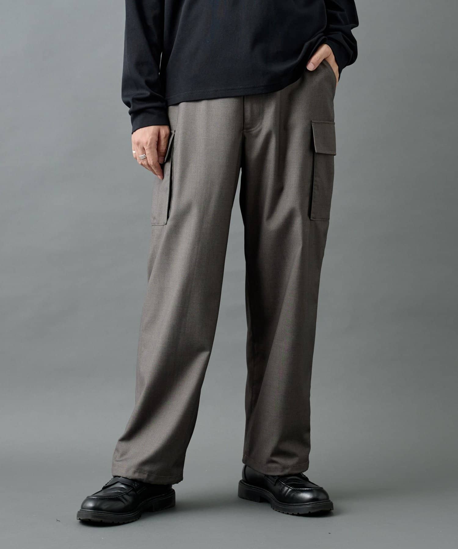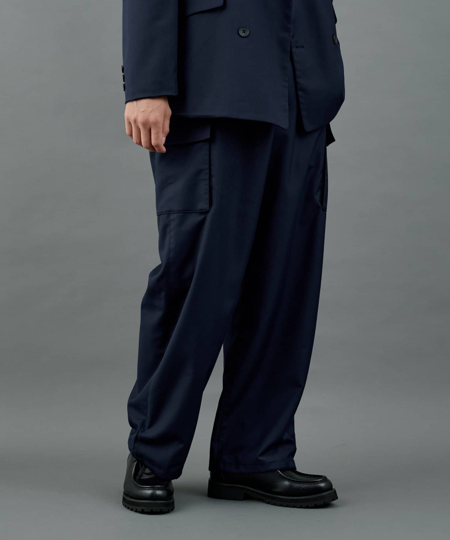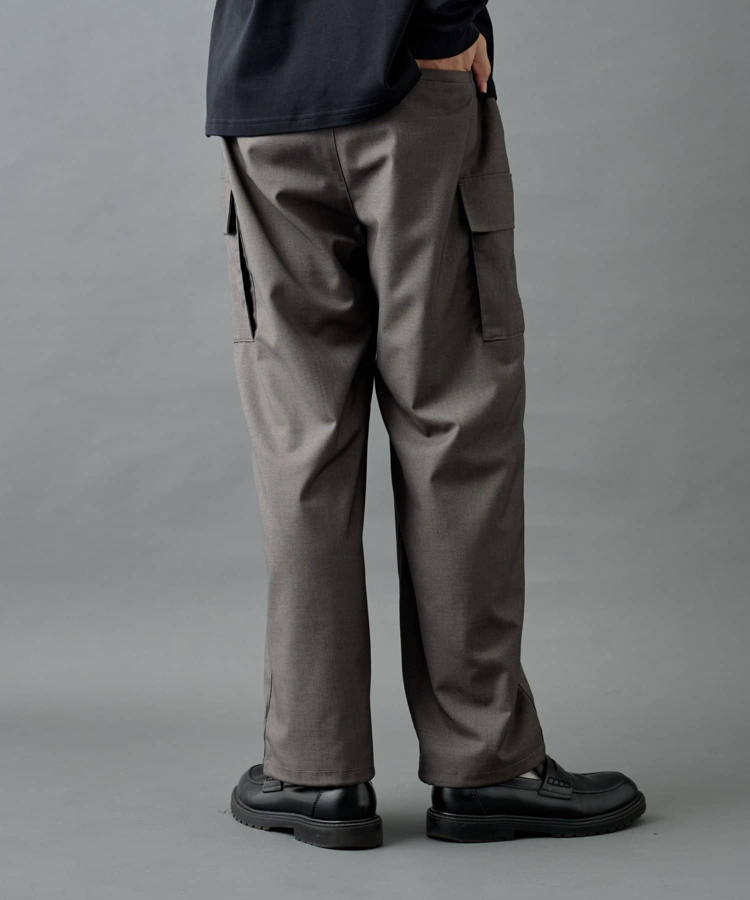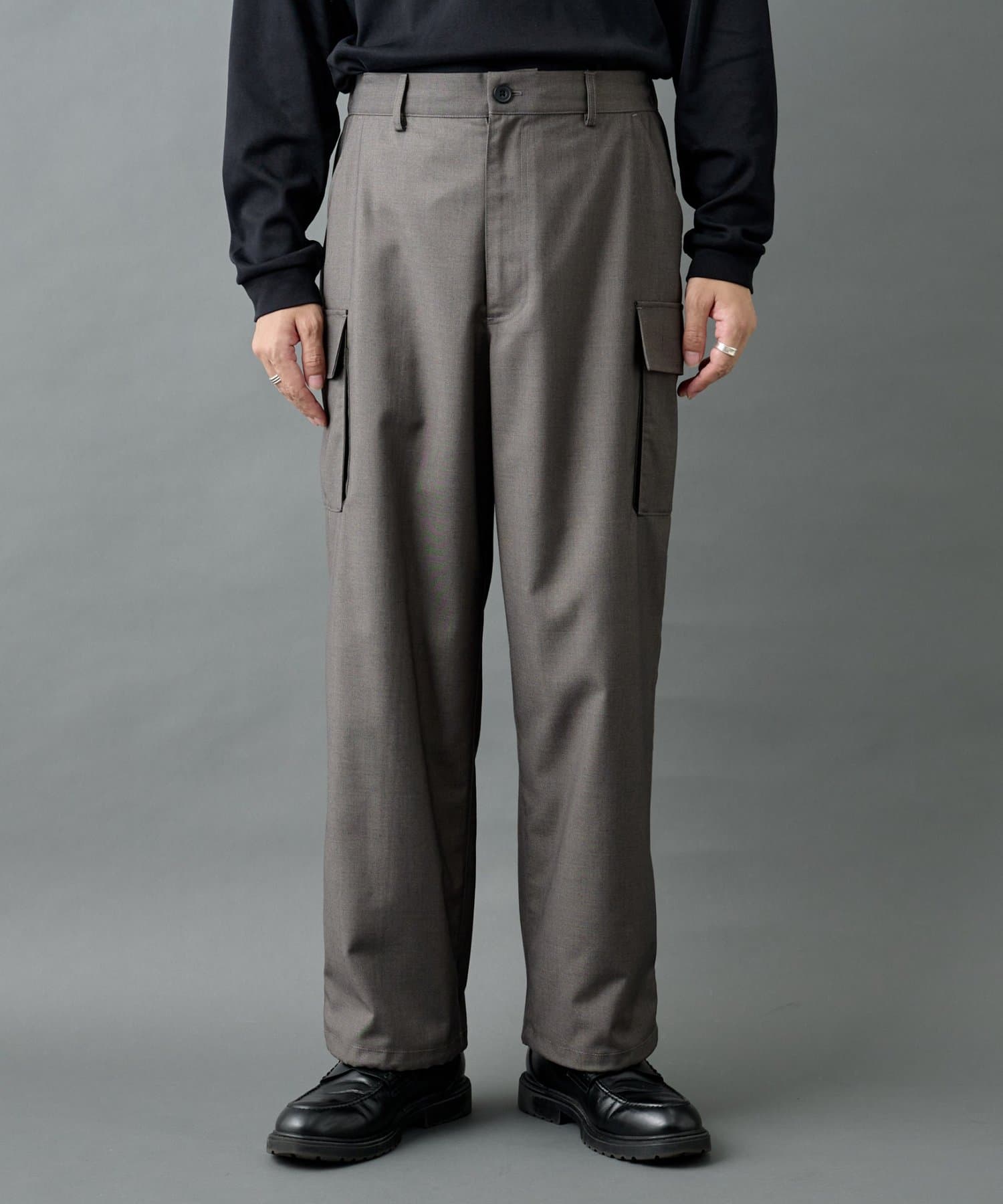 ミリタリー由来のカーゴディテールを、スラックス仕様の美しいシルエットに落とし込んだシルエットがポイントです。